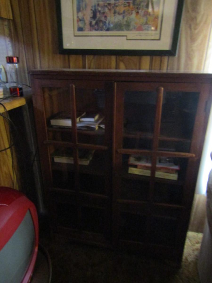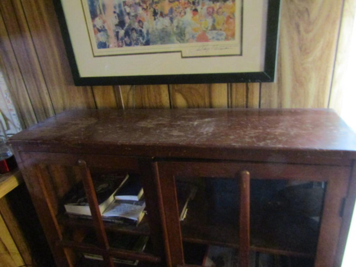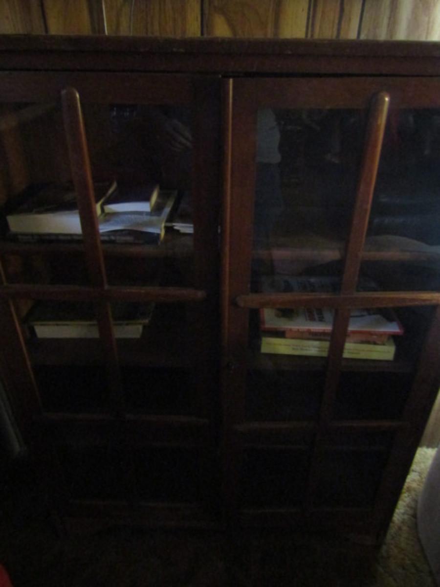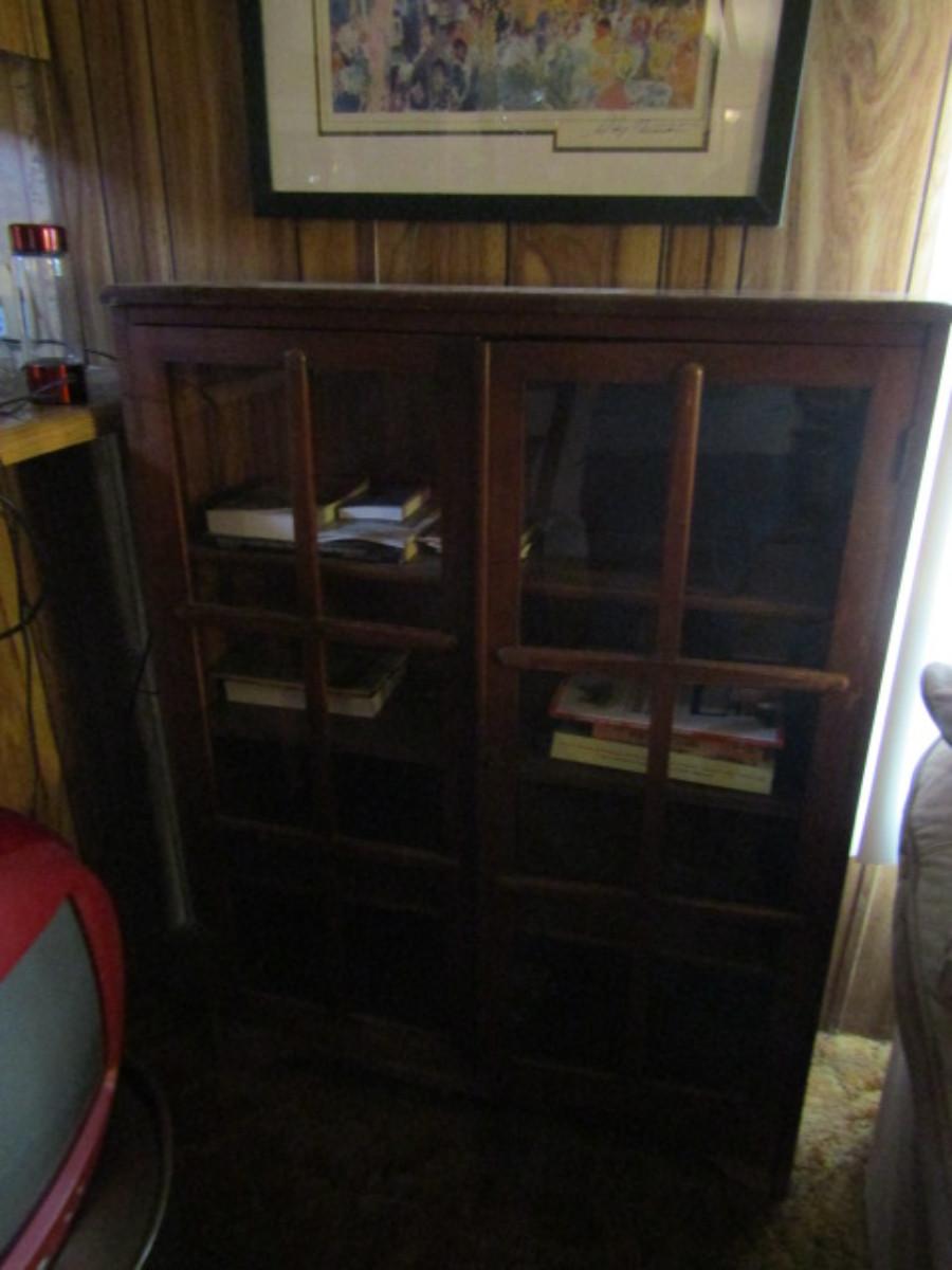 Two Door Glass Front Wooden Library Cabinet- Approx 36" Wide, 11" Deep, 47 1/2" Tall