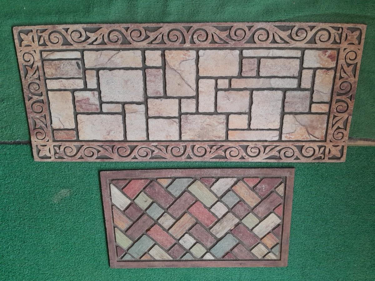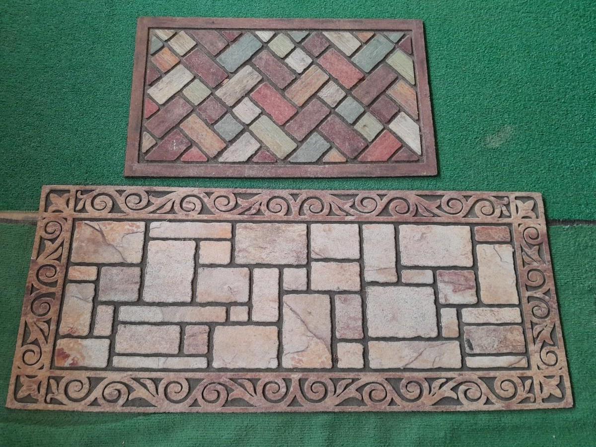 TWO DOOR MATS STONE 47" X 19.5" AND COLORED BRICK 30" X 18.5"