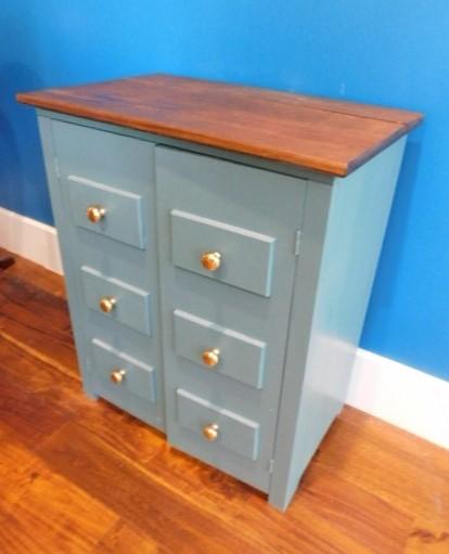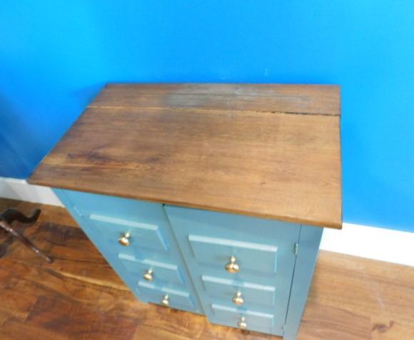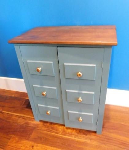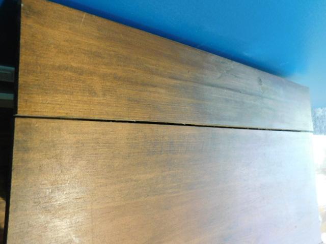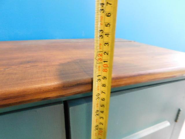 Two Door Solid Wood Storage Cabinet 26"x16"x31" has dry crack on surface wood. One door needs new clasp to remain closed.