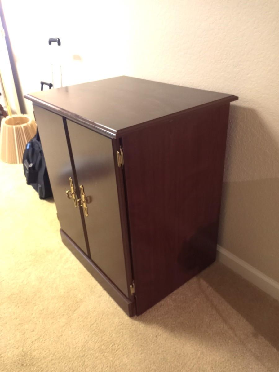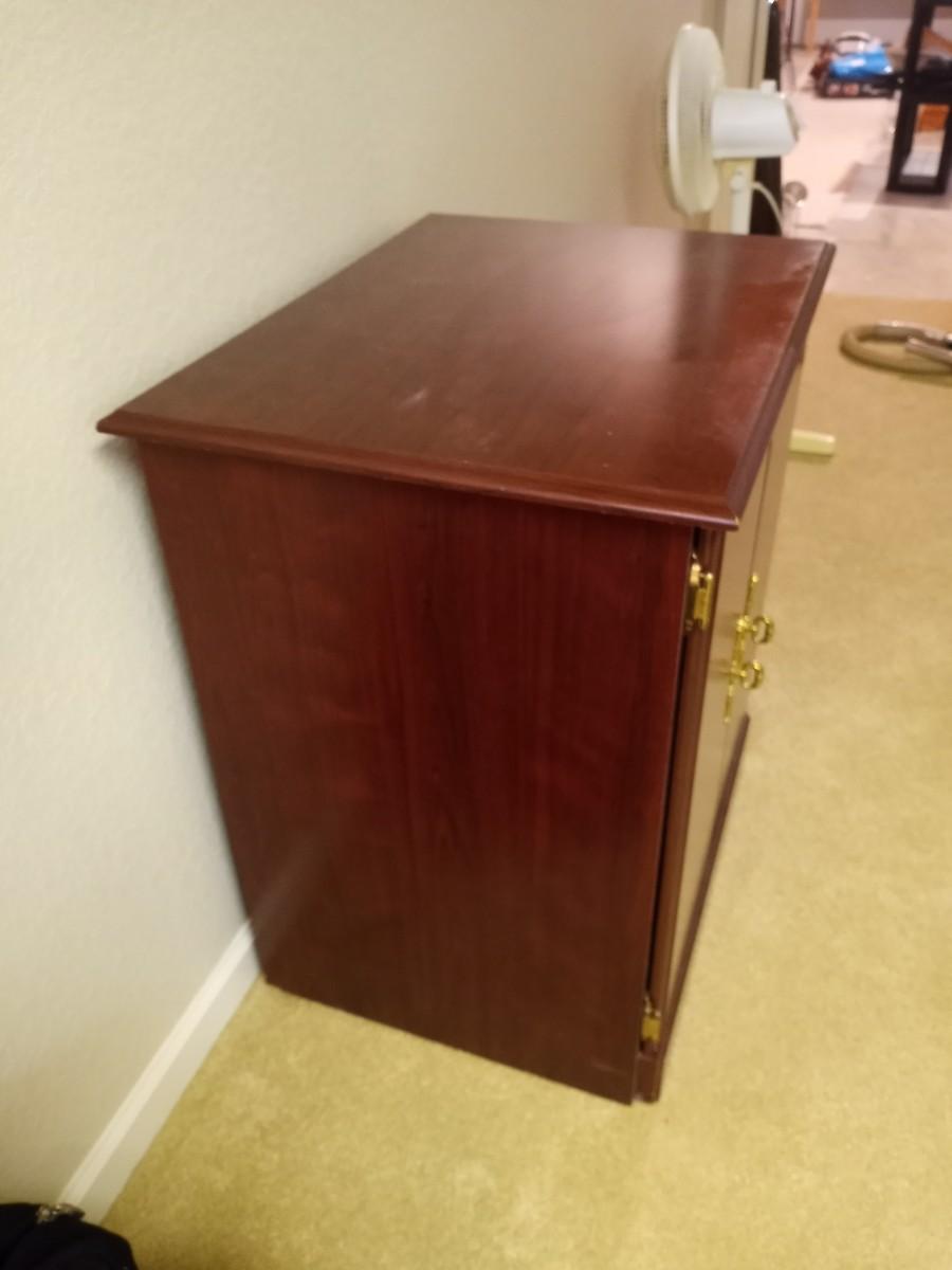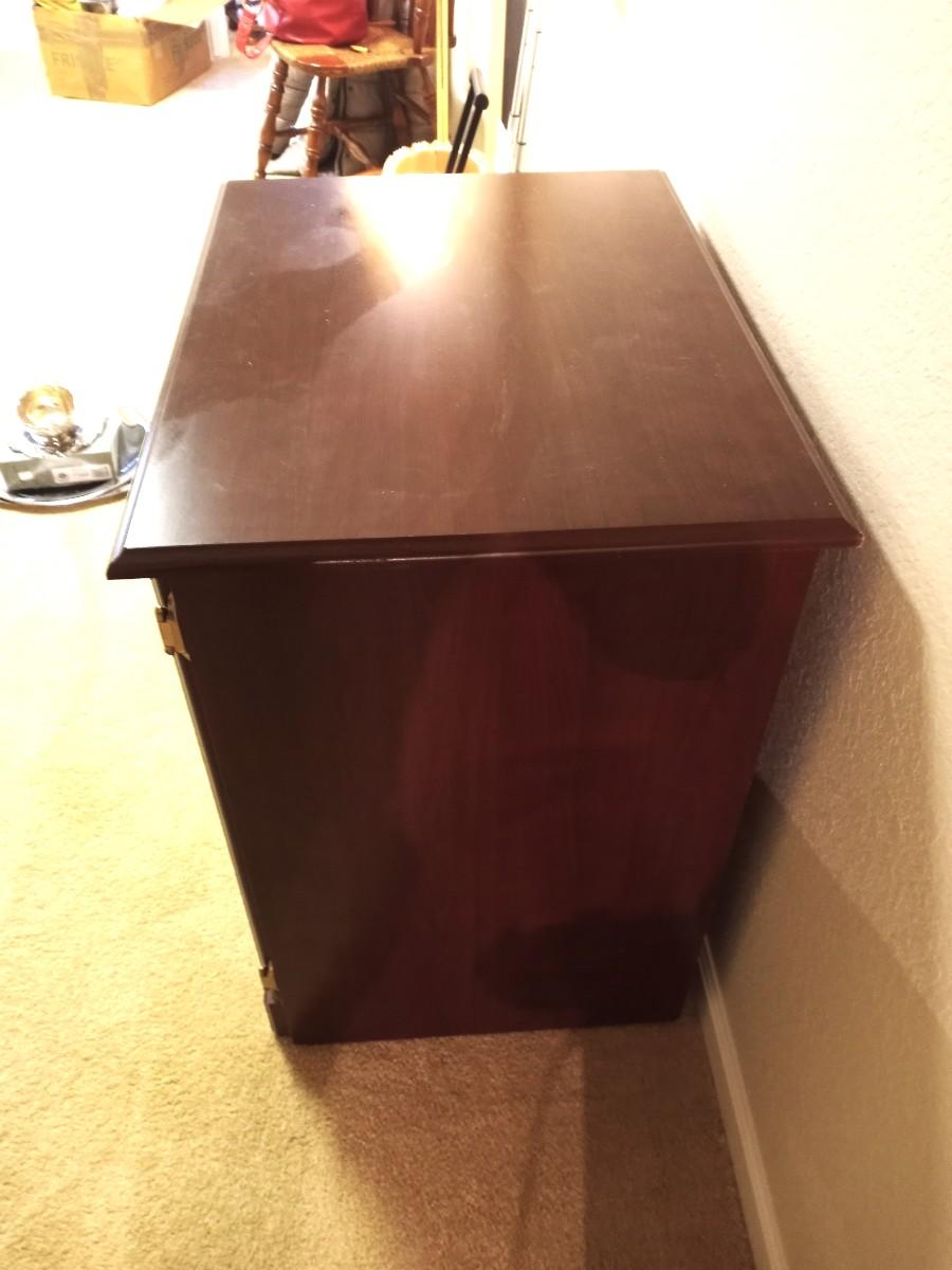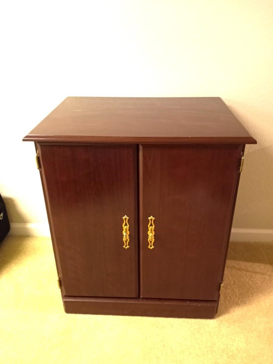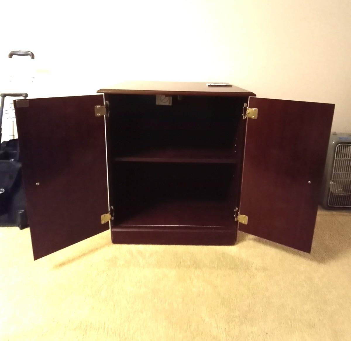 TWO DOOR WOODEN STORAGE CABINET 2 SHELVES APPROX. 26X18X29