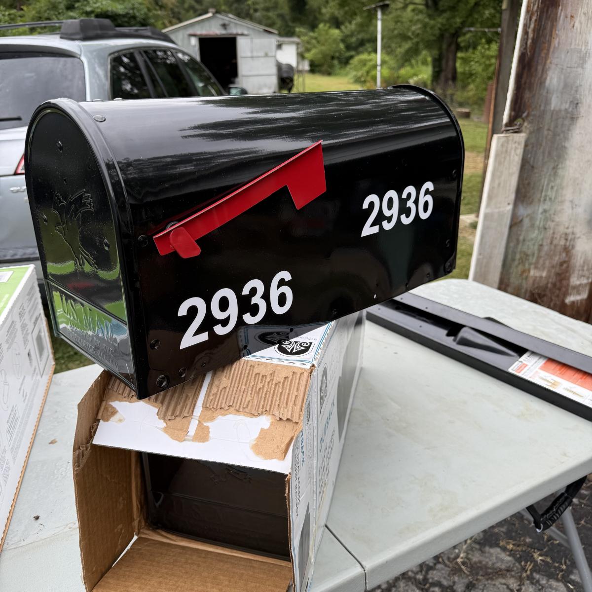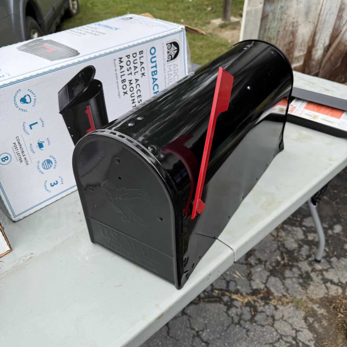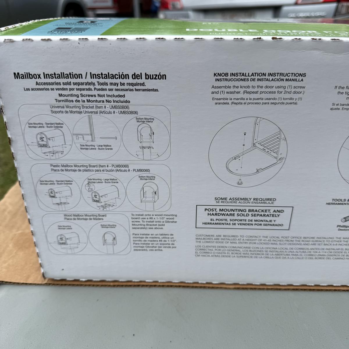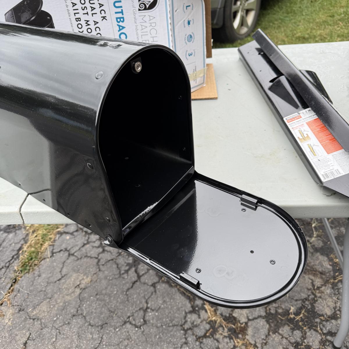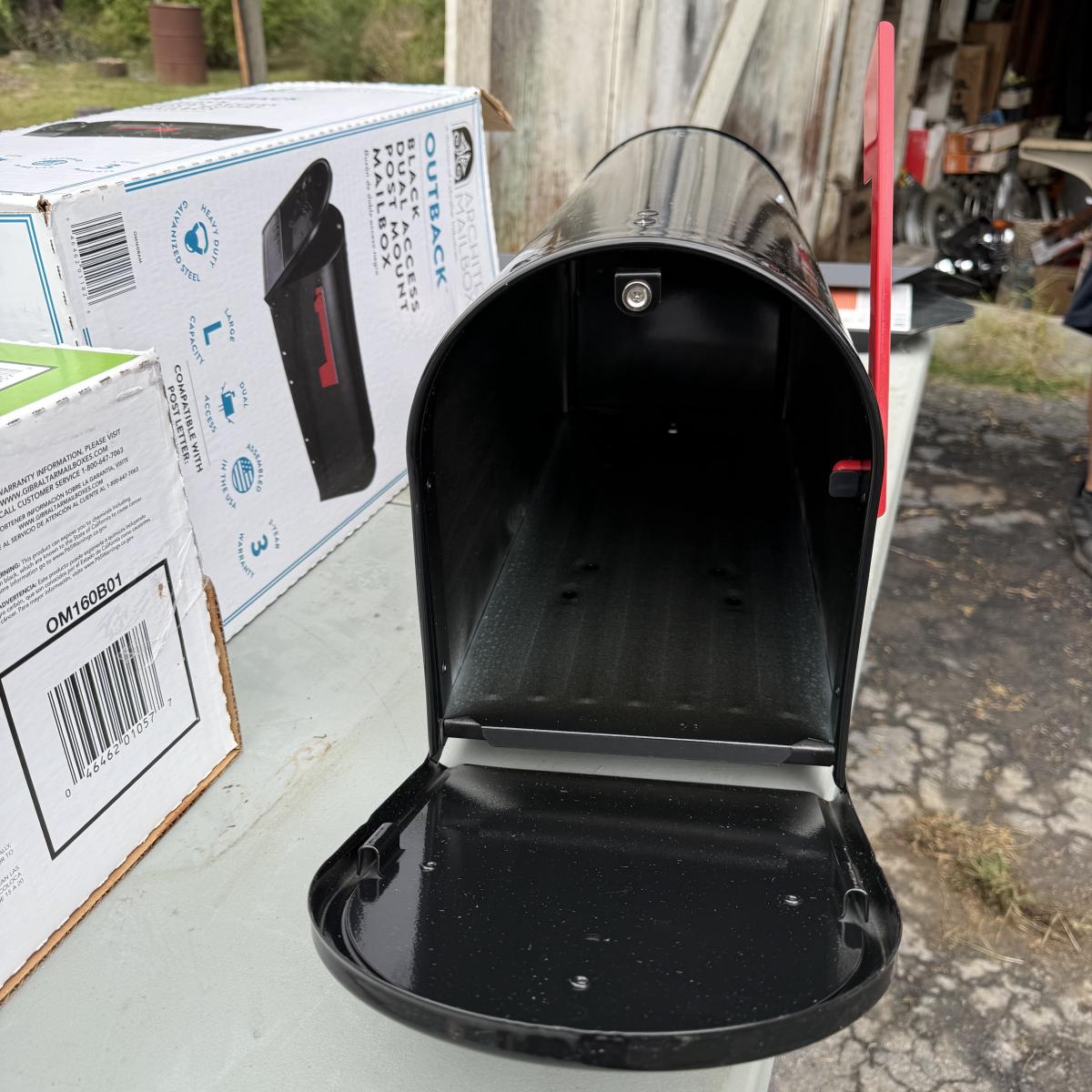 This lot contains two double door mailboxes as well as three E-Z Mender fence post mender. They both measure 8.5” x 23.5” x 10.5”H. The fence posts measures 4” x 28”. One of the mailbox's back door is a bit bent, see pictures for details. Local pick up only.