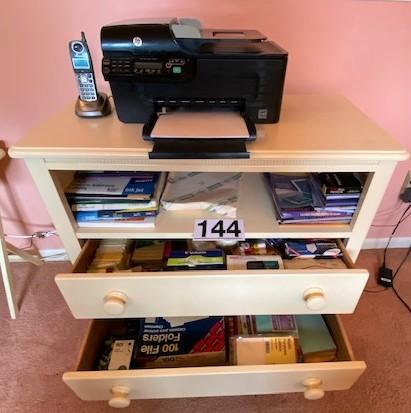 LOT#144: Two Drawer Media Cabinet with HP Printer