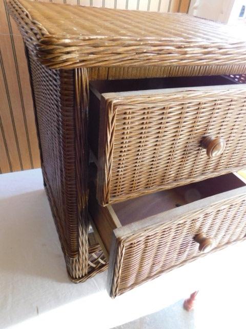 Two Drawer Rattan Wicker Weave Side Table 20"x17"x23" expect some wear marks