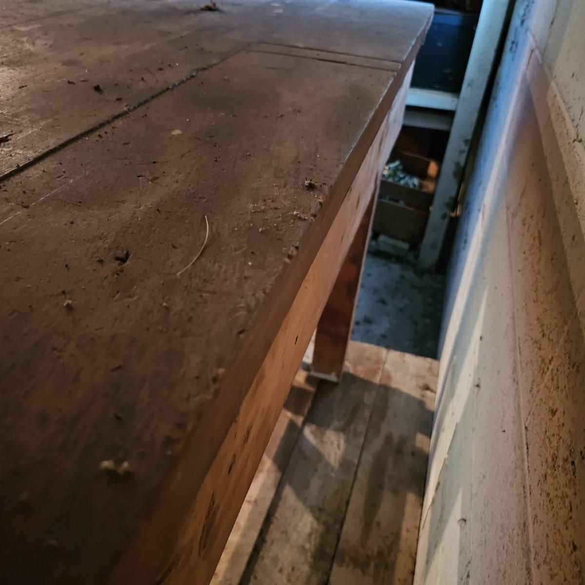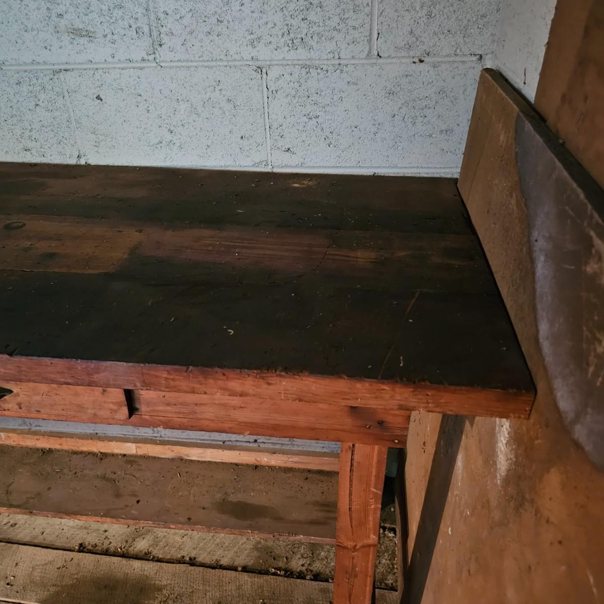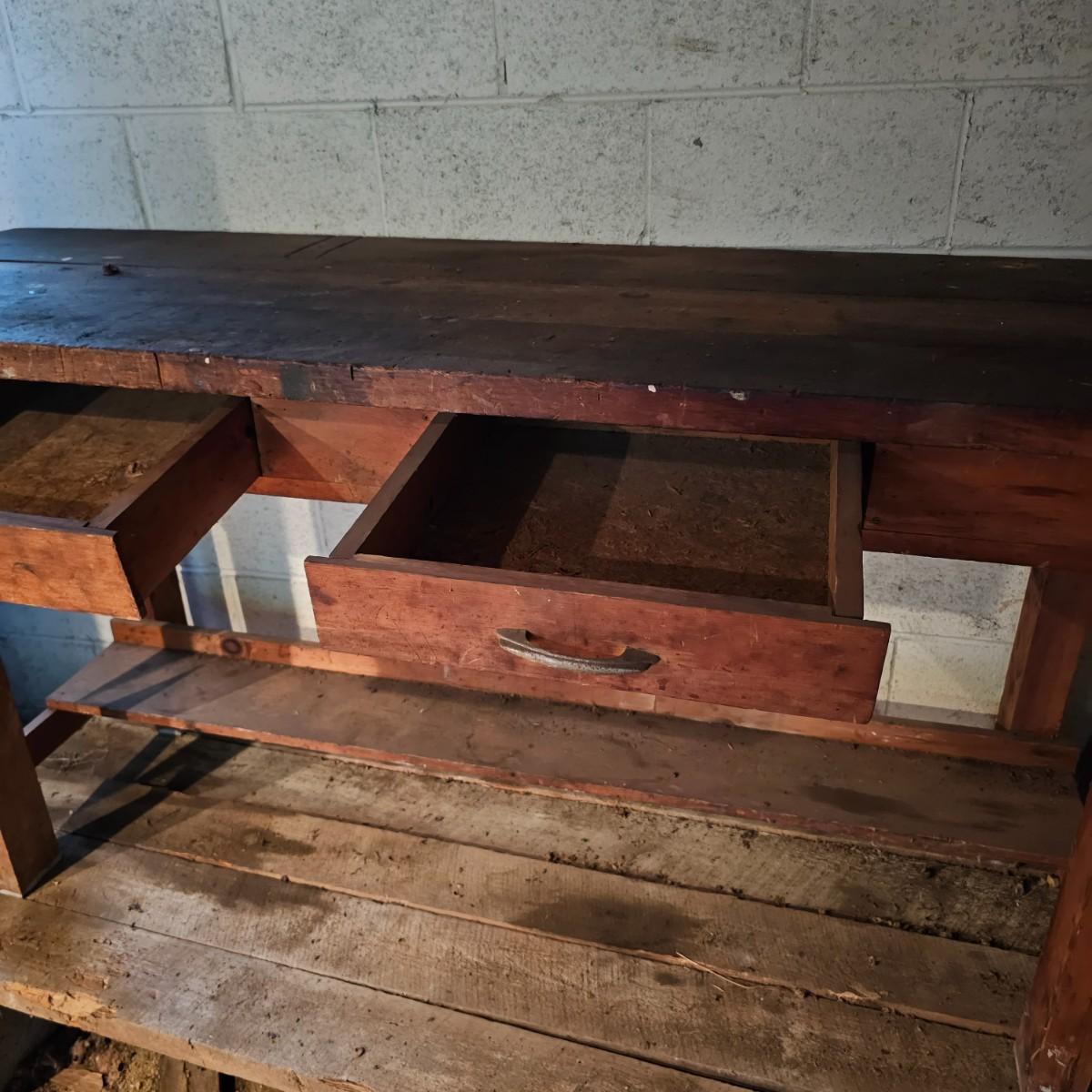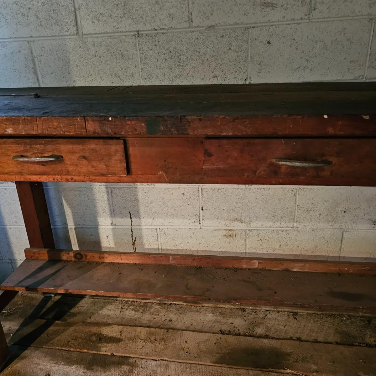 Solid wood workbench with two drawers for storage. 1.5" thick top, 2.5" legs. Bench has seen several projects, some cuts and nicks in top. Overall measurement is 72" x 25" x 36"H. See photos for details. Local pickup only. Winning bidder must bring assistance to help move and load this item due to its weight and/or size.