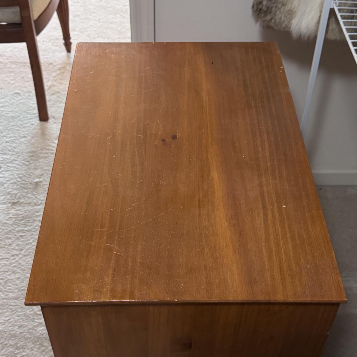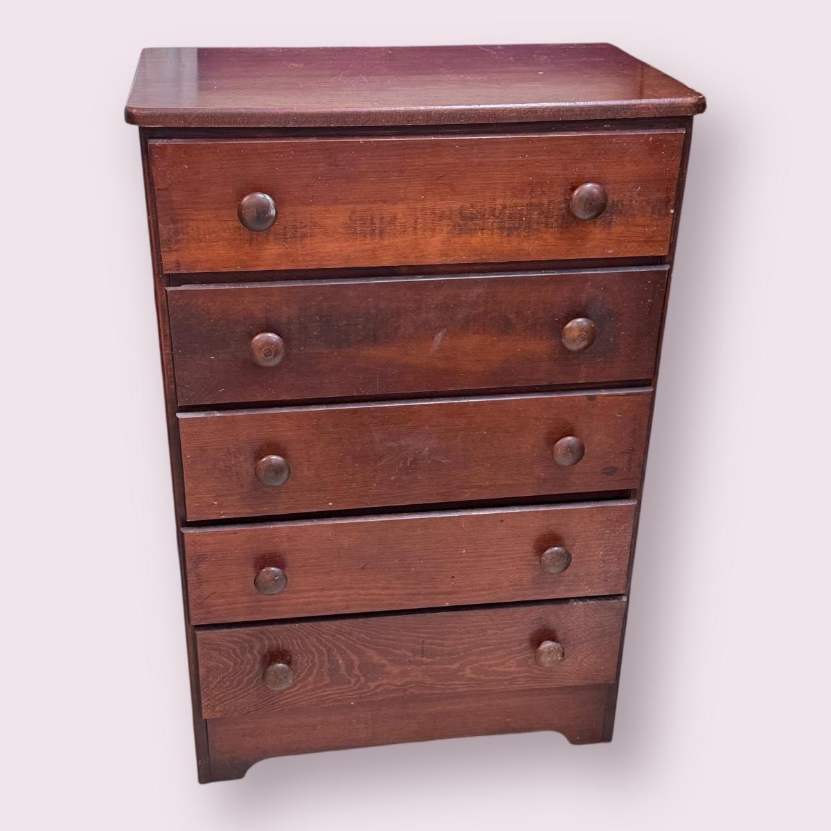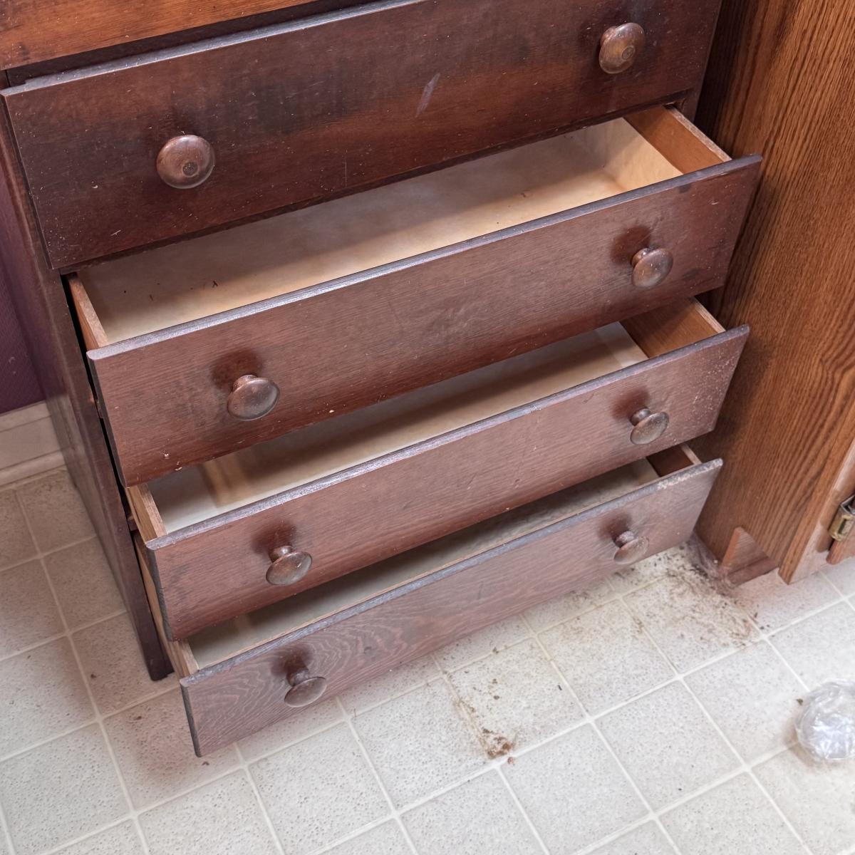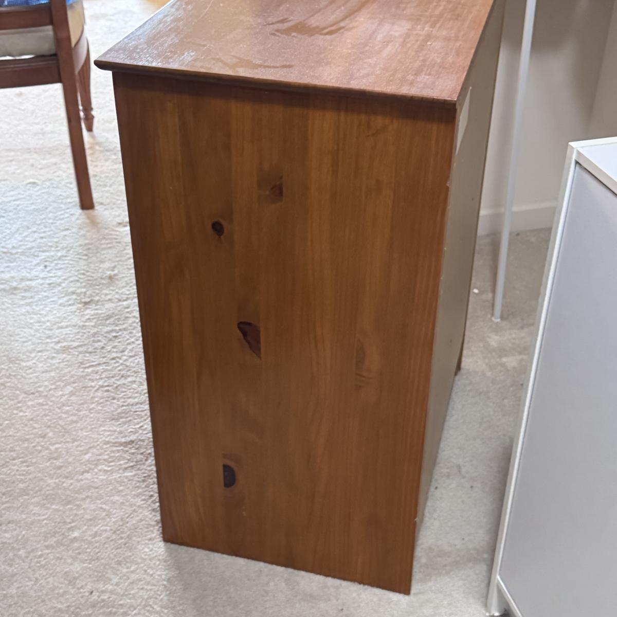 This lot includes two cute wooden dressers with round knobs. The light-colored wooden dressers has five drawers and measures 26” x 17” x 23”H. The darker dresser has six drawers and measures 23” x 14” x 35”H. Local pickup only.