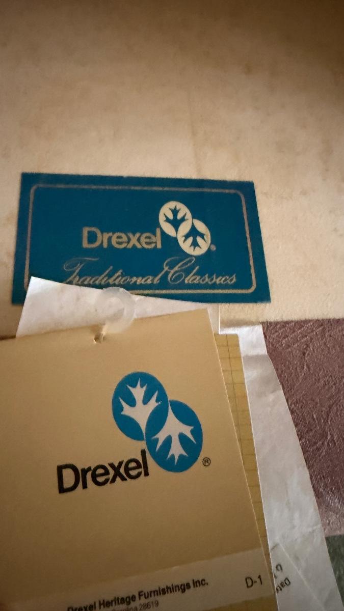 Two Drexel Queen Anne Style Upholstered Wingback Chairs (LR-MG)