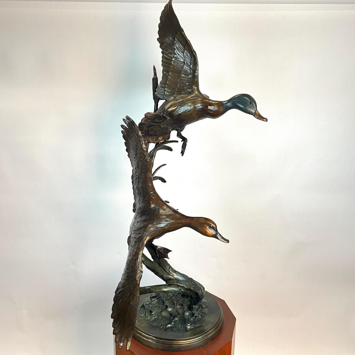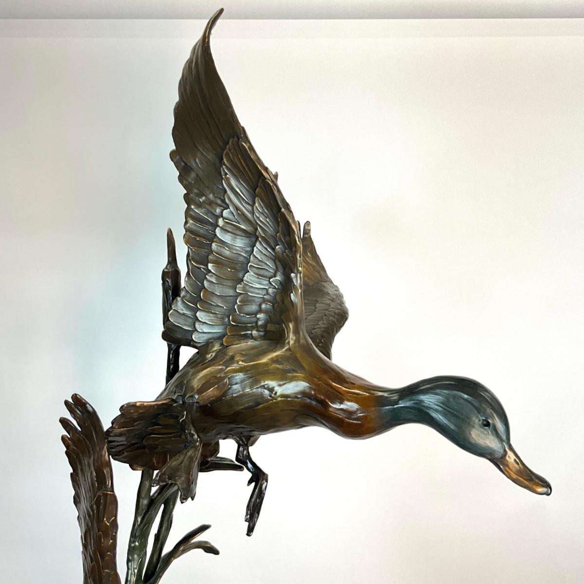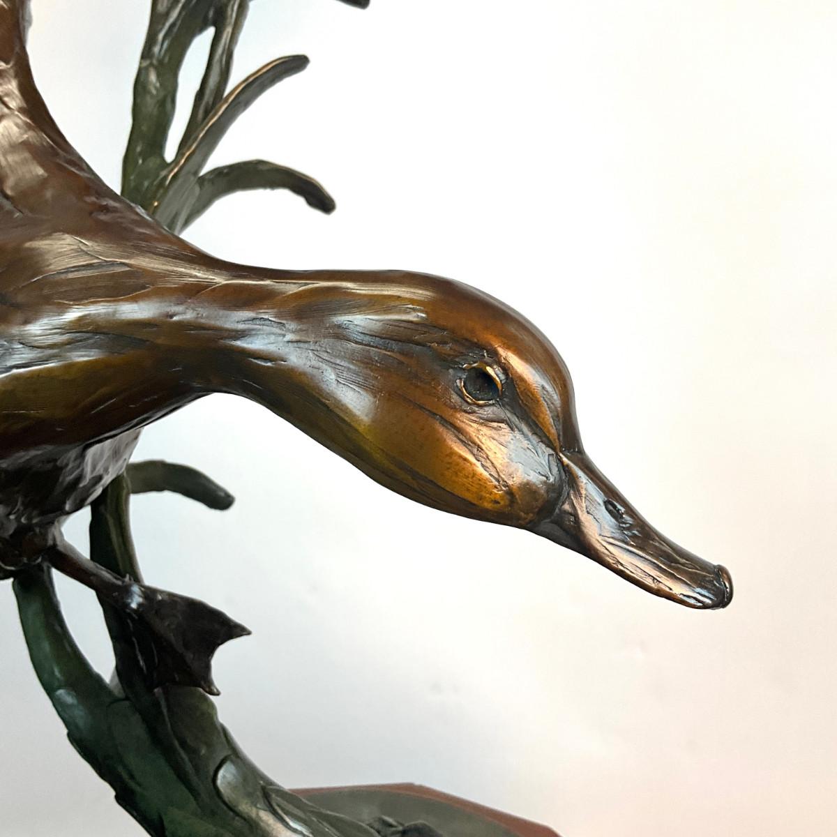 410 Geoffrey Smith Life Size Bronze Mallard Duck Sculpture "Against the Wind"