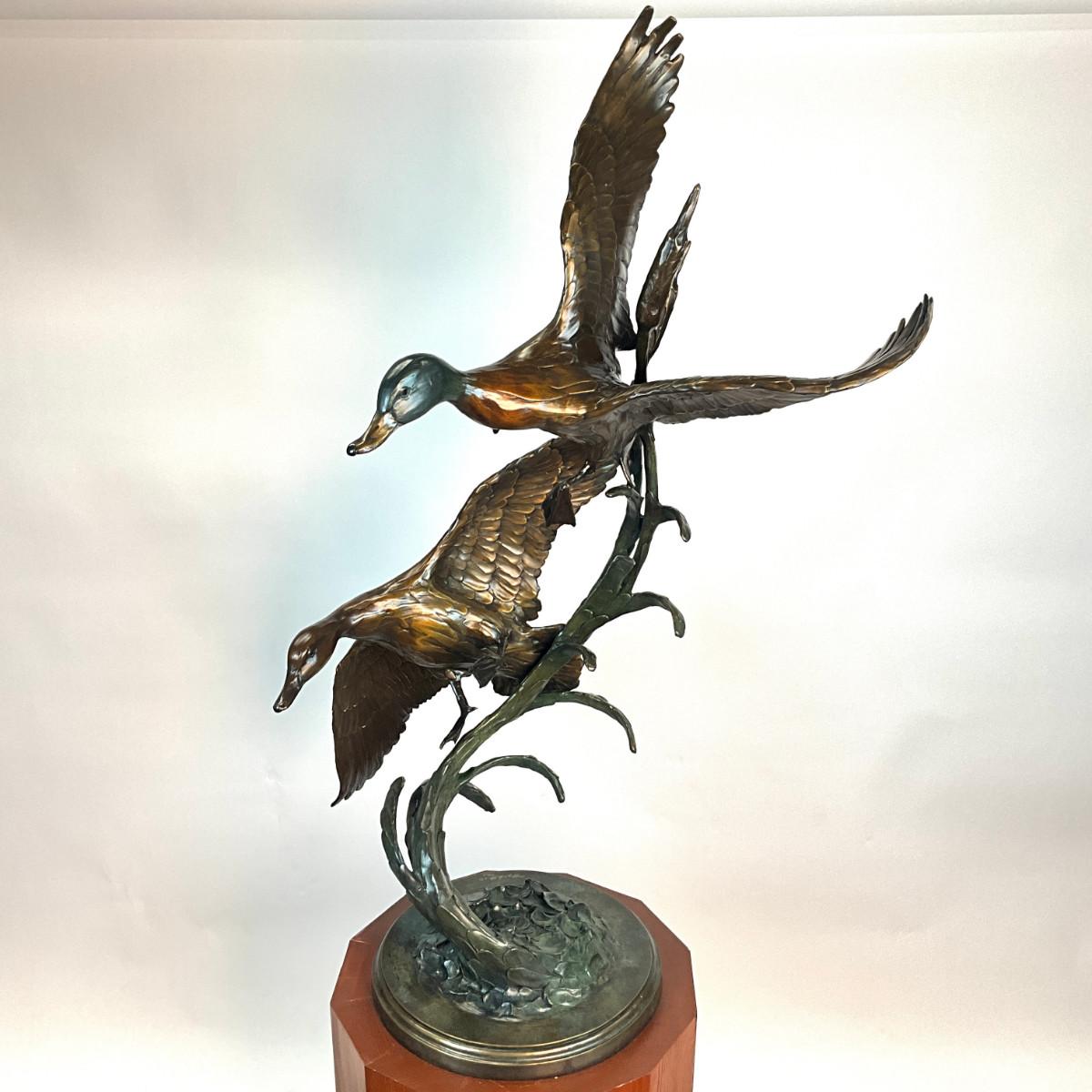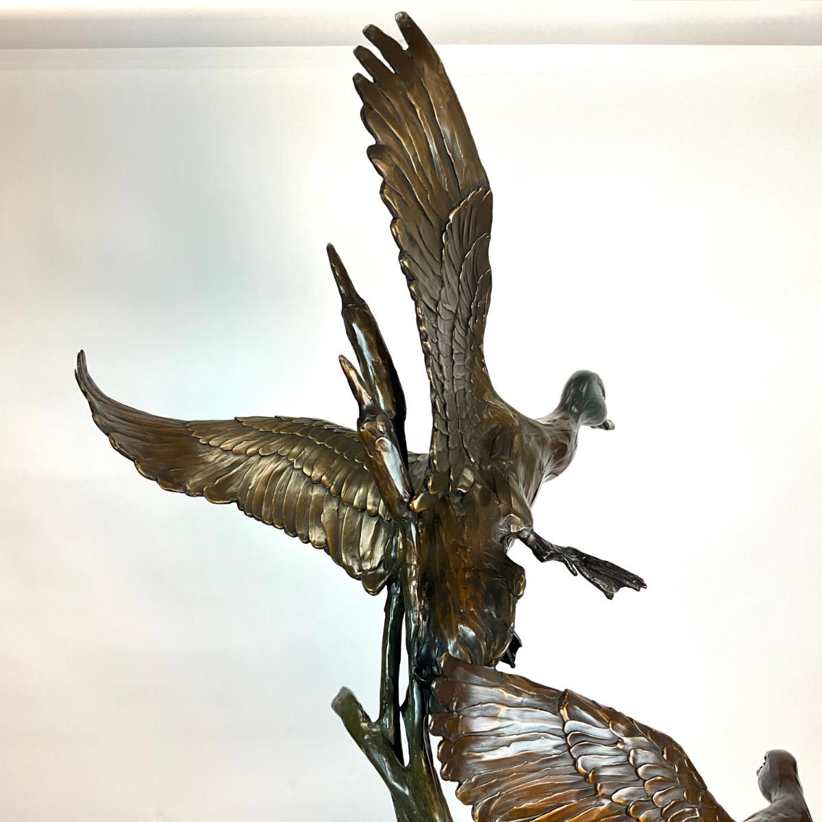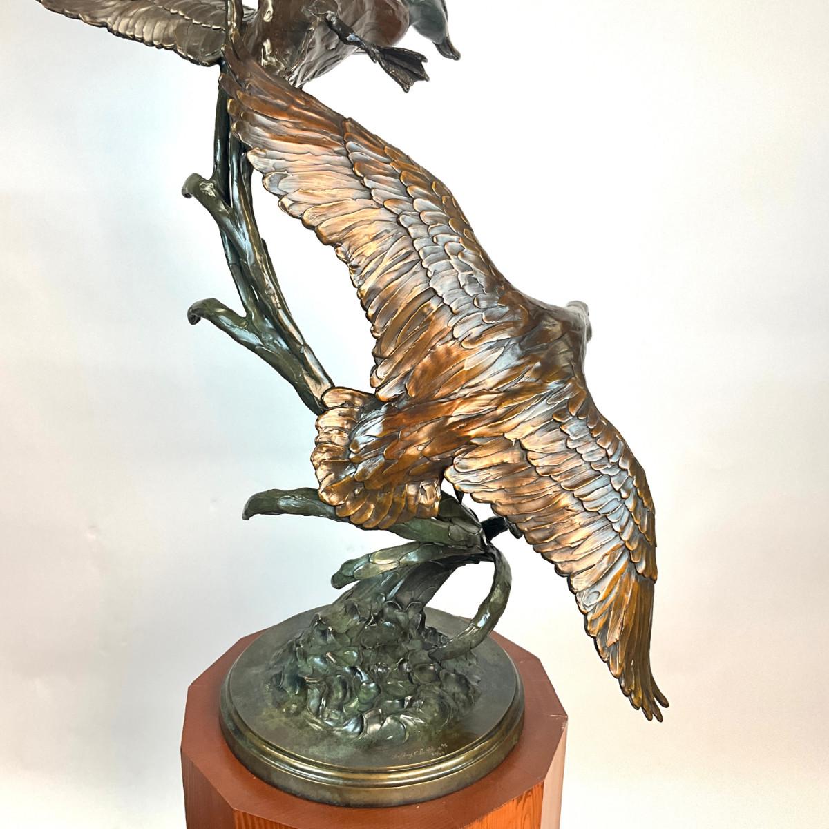 410 Geoffrey Smith Life Size Bronze Mallard Duck Sculpture "Against the Wind"