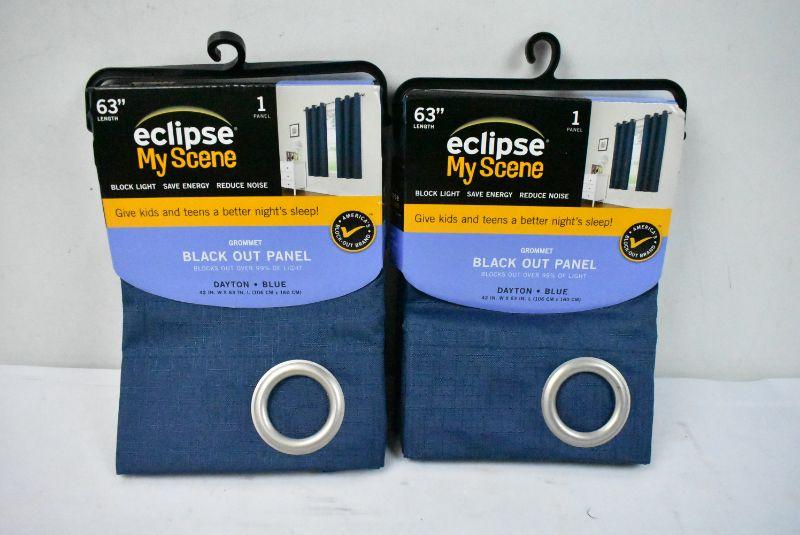 Two Eclipse My Scene Grommet Blackout Panel, Dayton Blue, 42" x 63" Each - New