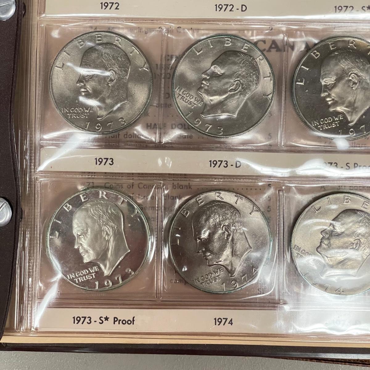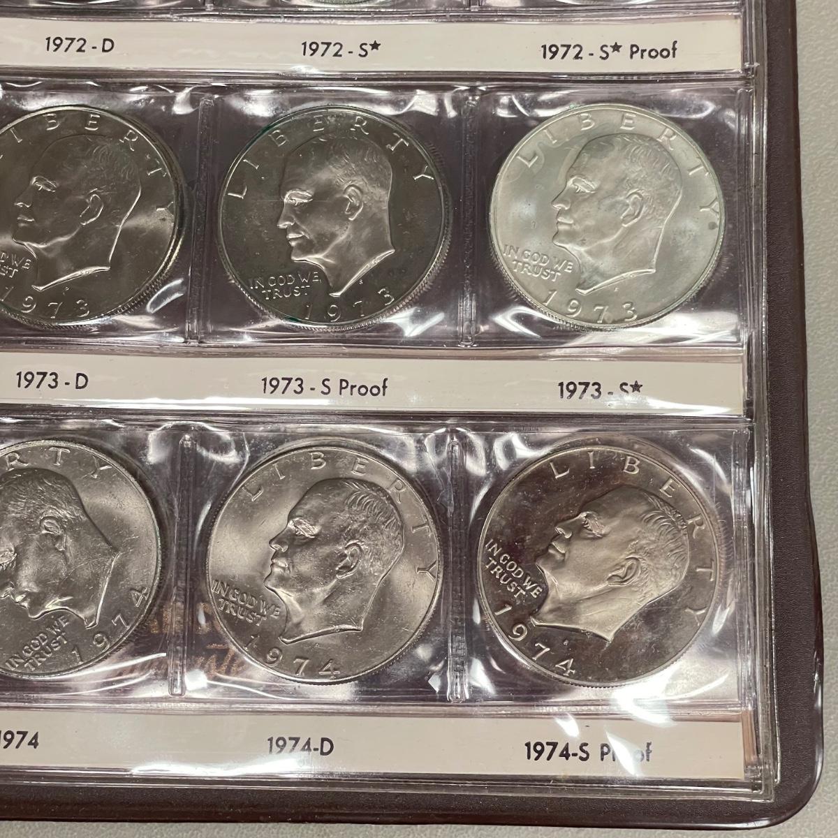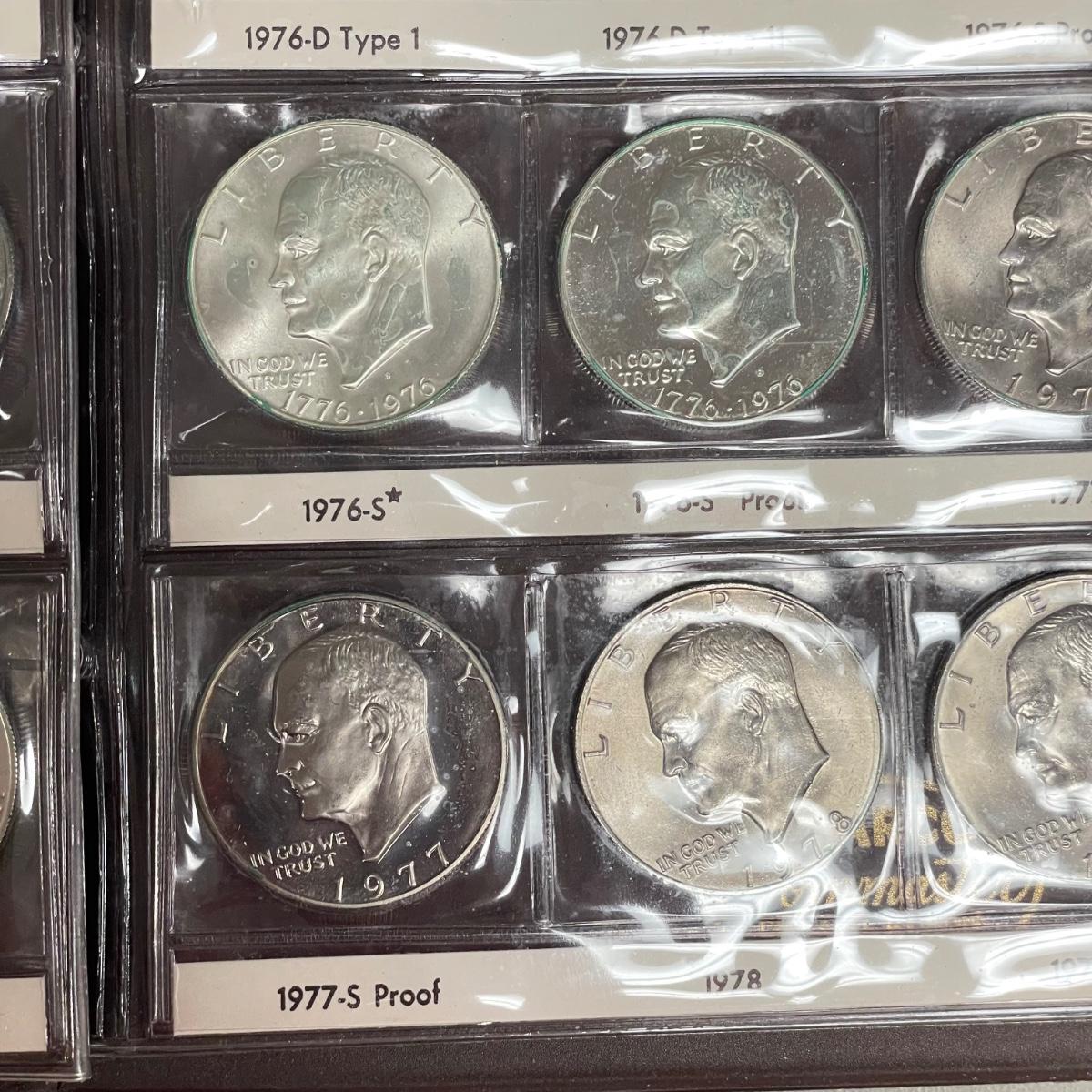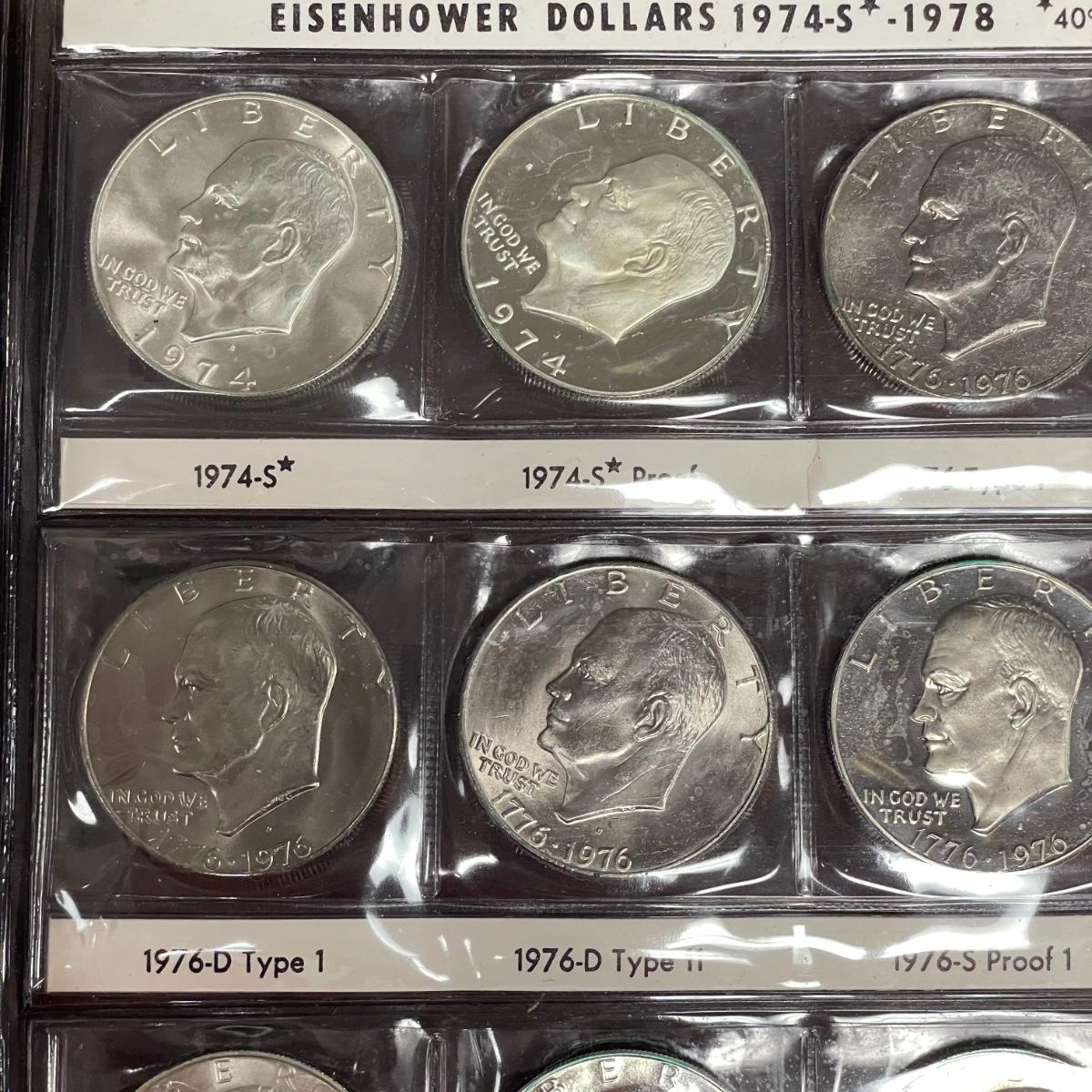 A total of 58 Eisenhower Dollars in two matching book sets for the 1970s. Coins appear to match the label on the corresponding sleeve. Starting bid is at face value. All sales are final. No returns or refunds. Please bid accordingly. Shipping available.