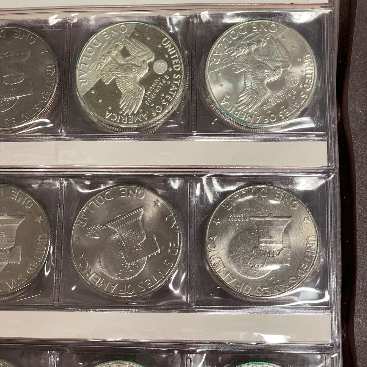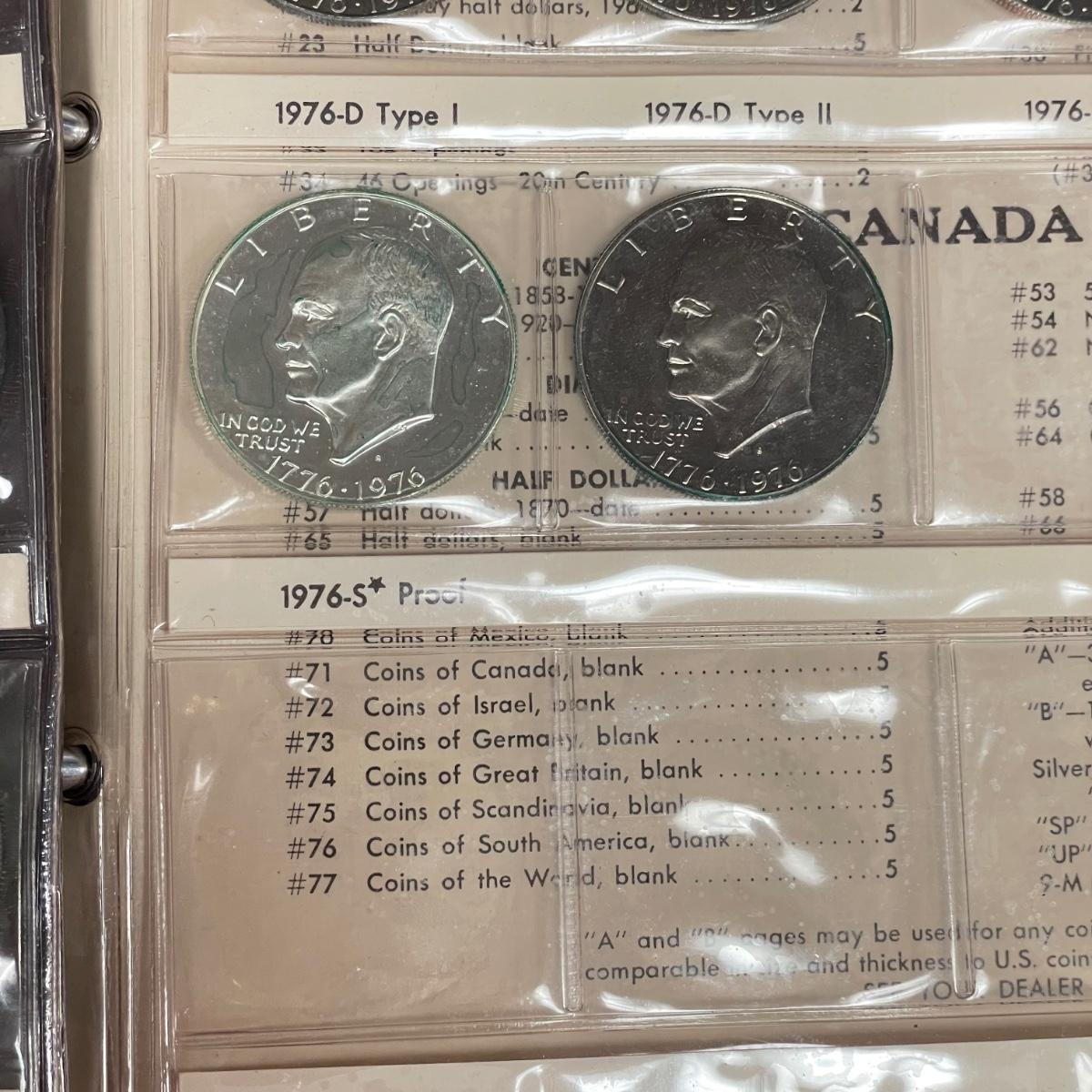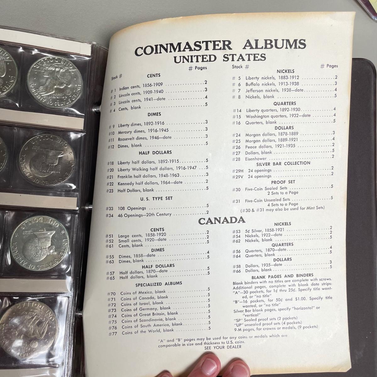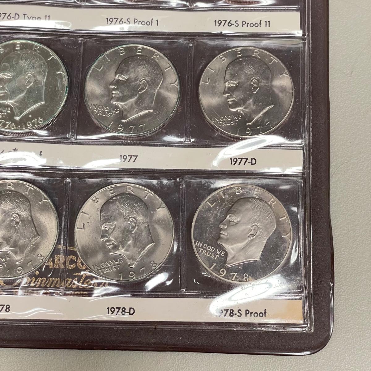 A total of 58 Eisenhower Dollars in two matching book sets for the 1970s. Coins appear to match the label on the corresponding sleeve. Starting bid is at face value. All sales are final. No returns or refunds. Please bid accordingly. Shipping available.