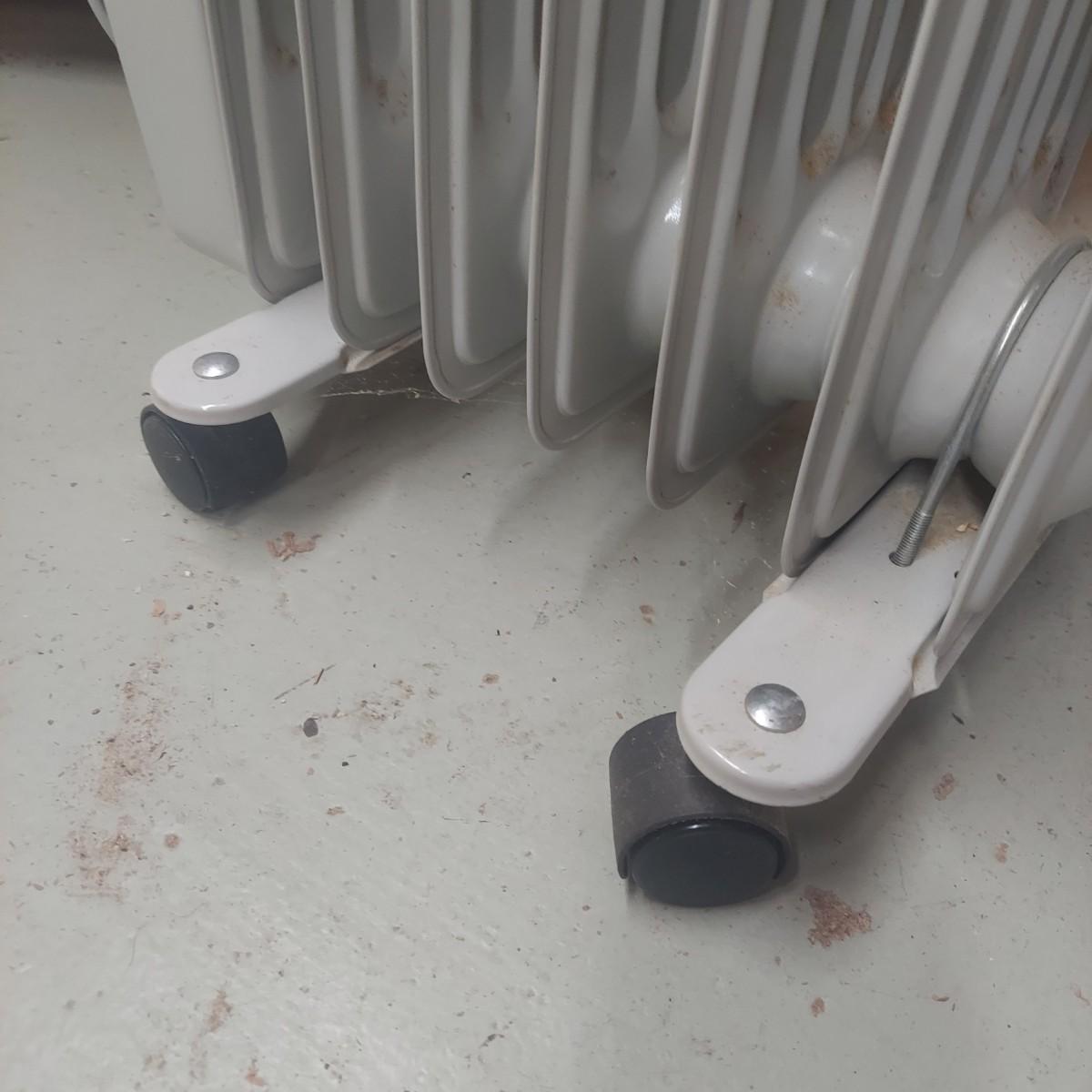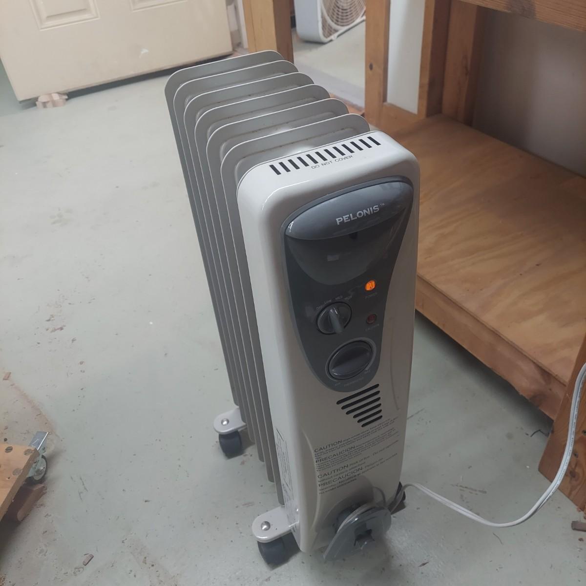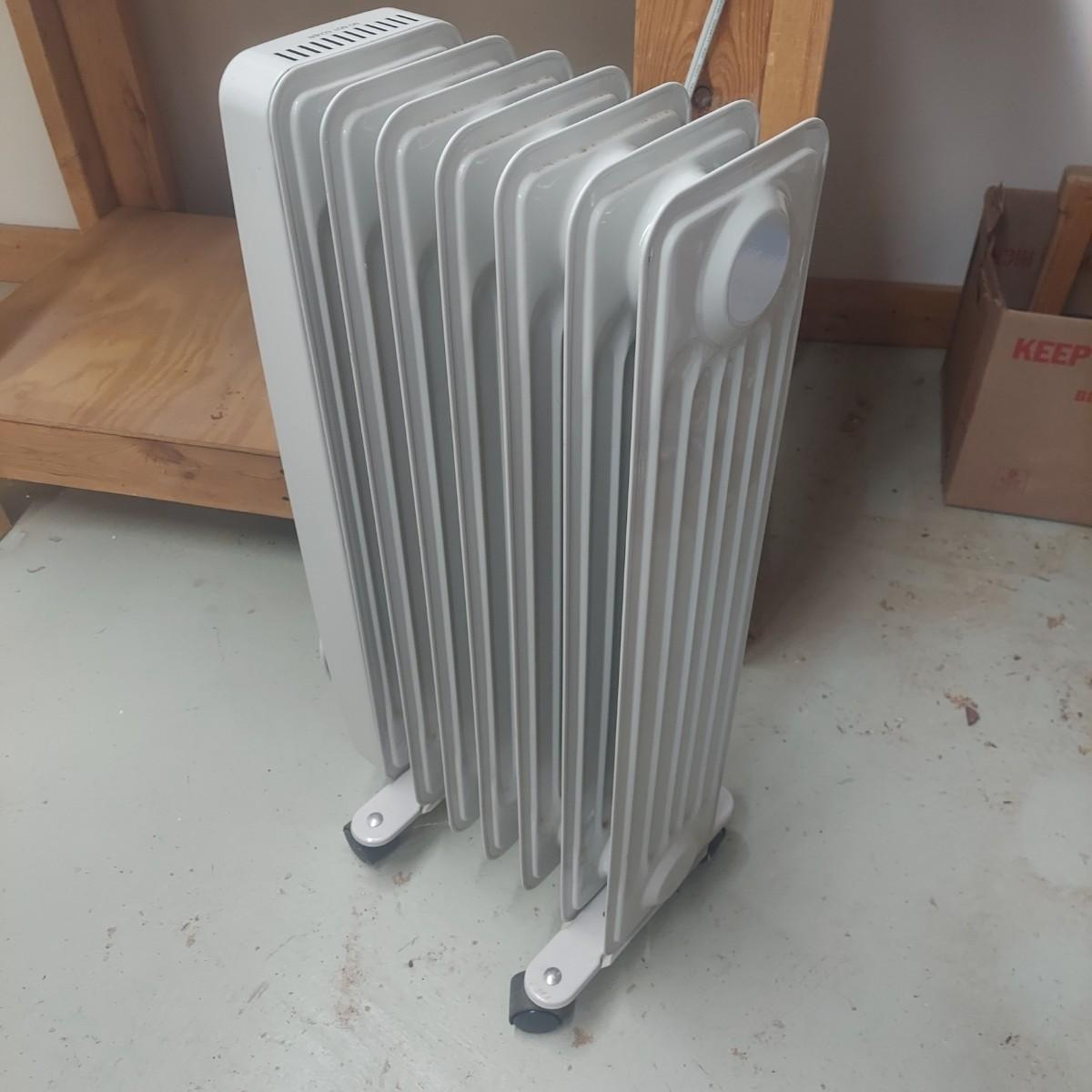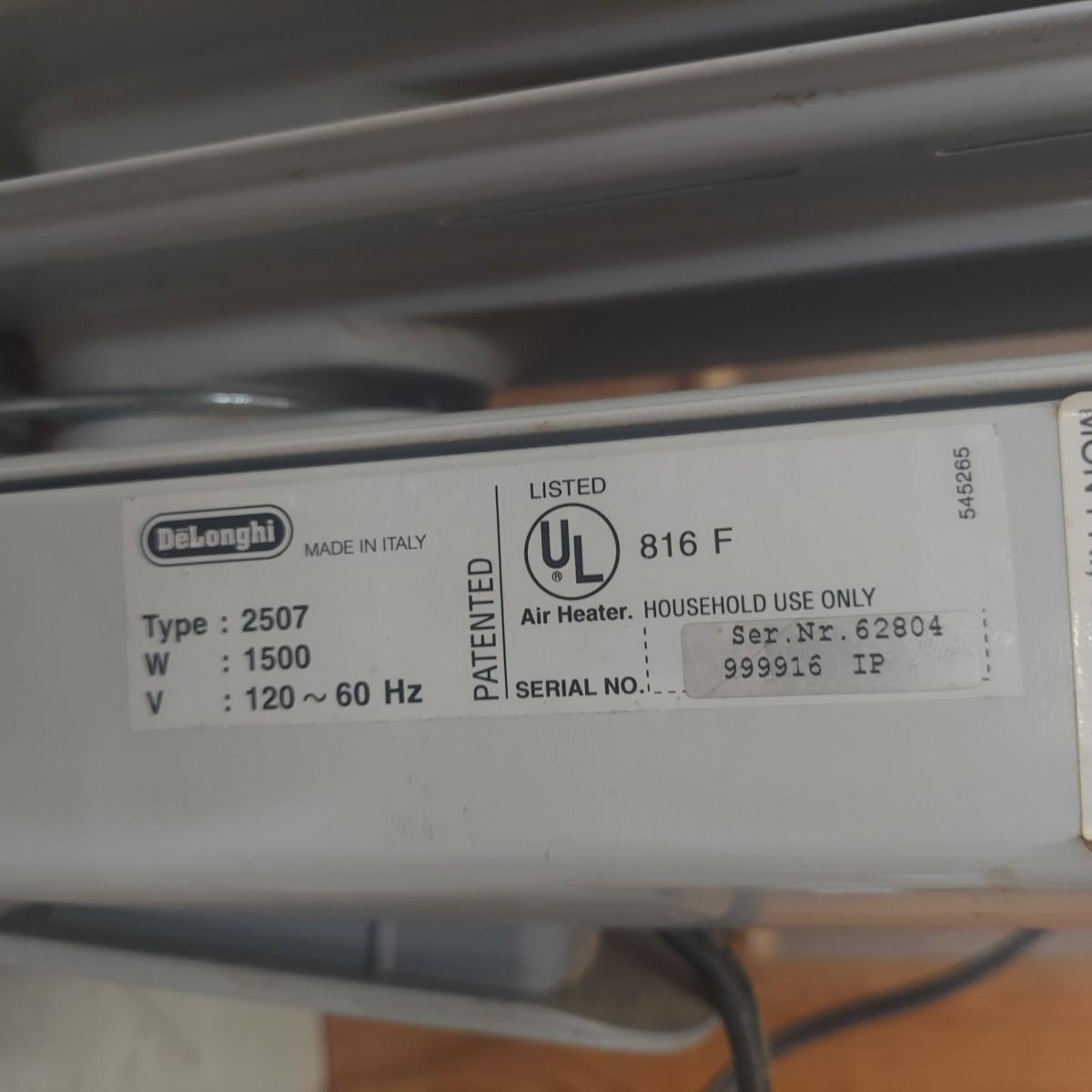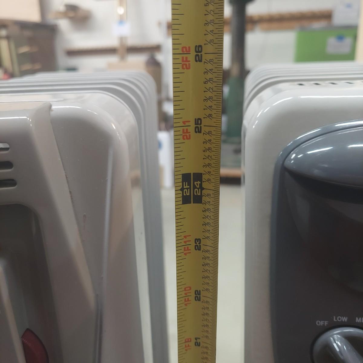 Lot includes two rolling radiator heaters. The Pelonis is oil filled. The DeLonghi is an air type. They are approximately the same size measuring 6" x 14” x 26"H. Please see photos for details. Local Pickup Only