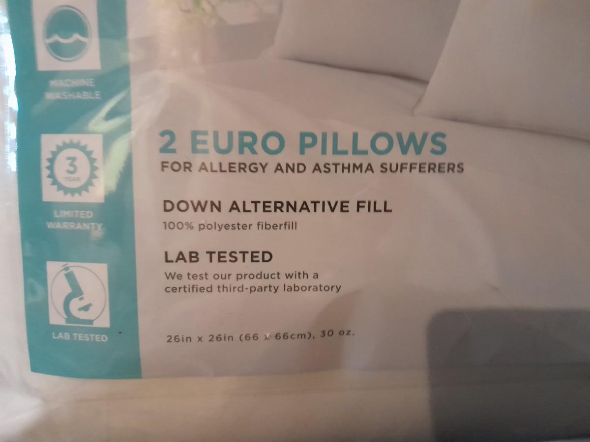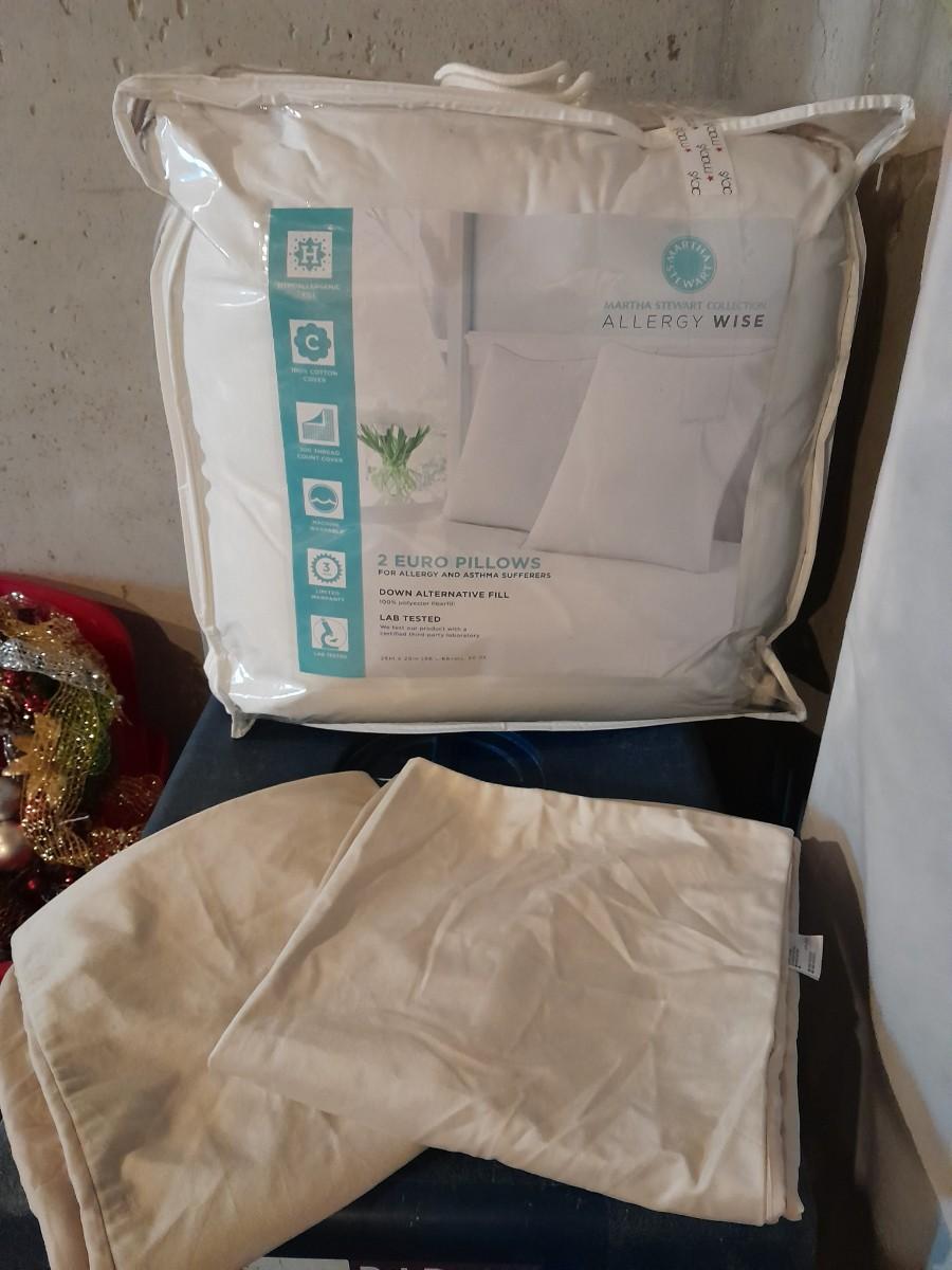 TWO EURO PILLOWS WITH CASES MARTHA STEWART COLLECTION FOR ALLERGY AND ASTHMA SUFFERERS