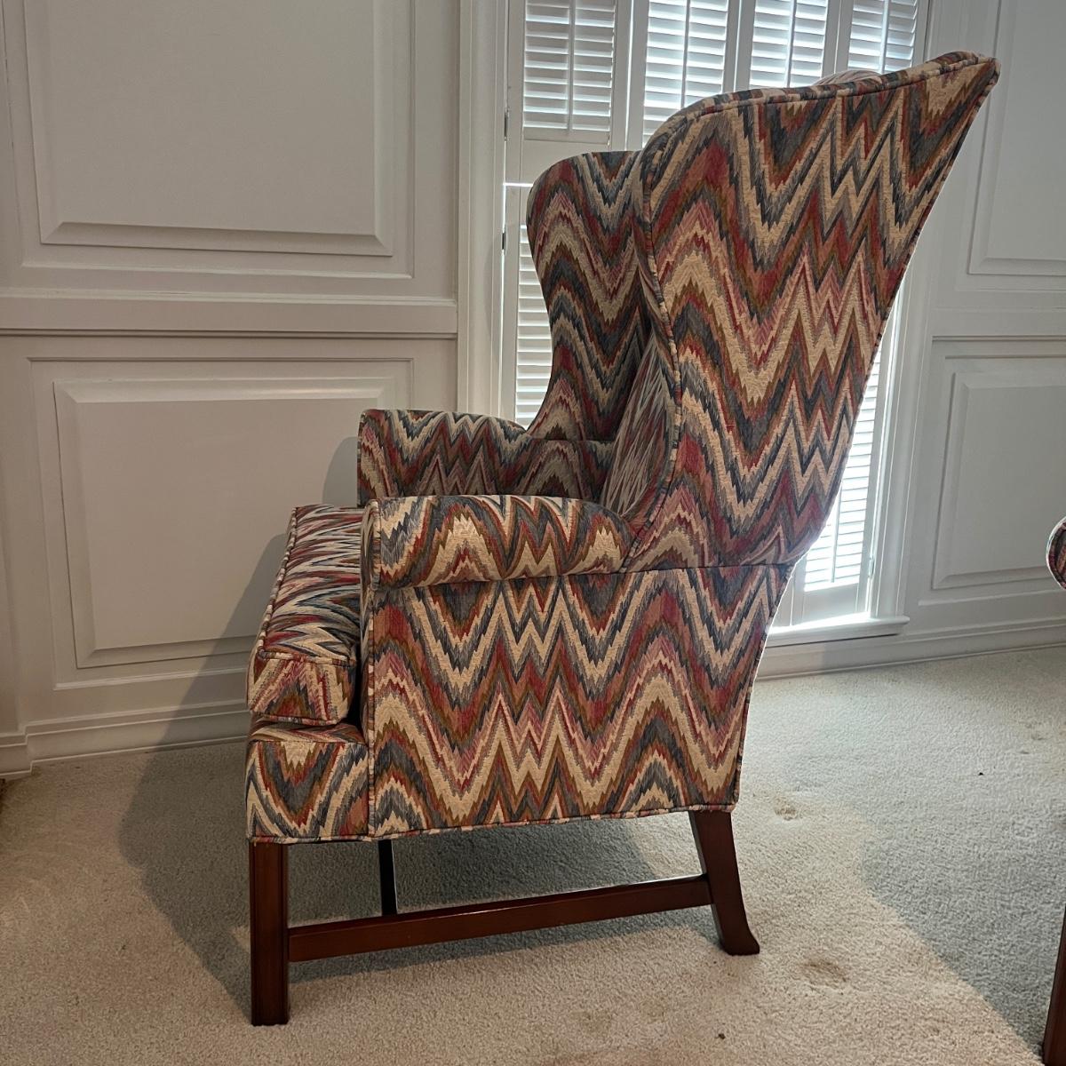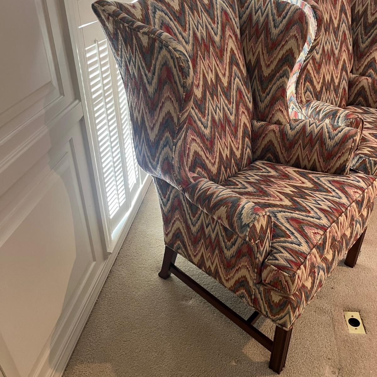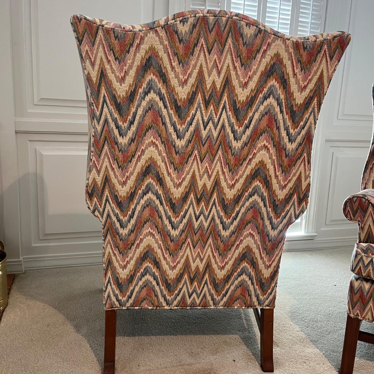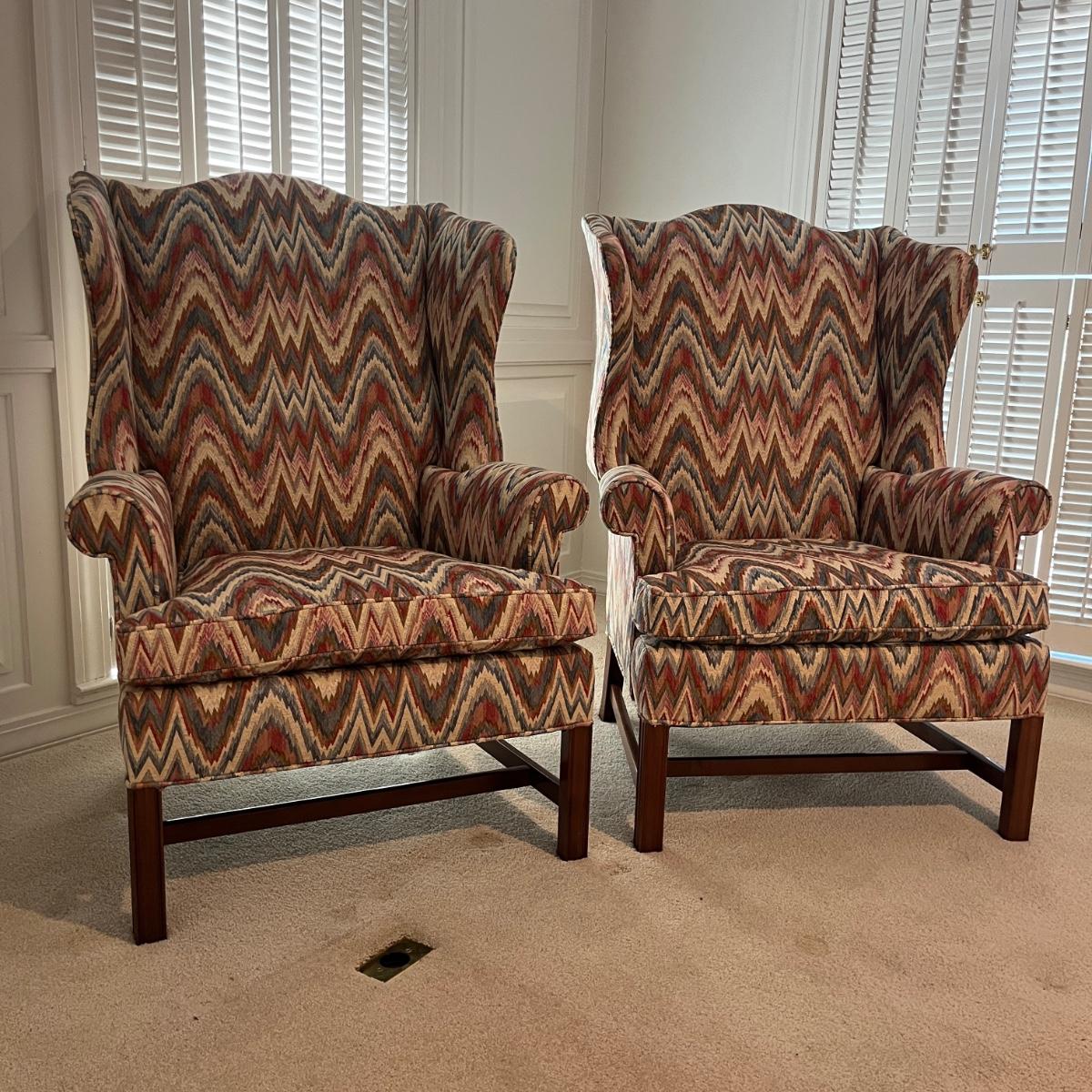 Lot includes a pair of Fairington Brand Chippendale style chairs. Each chair measures 33.5” x 32” x 45”H with a 20” seat height.
