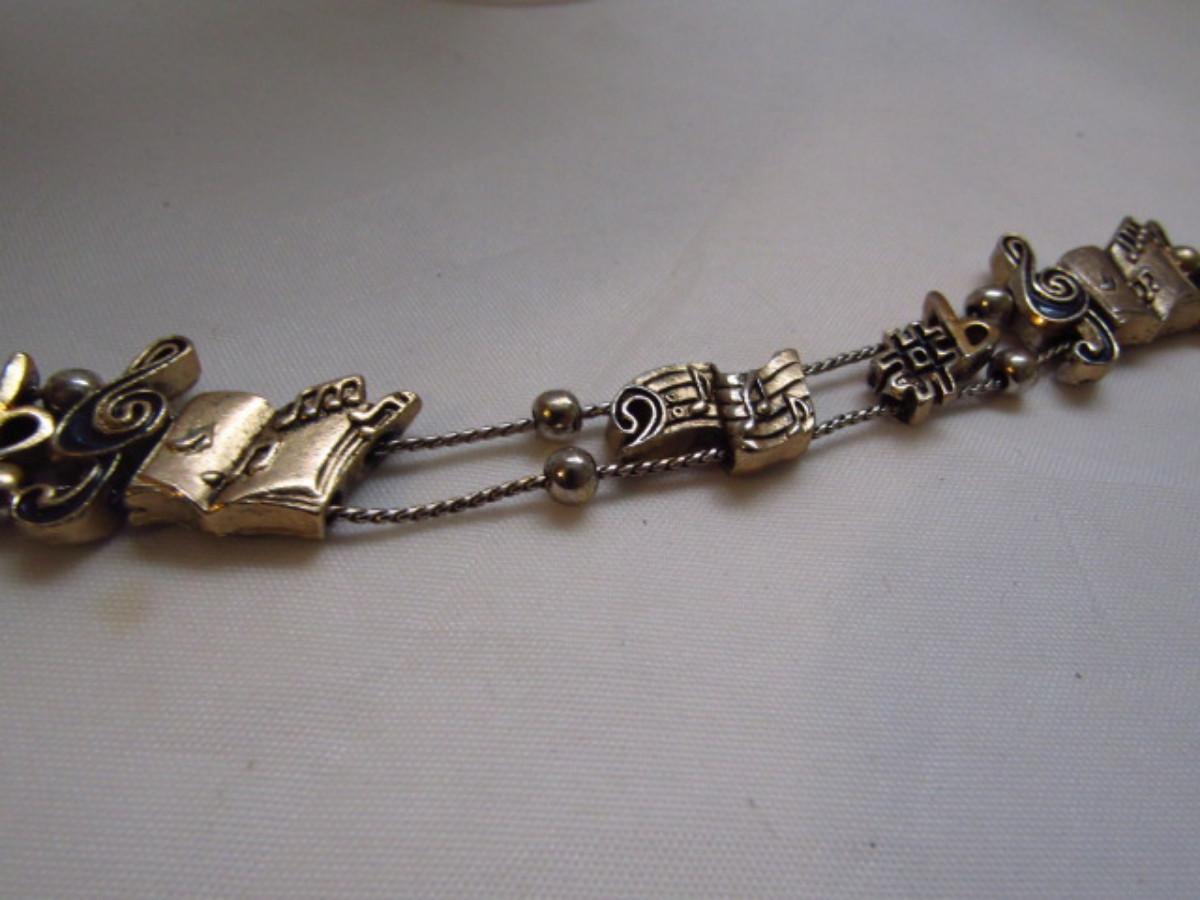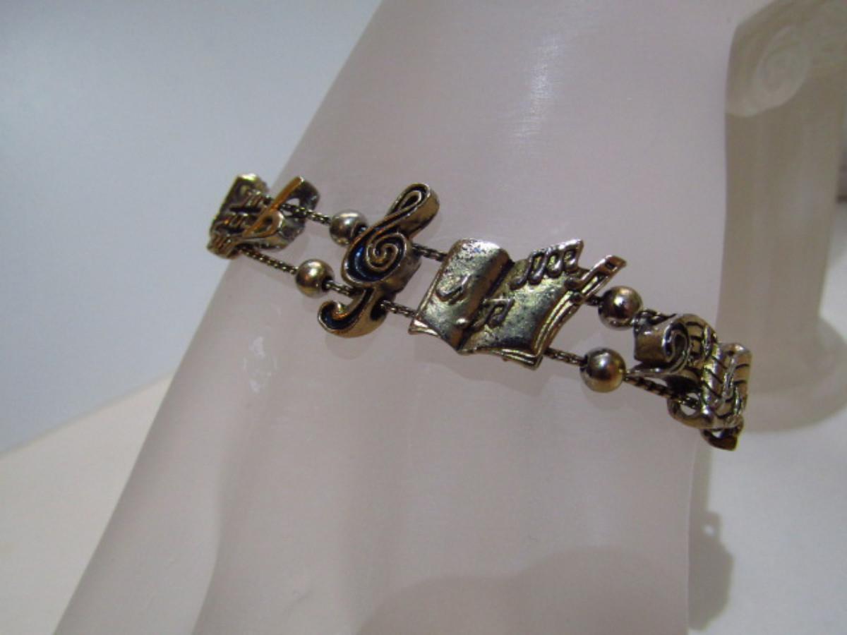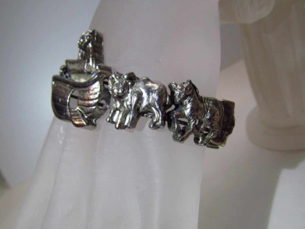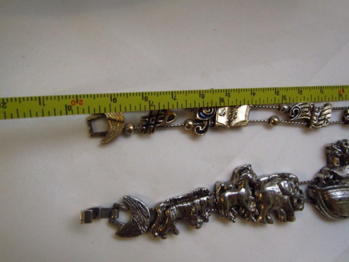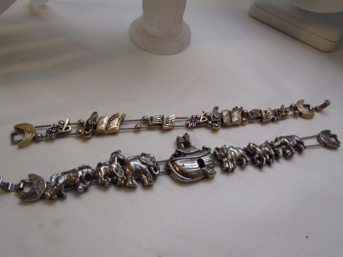 Two Fashion Bracelets with Floating Charms (#5). One is Noah's Ark with animals design. One is music design