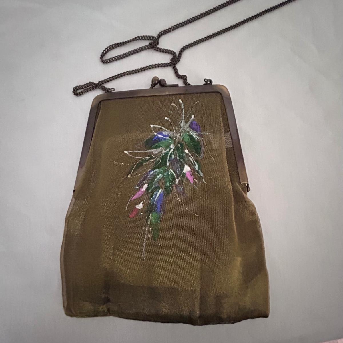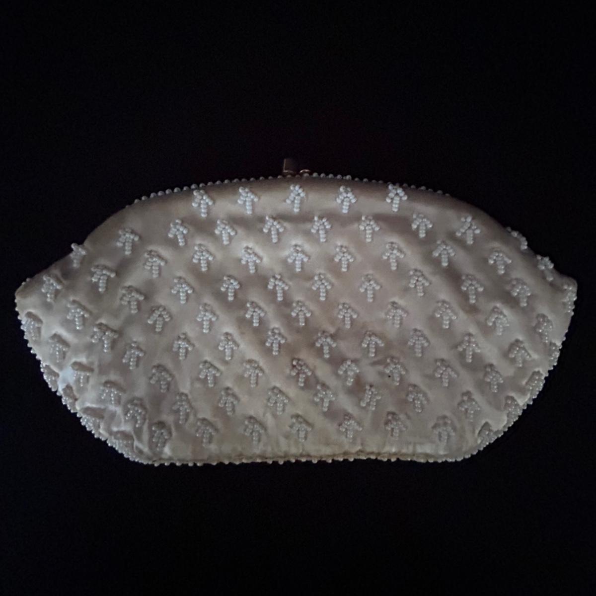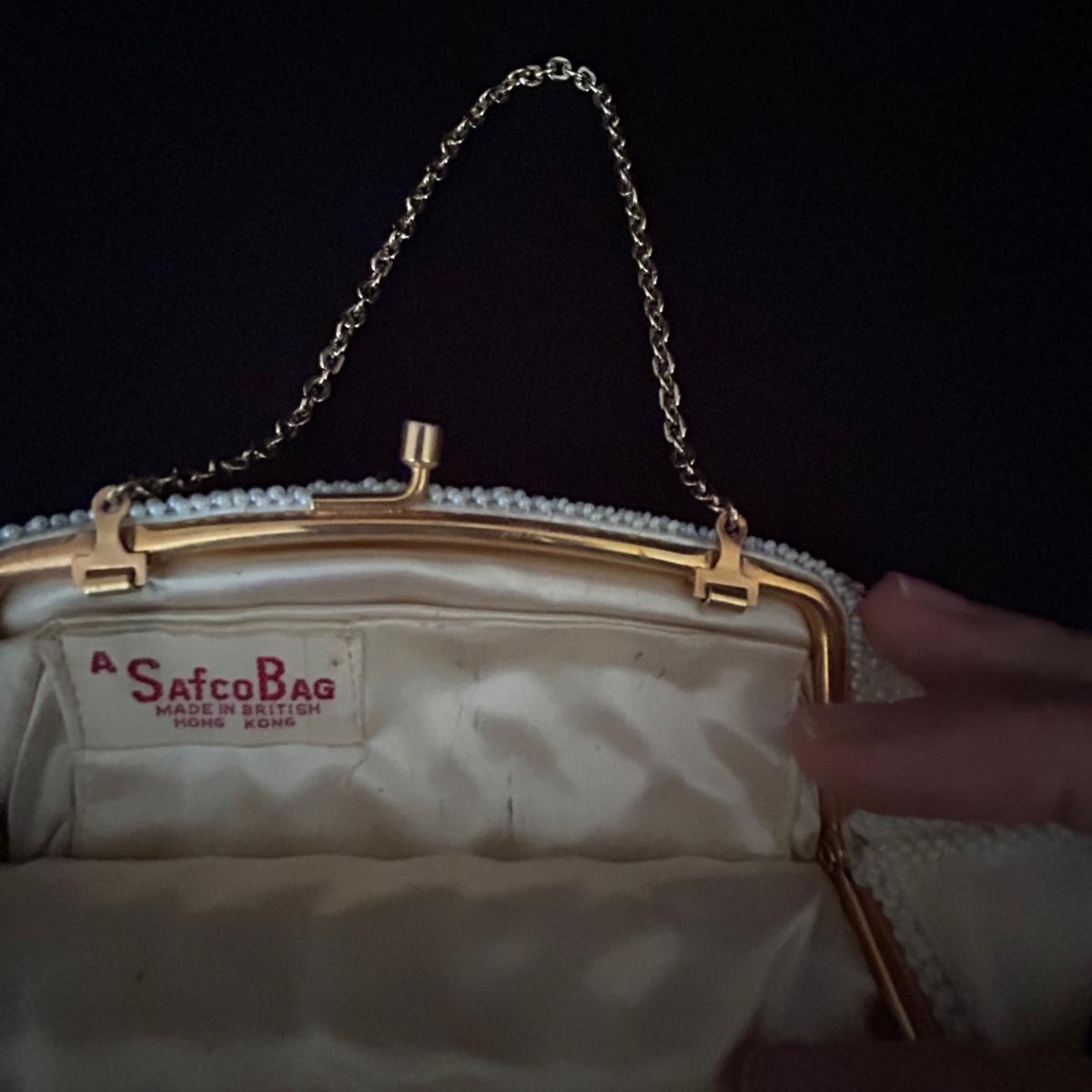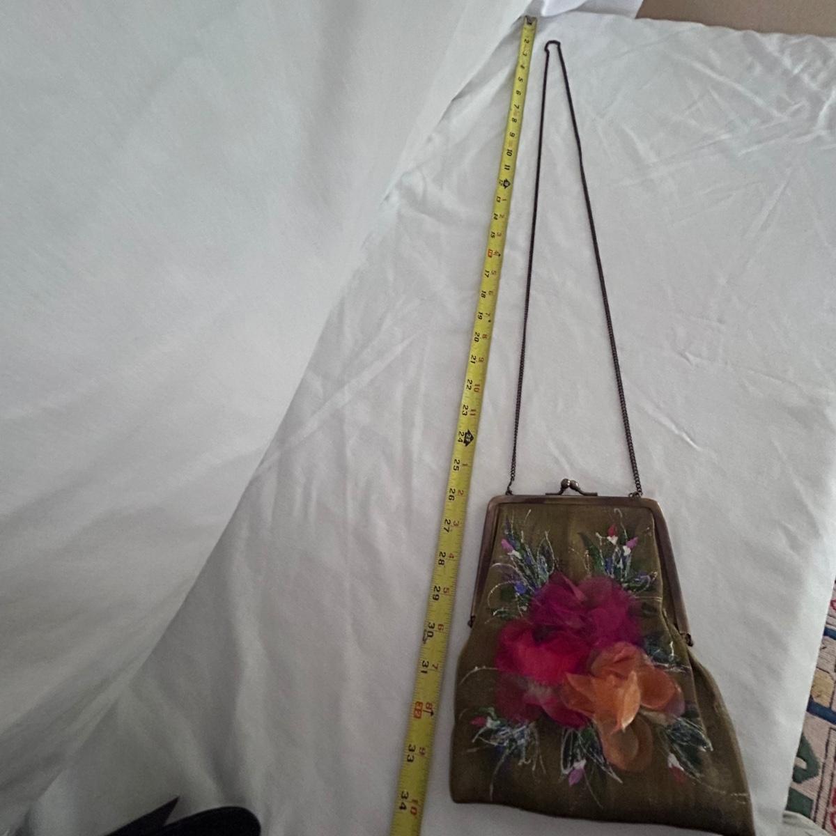 Two lovely clutch or shoulder purses for those special events. The cream colored one is a Safco bag that appears to be a satin material and quilted. It has an inner pocket and the shoulder chain can be tucked in to use as a clutch back. The green/tan mesh bag has a snap inner pocket and the ornate colorful outside is textured (see images). Shipping available.