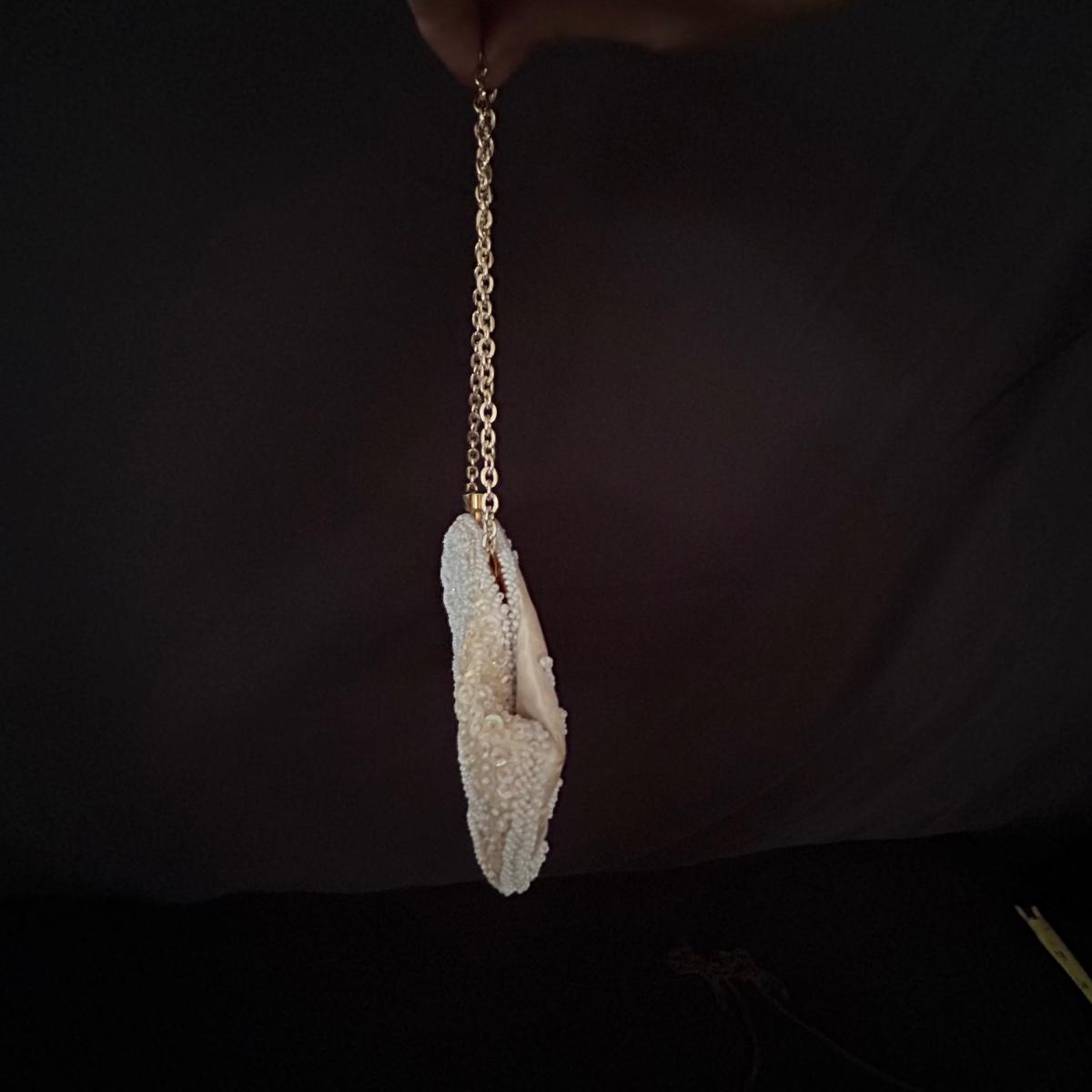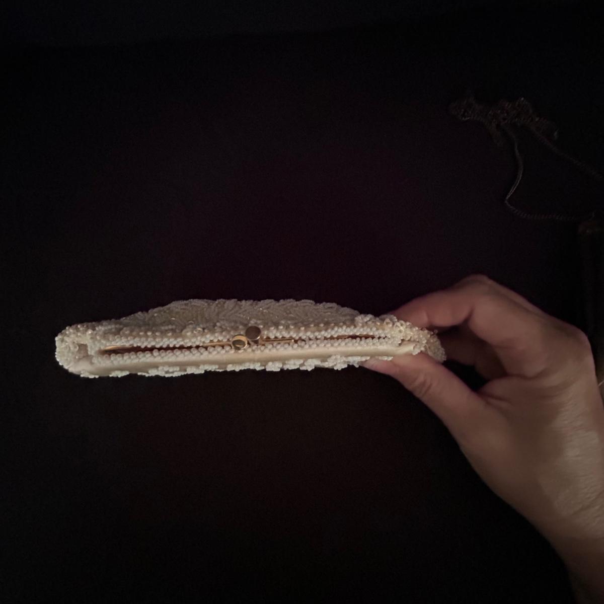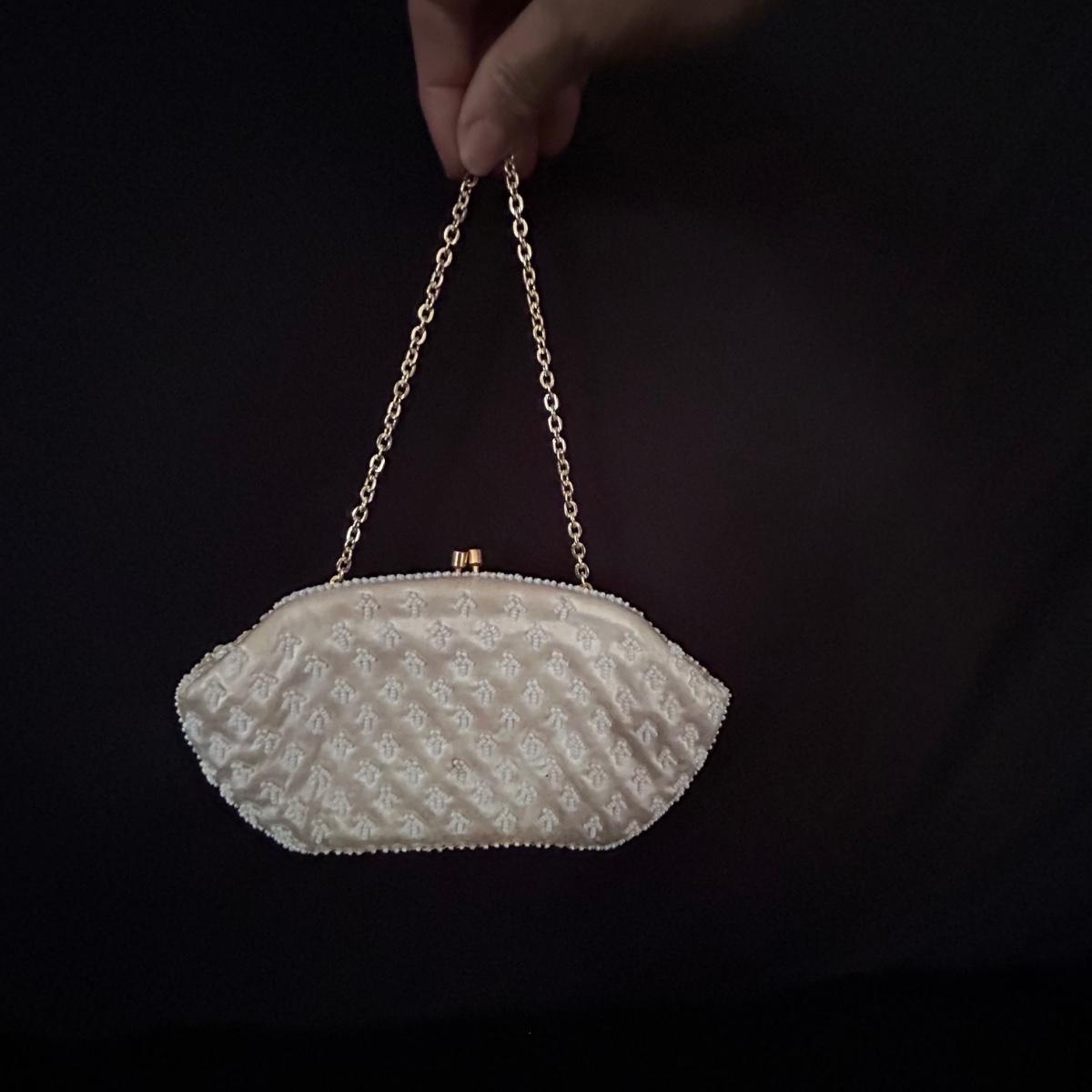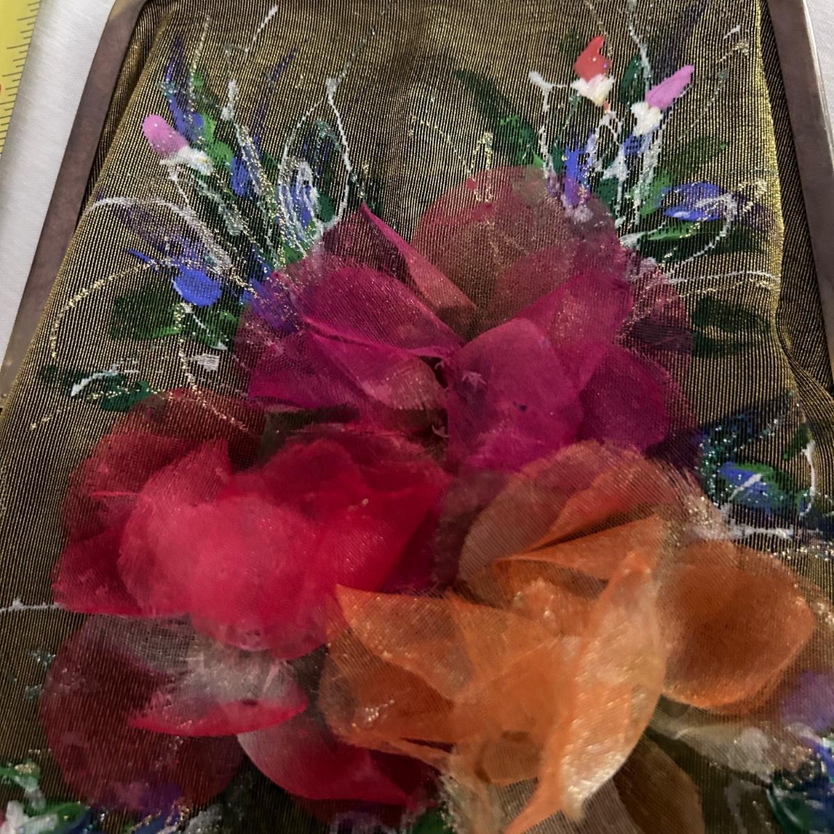 Two lovely clutch or shoulder purses for those special events. The cream colored one is a Safco bag that appears to be a satin material and quilted. It has an inner pocket and the shoulder chain can be tucked in to use as a clutch back. The green/tan mesh bag has a snap inner pocket and the ornate colorful outside is textured (see images). Shipping available.