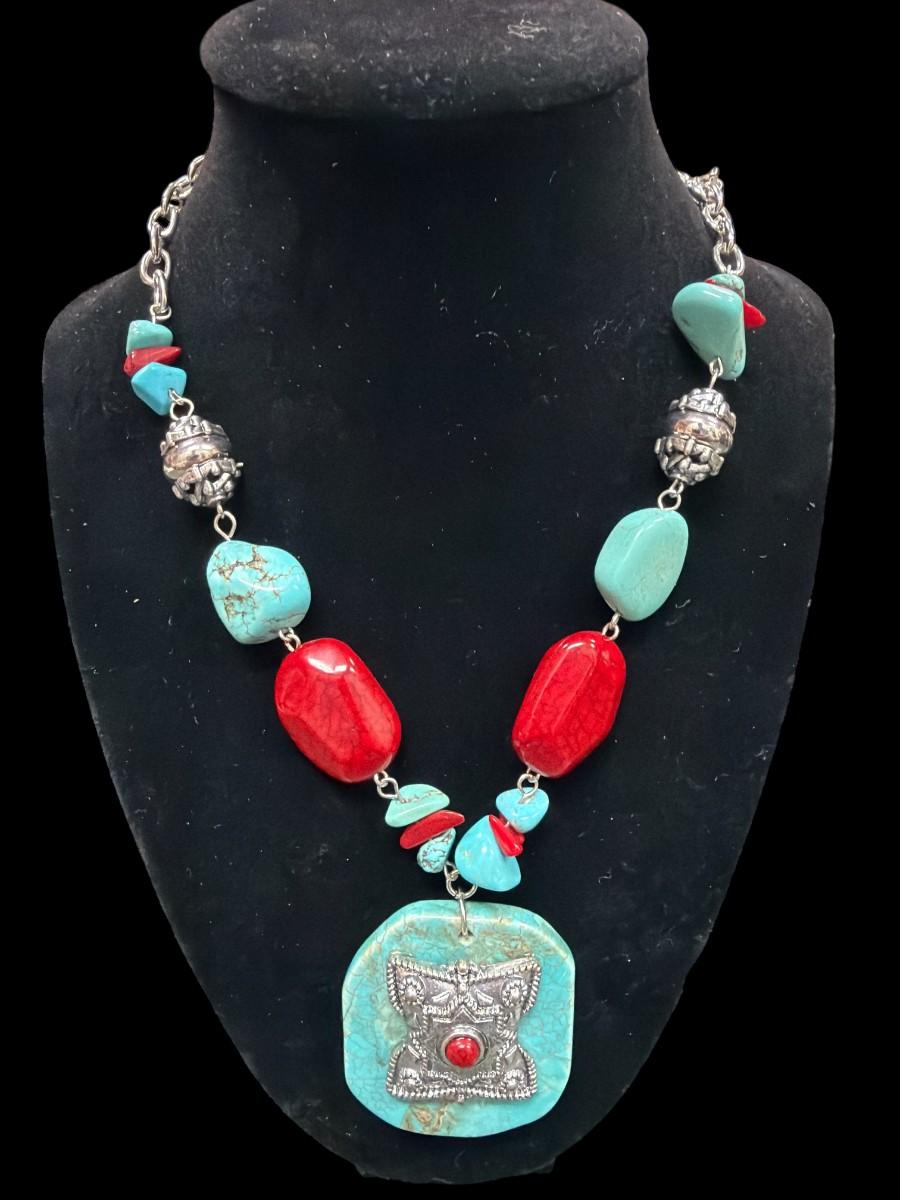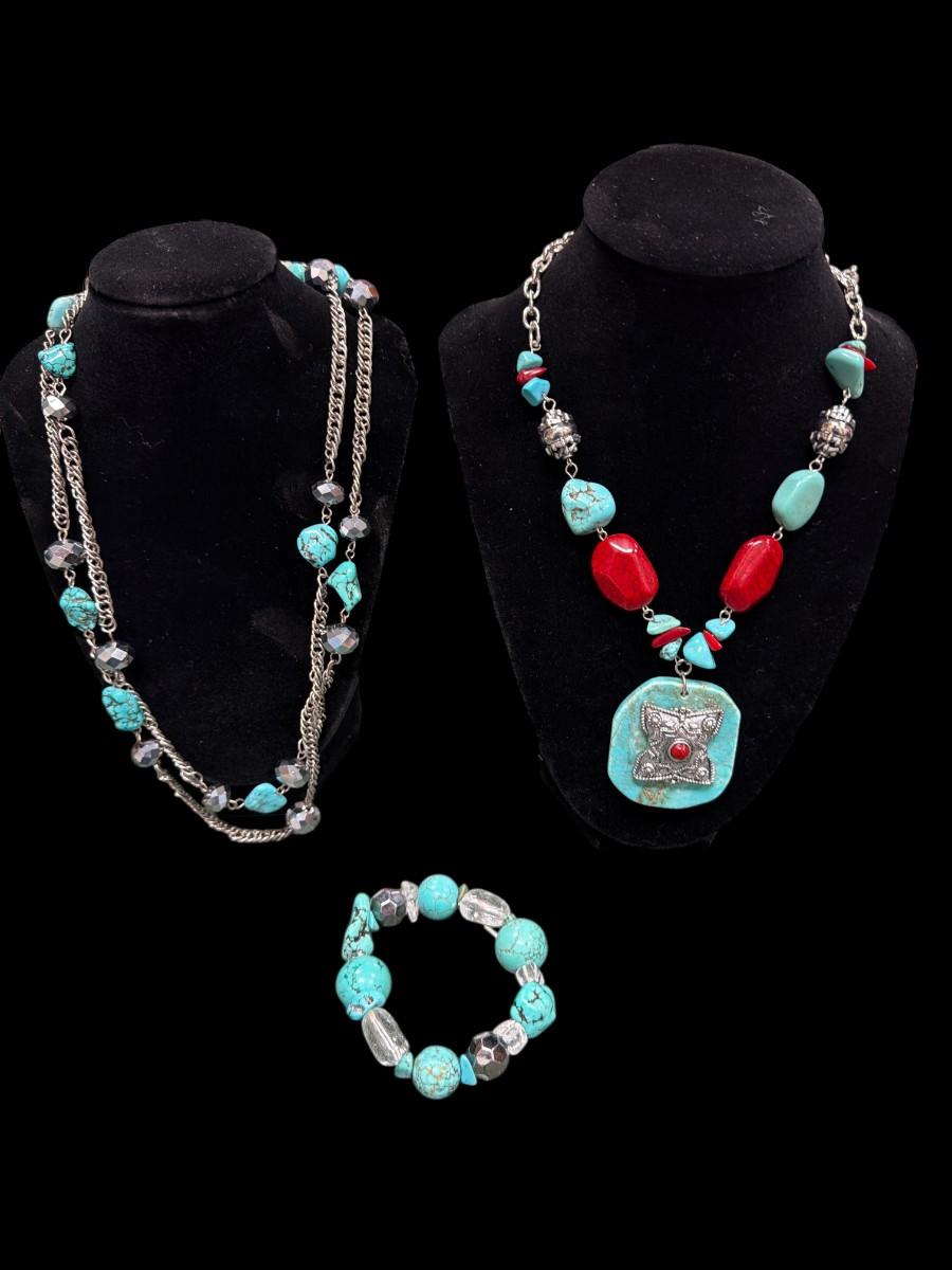 Two Faux Turquoise Necklaces and One Bracelet