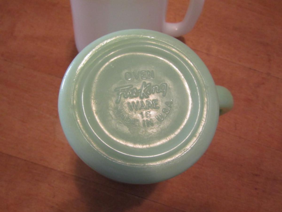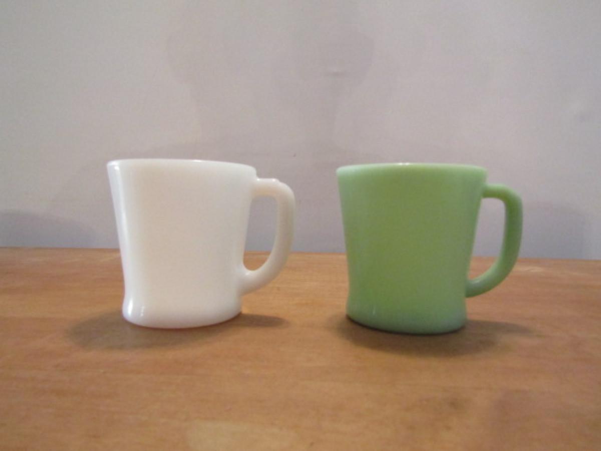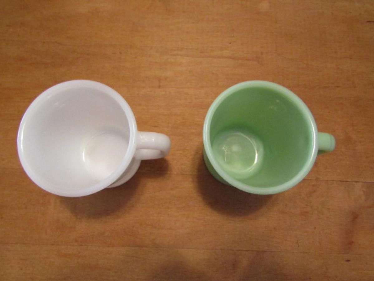 Two Fire King Mugs: One Jadeite, One Milk Glass