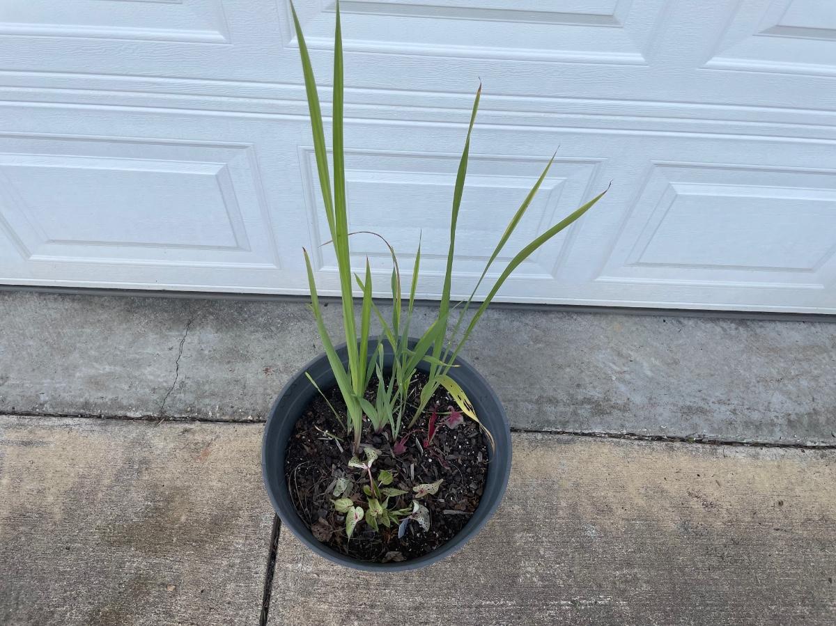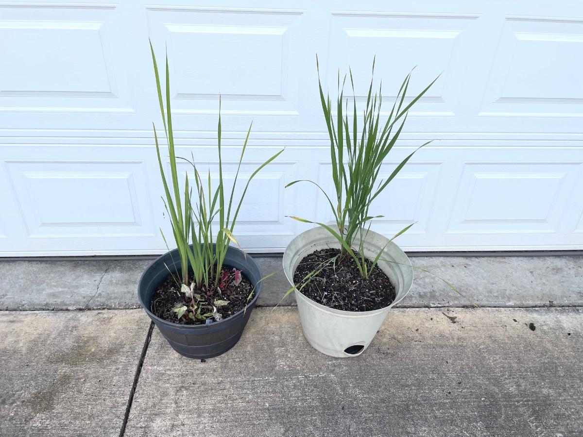 Two flower pots. Tallest measures 12 inches tall and 16 inches round. Other measures 10 inches tall and 16 inches round.