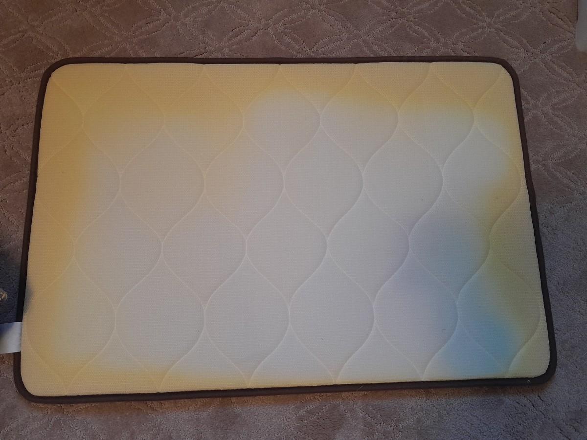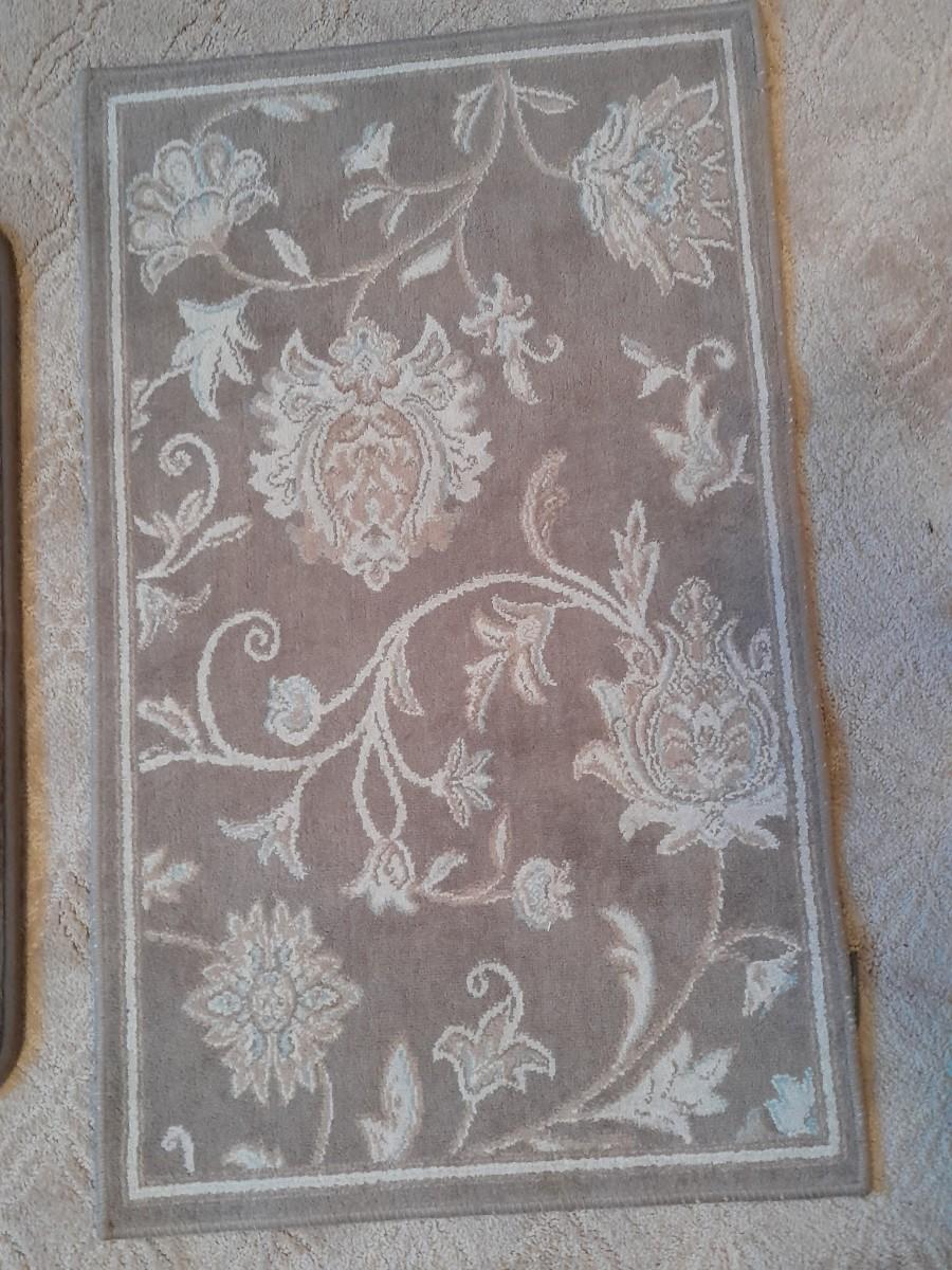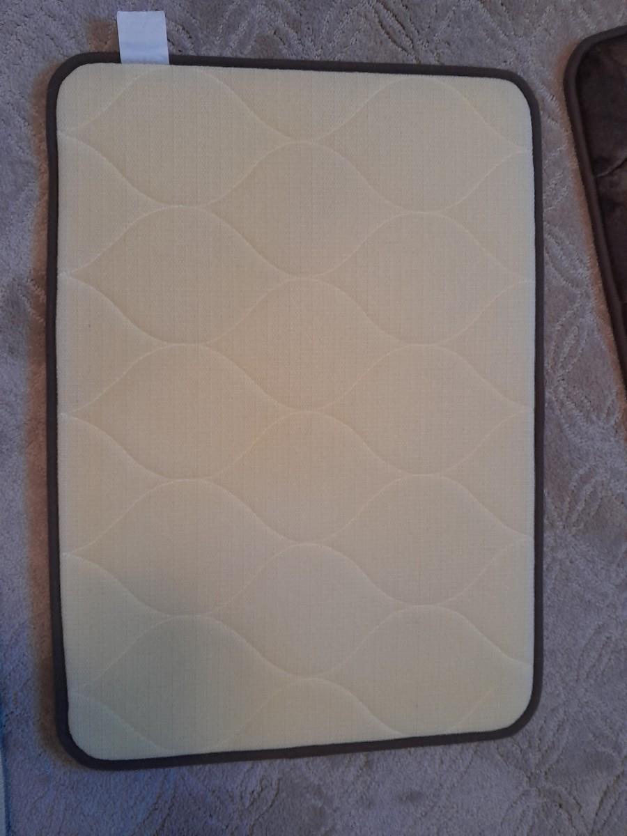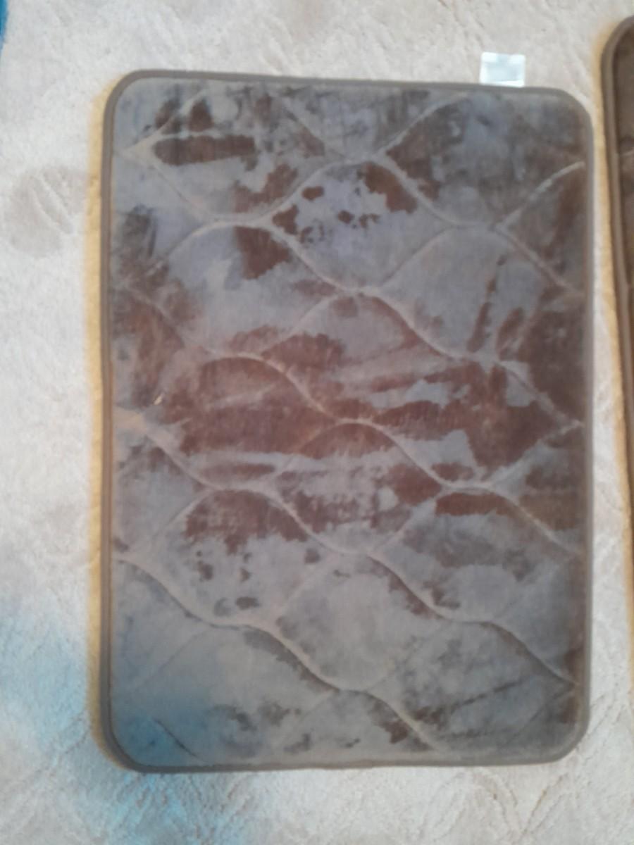 TWO BROWN SOFT FOAM BATHMATS, 30" X 20" AND 24.5" X 7.5"AND A RUBBER BACKED RUG 32" X 19"