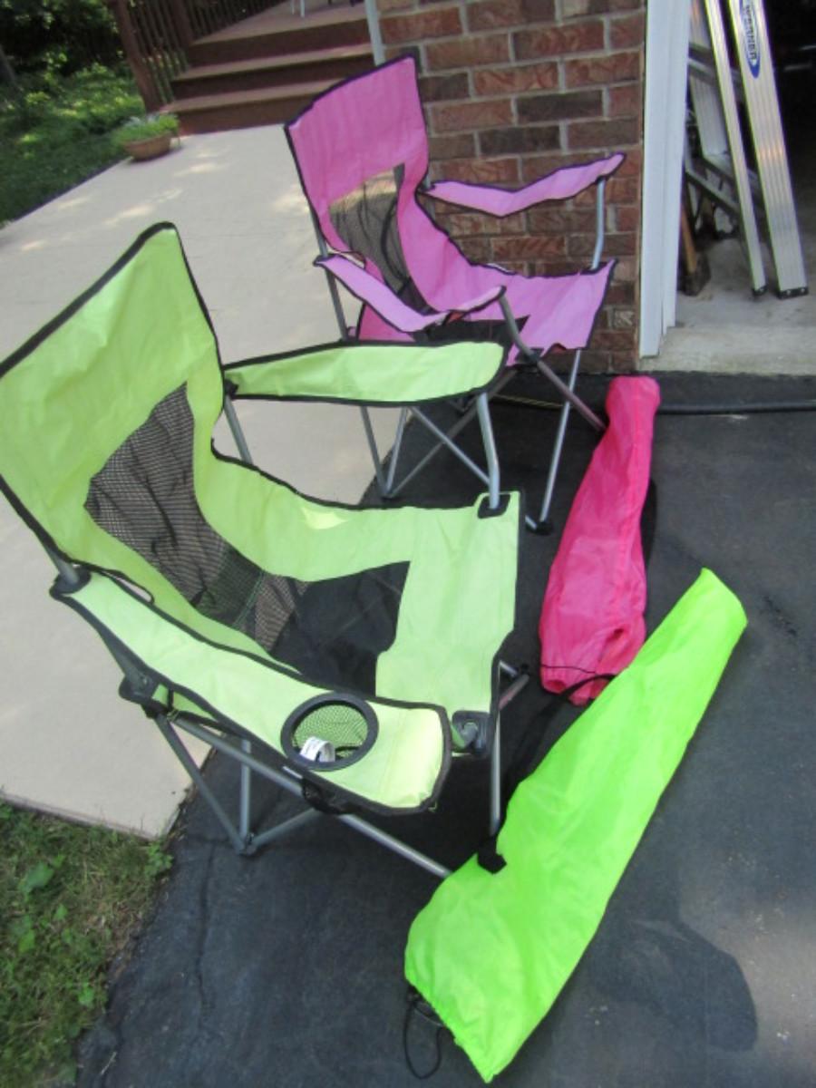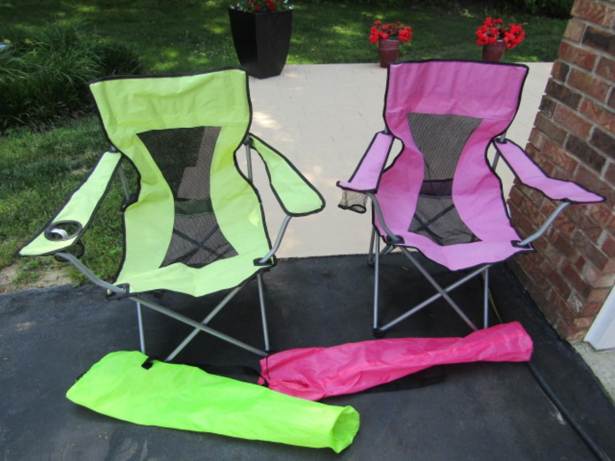 Two Folding Camp Chairs with Cup Holder- Fluorescent Pink and Green