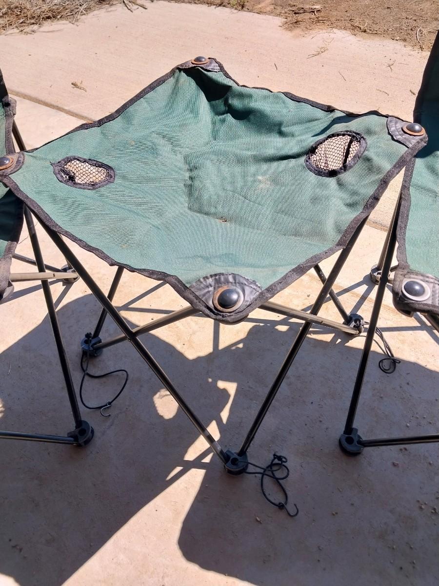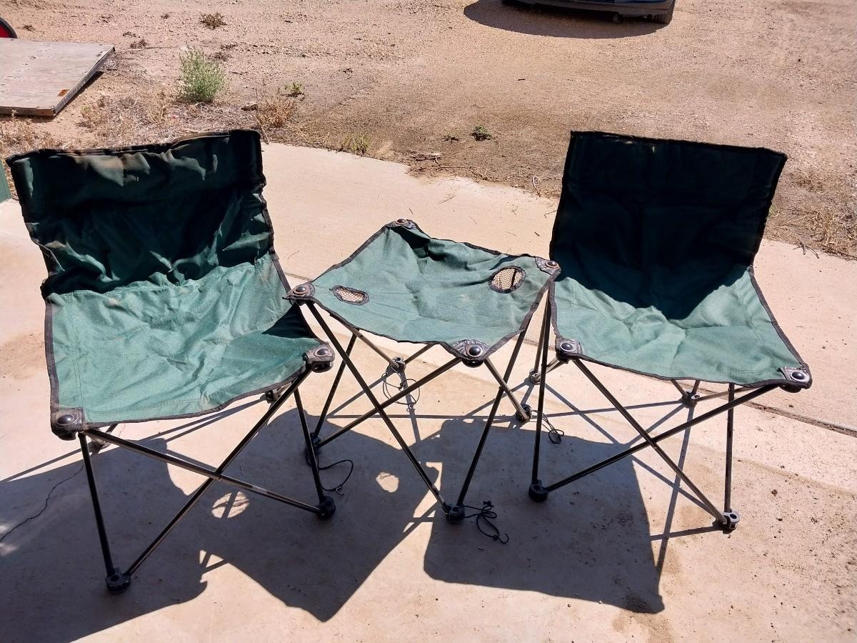TWO FOLDING CAMPING CHAIRS AND TABLE