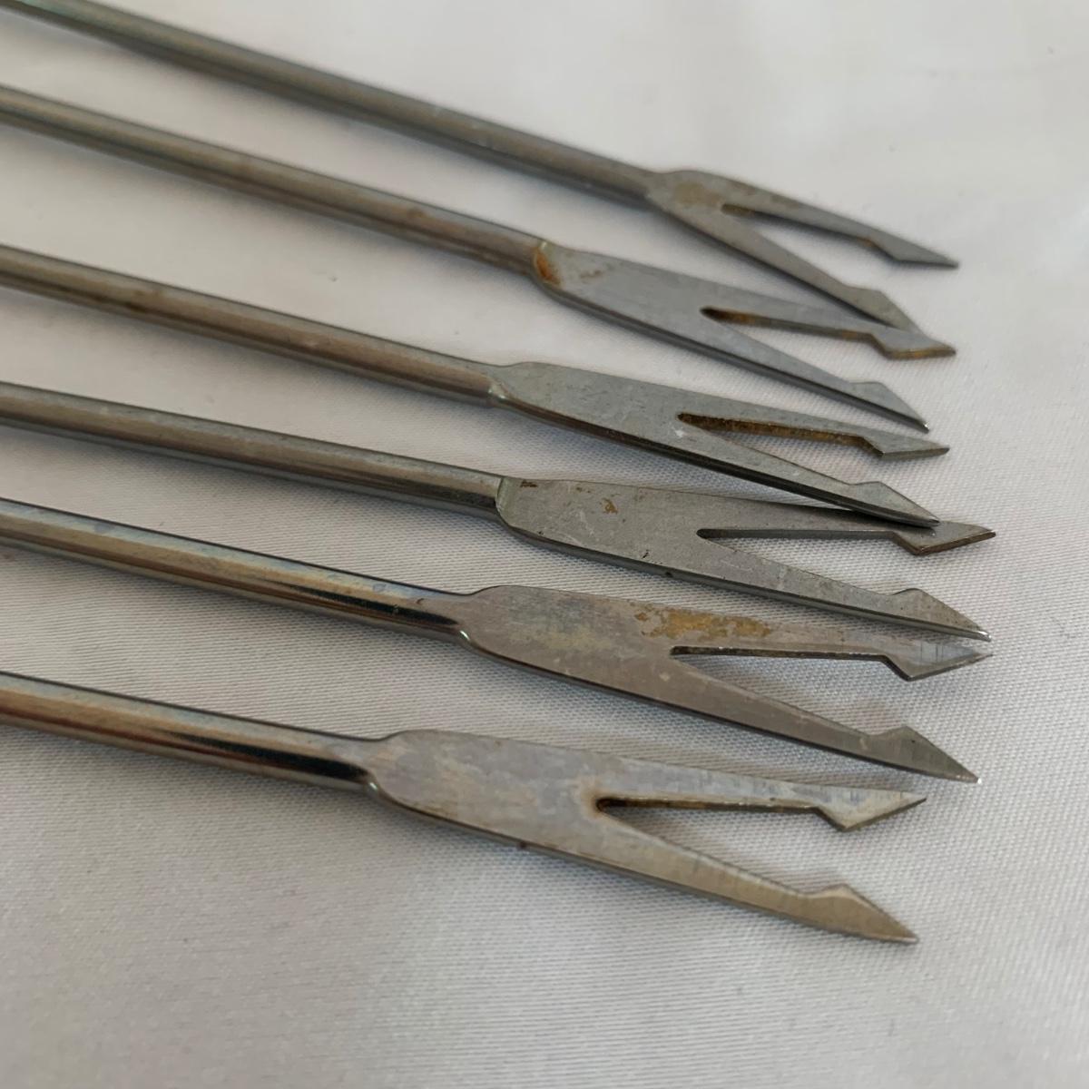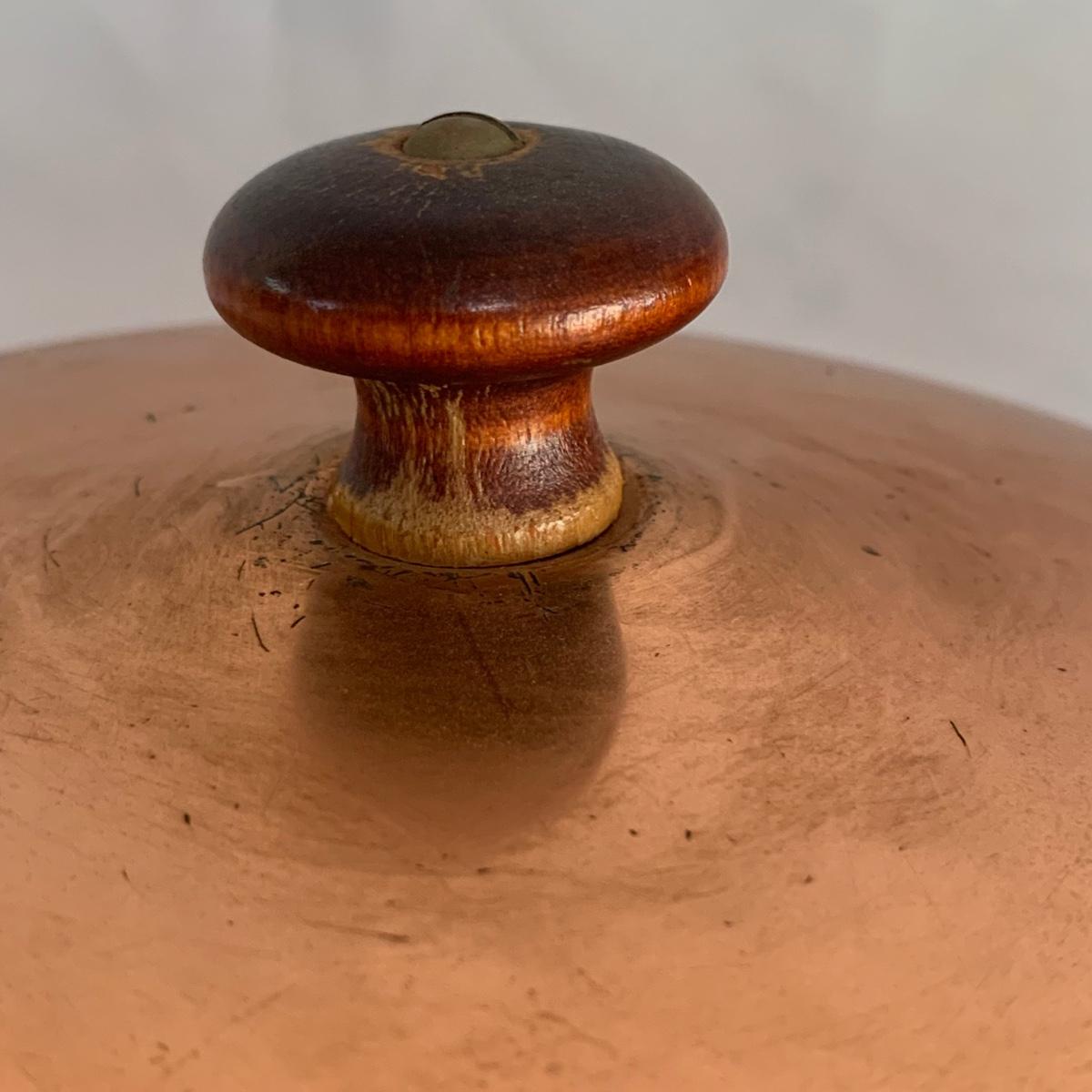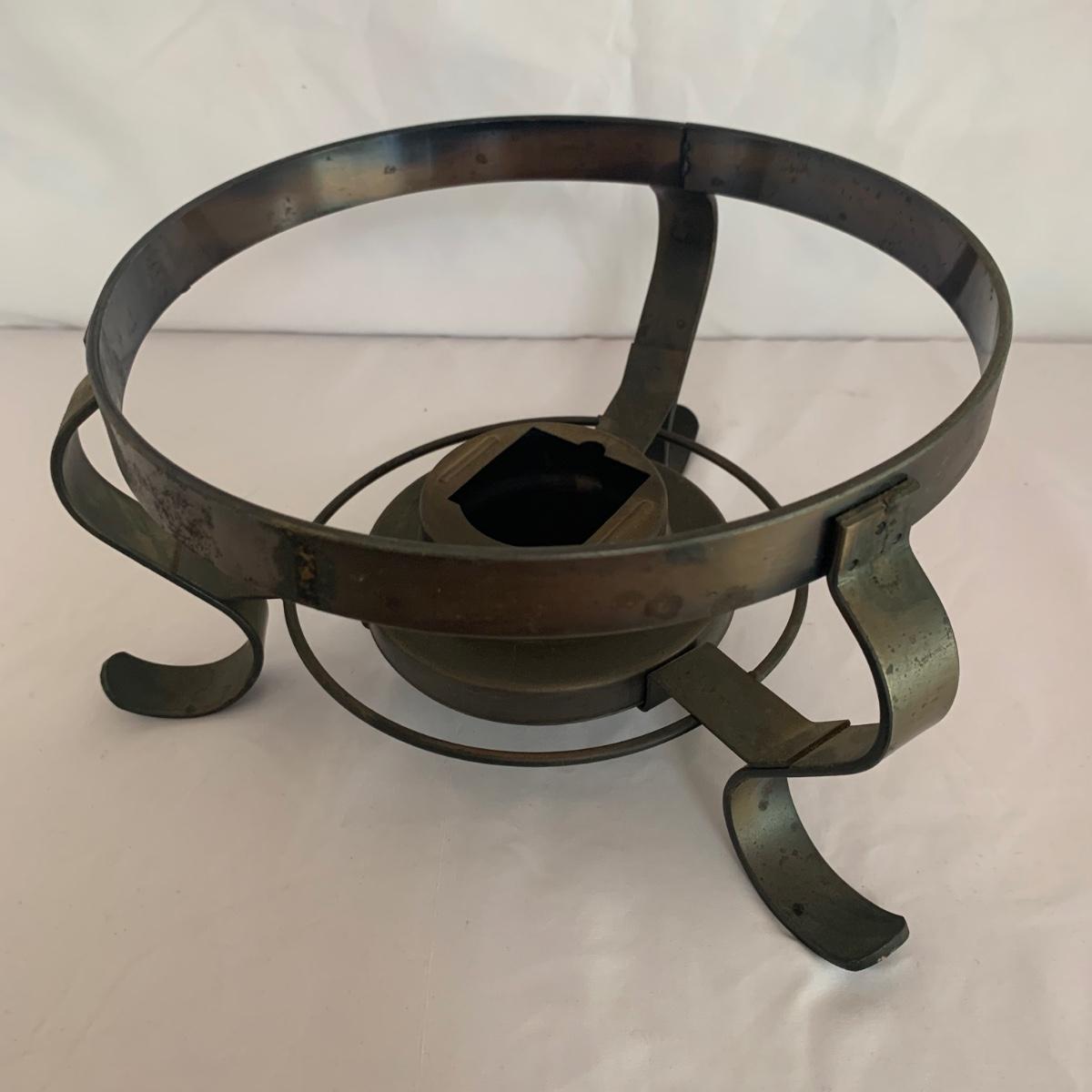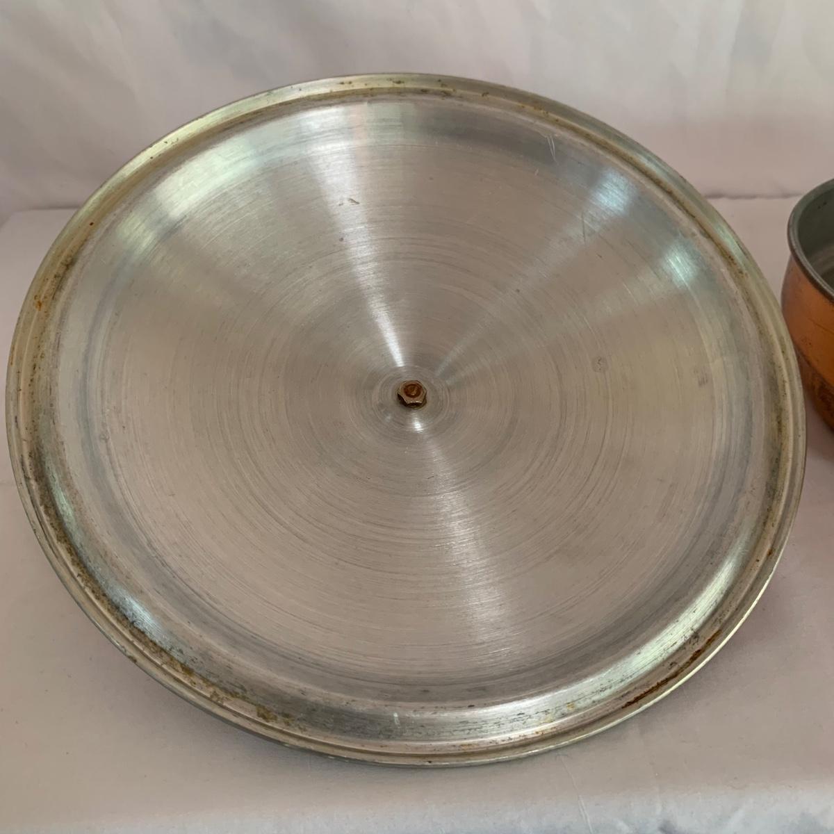 In this lot there are two vintage metal fondue pots, both powered by cooking fuel, as well as six fondue dipping forks with wood handles and Southern Living’s “The Fondue and Buffet Cookbook”. Both pots are metal with wooden handles. The copper colored pot sits on a metal stand. With the stand, this item measures approximately 10.5”d x 10”h (not including the side handle). The red enameled pot has a wood base with a metal stand. Both show some wear on their surfaces, but seem to be in good functional condition.