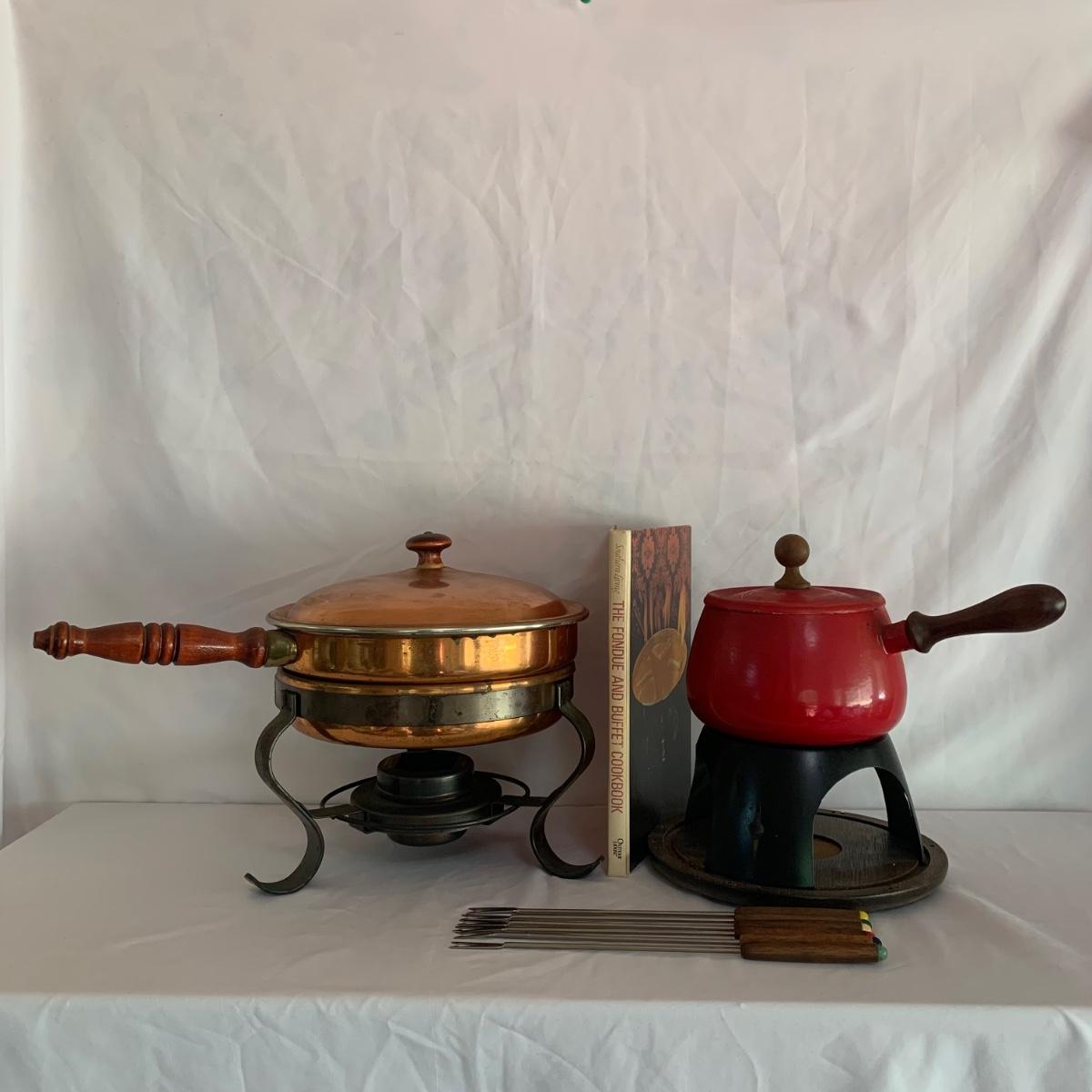 Two Fondue Pots w/ Dipping Forks & a Fondue Cookbook (K-HS)