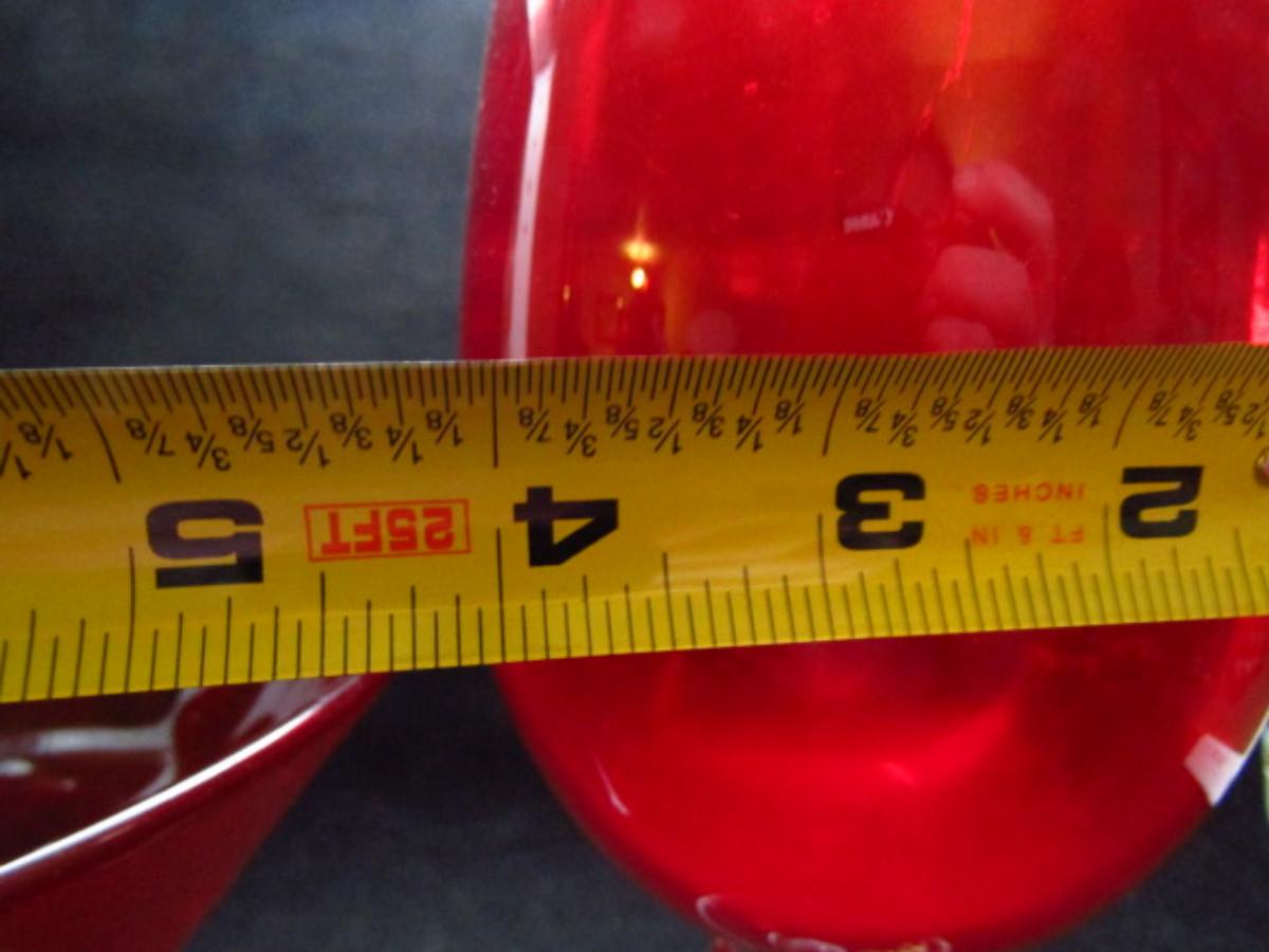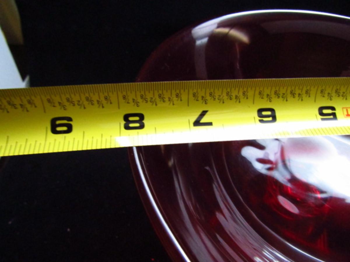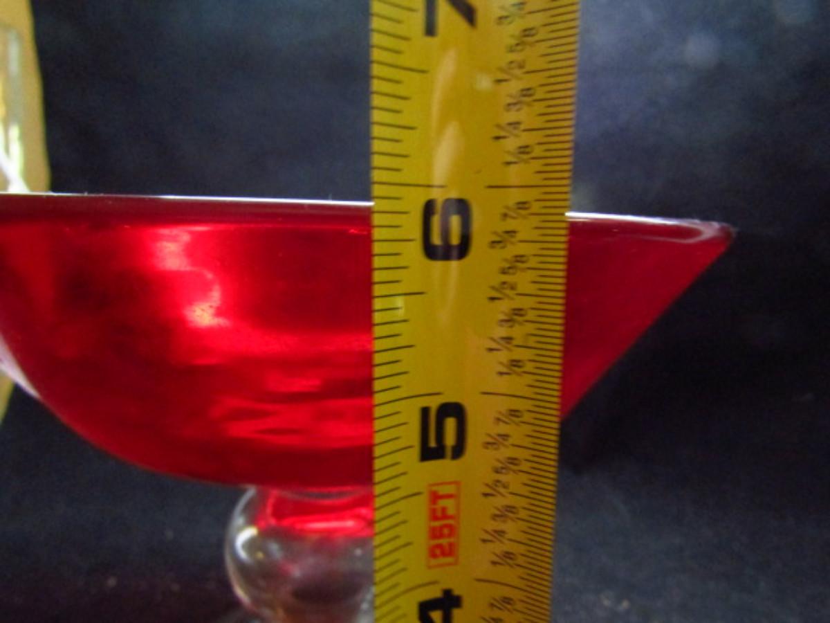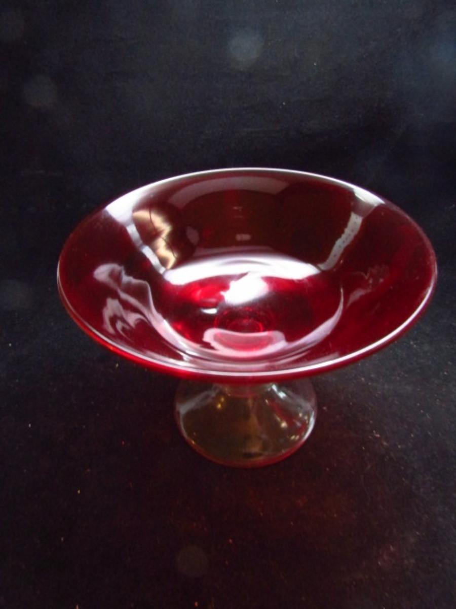 Two Footed Red Glass Pieces- Candy Dish and Vase (#504)