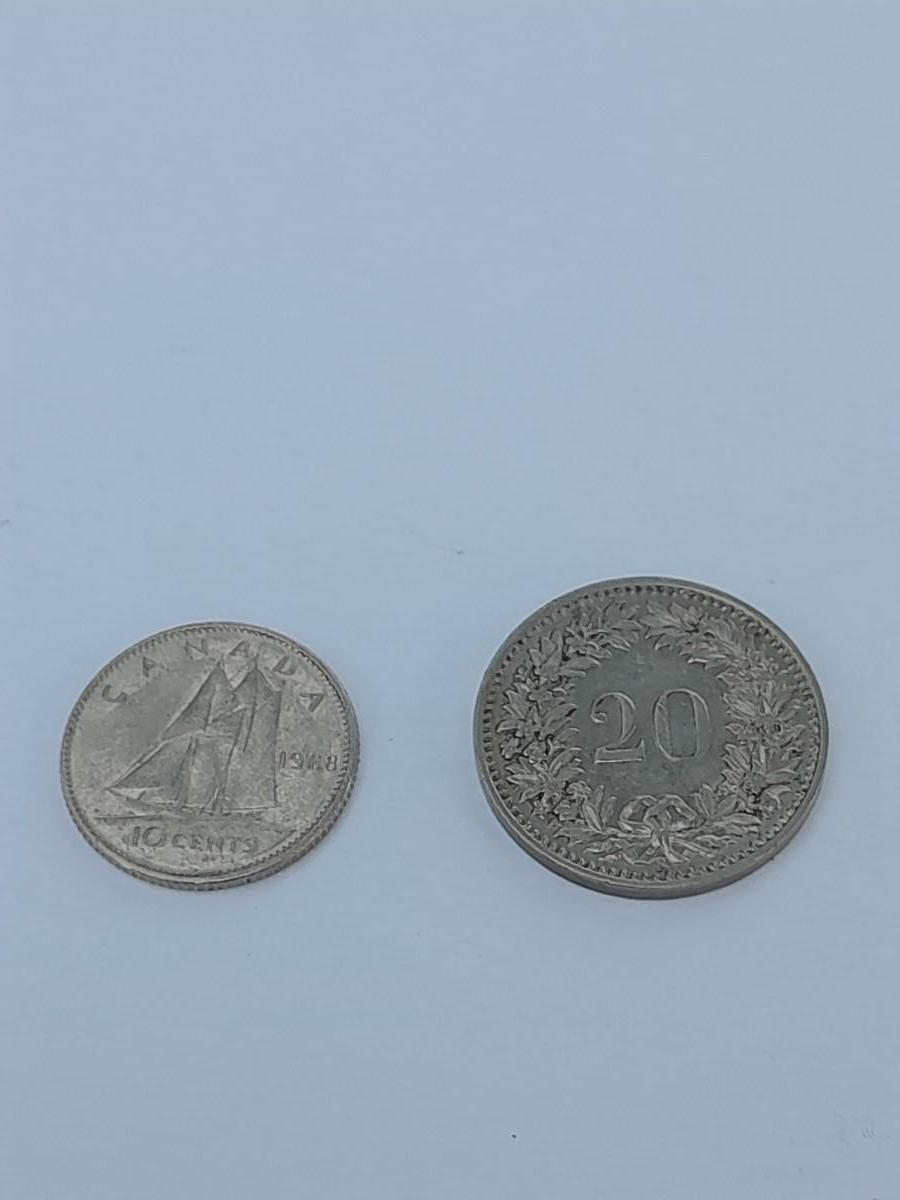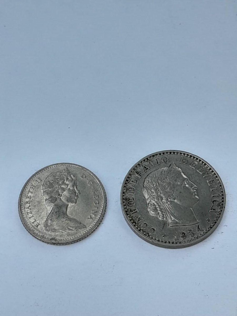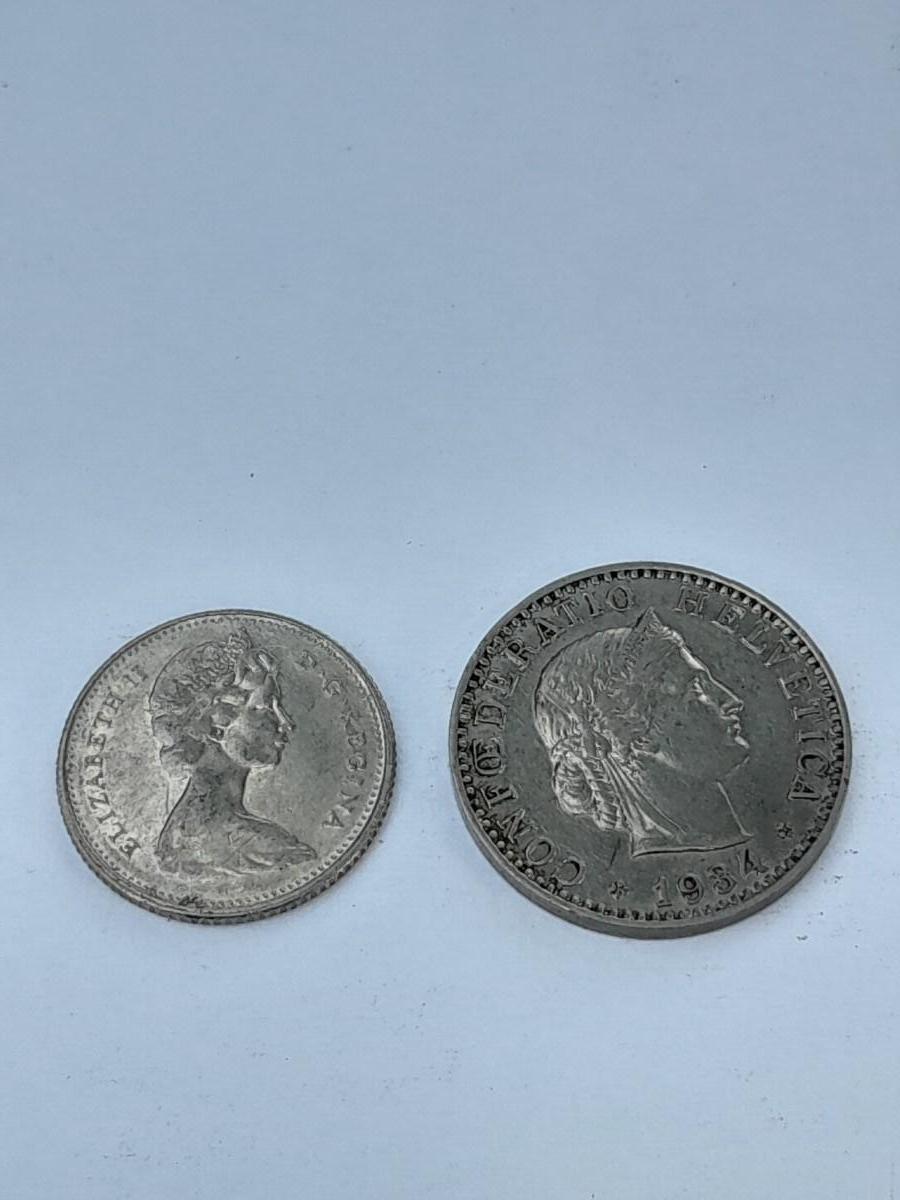 Two foreign coins, Conferatio Helvetica 194 & 1968 Elizabeth II 10 cents