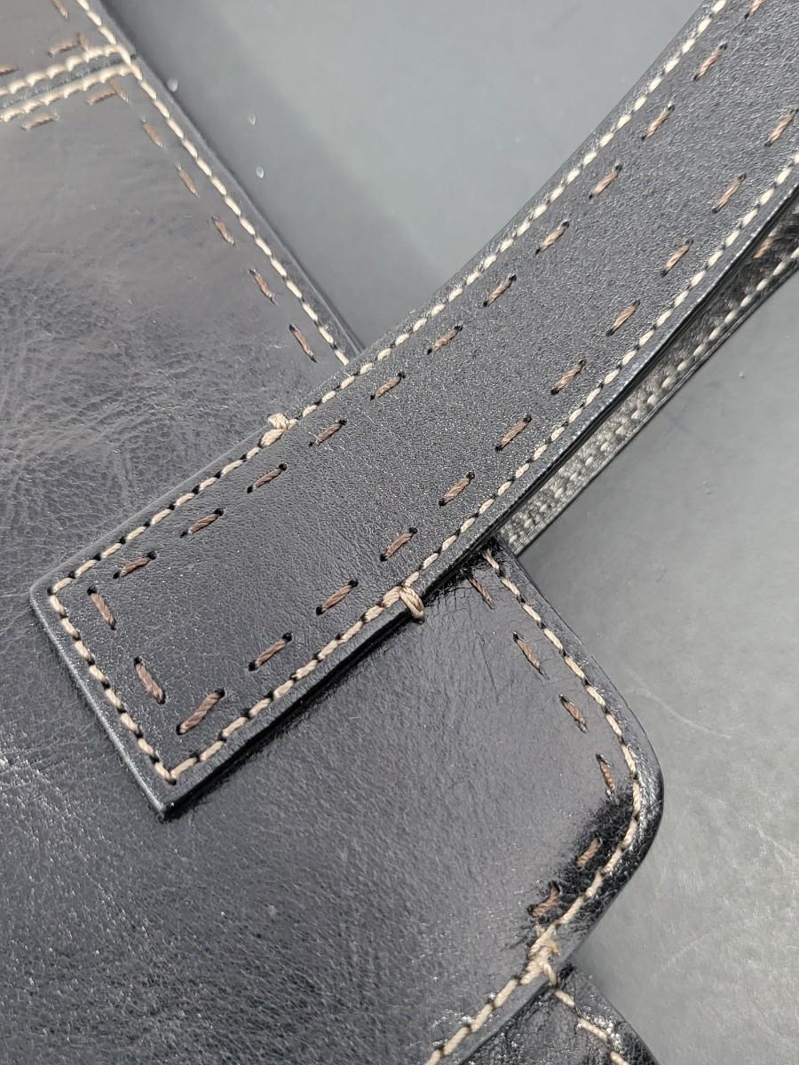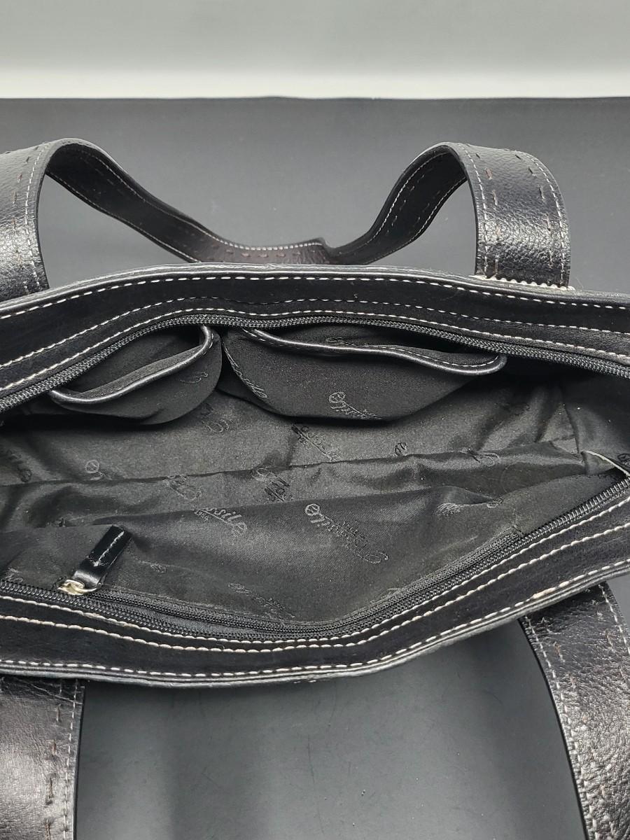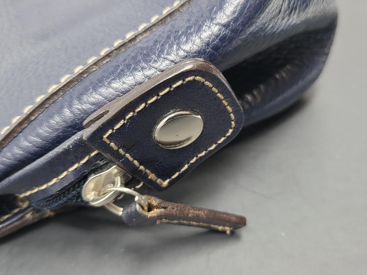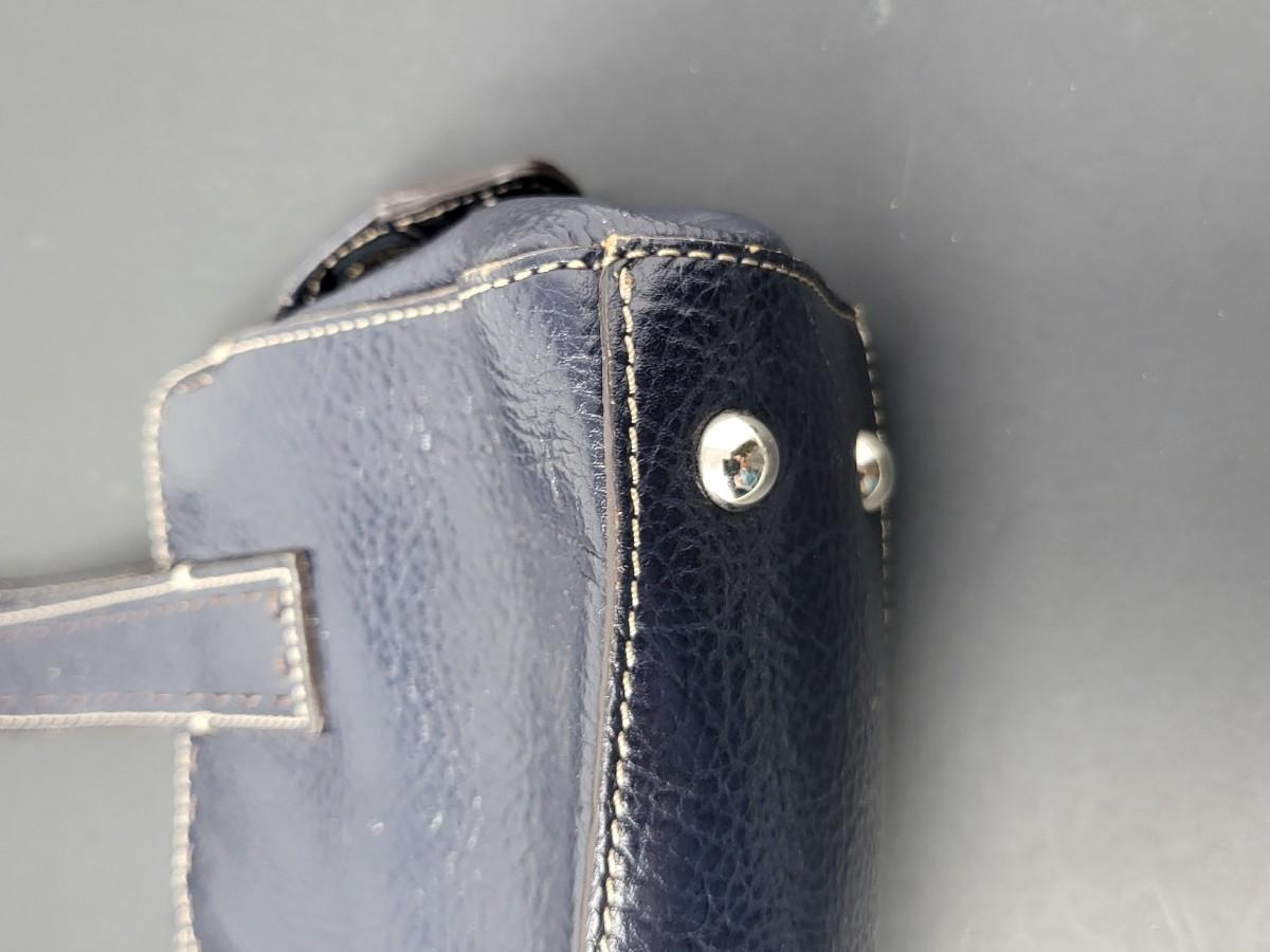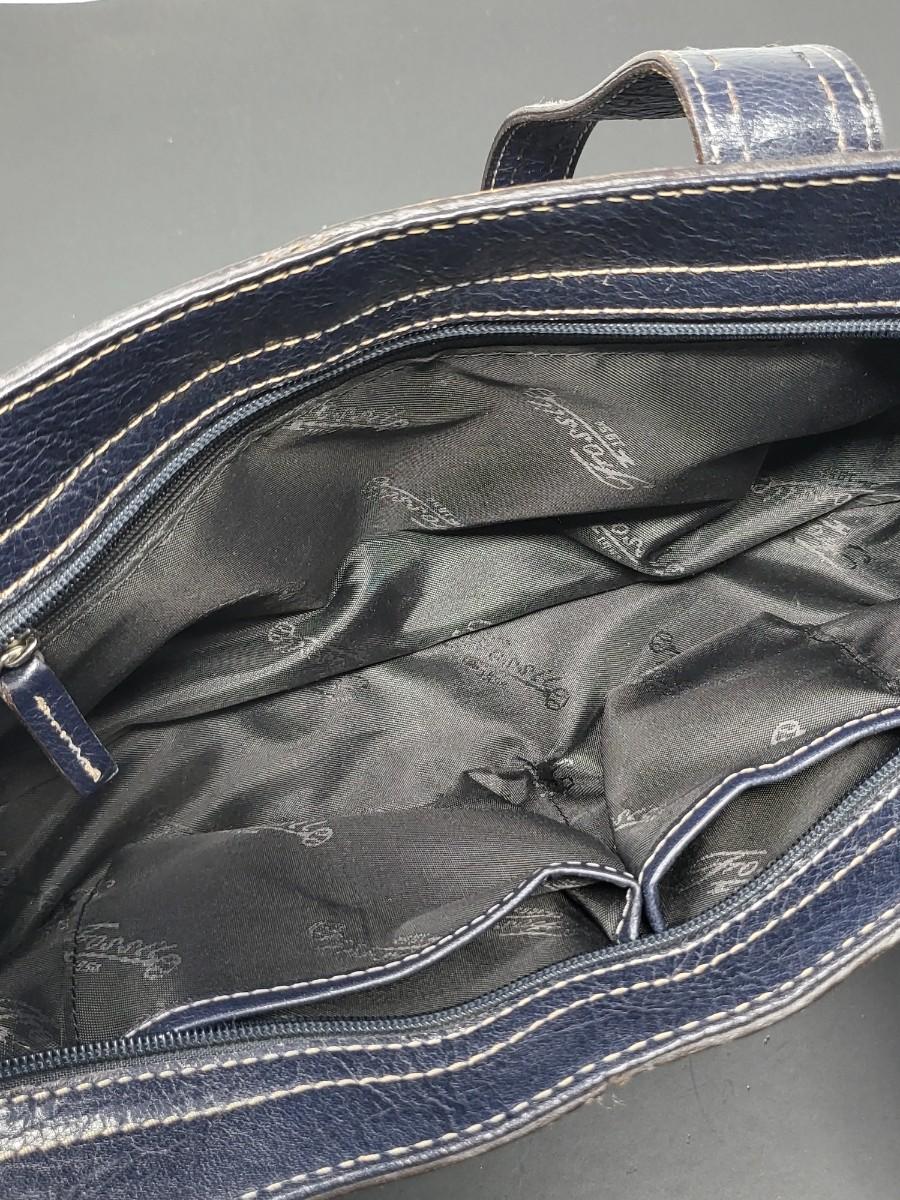 Leather bags, one navy blue, one black. Both are Fossil brand. They measure 11" x 6" x 3", and 10" double strap length.