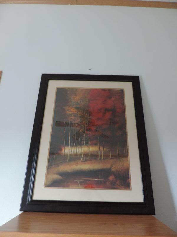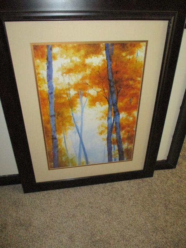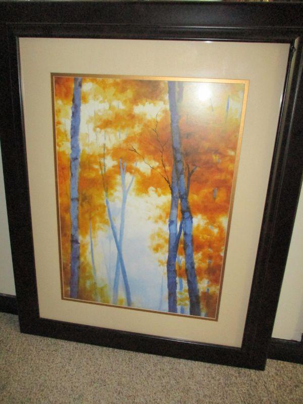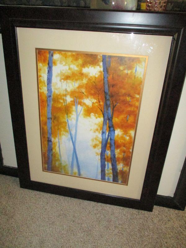 "VERMILION MEADOW" MEASURES 32"X40" AND "BLUE WOOD CANOPY" MEASURES 26"X33"