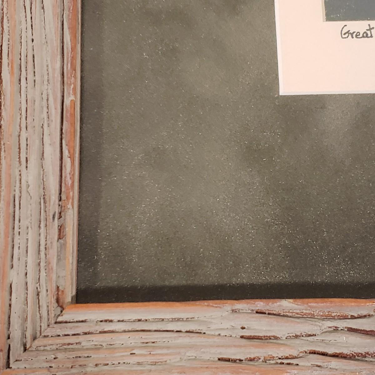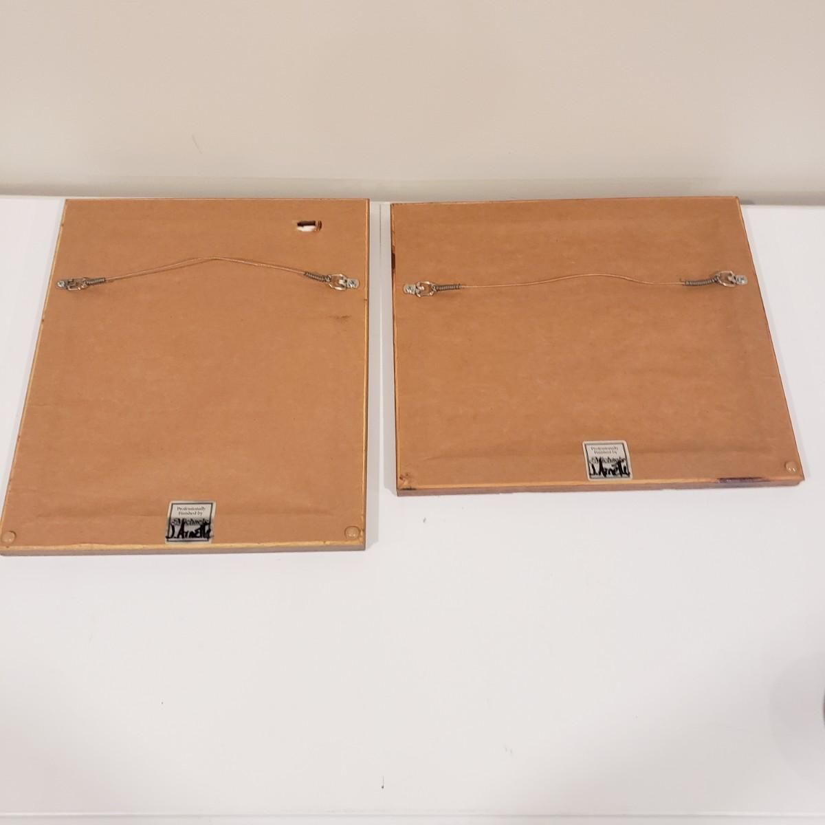These two framed behind glass are photographs of cranes in action! The artist is Walter Clifton. The frames are matted with a leather looking mat and ready to hang. The frame measures 14" x 12".