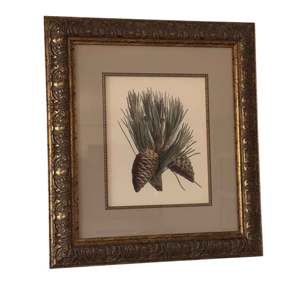 Lot includes two large prints of pinecones that are framed, matted, and protected with glass. The frames appear to be wooden with a paint finish. The frames individually measure 26” x 29”H. Shipping available. Shipping can be costly. We suggest contacting our preferred local shipping provider, Postage Express, with dimensions and getting an estimate before bidding: (828) 255-9250 or shipping@postageexpressnc.com.