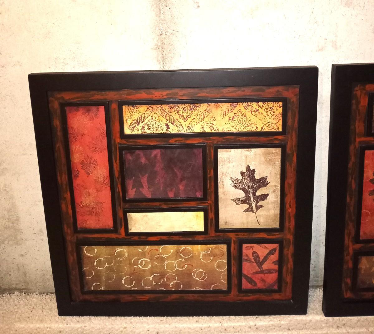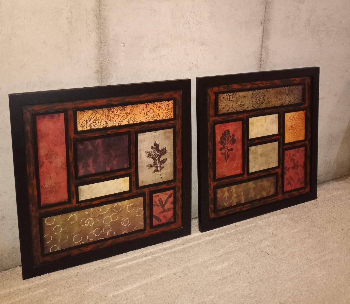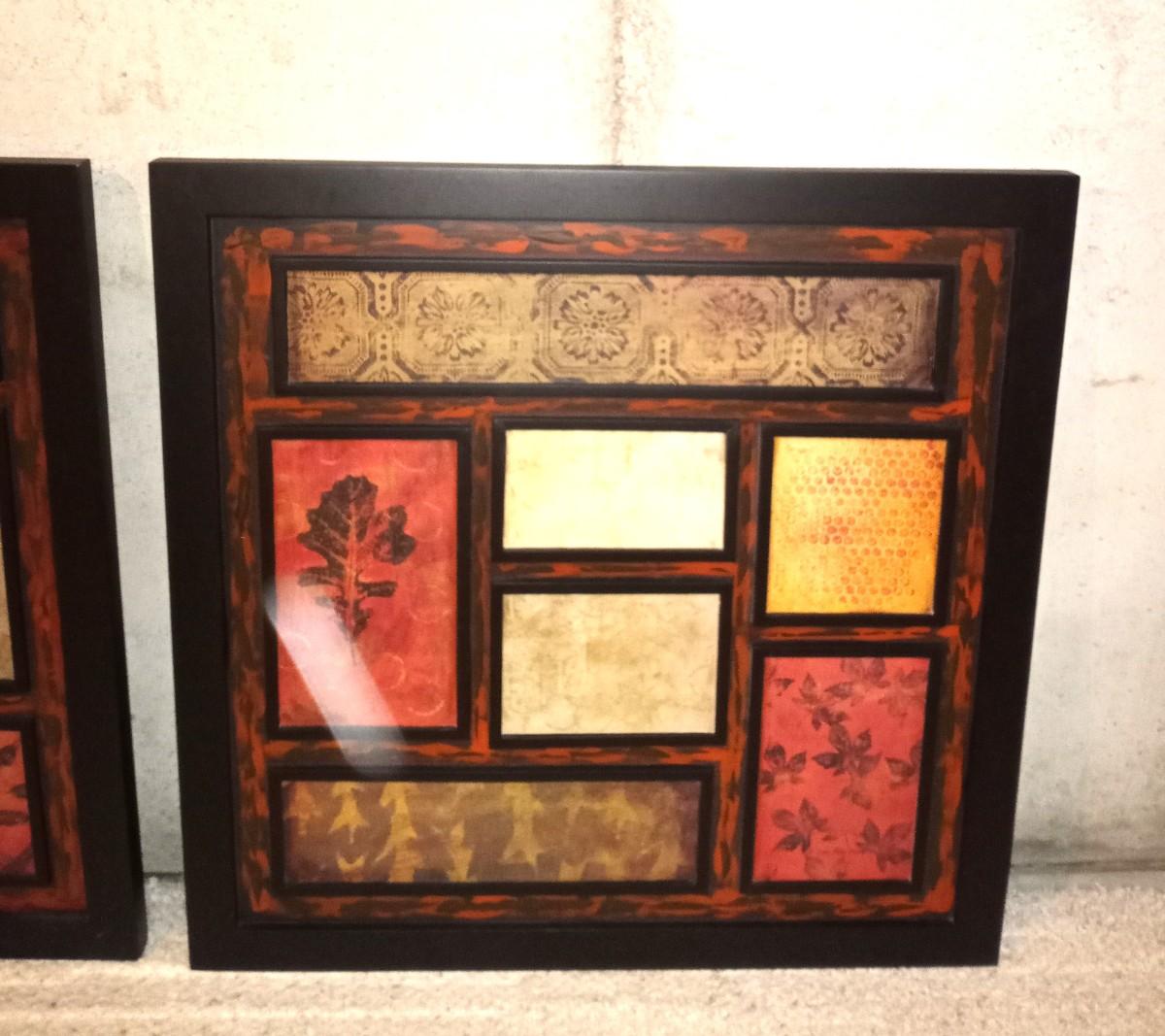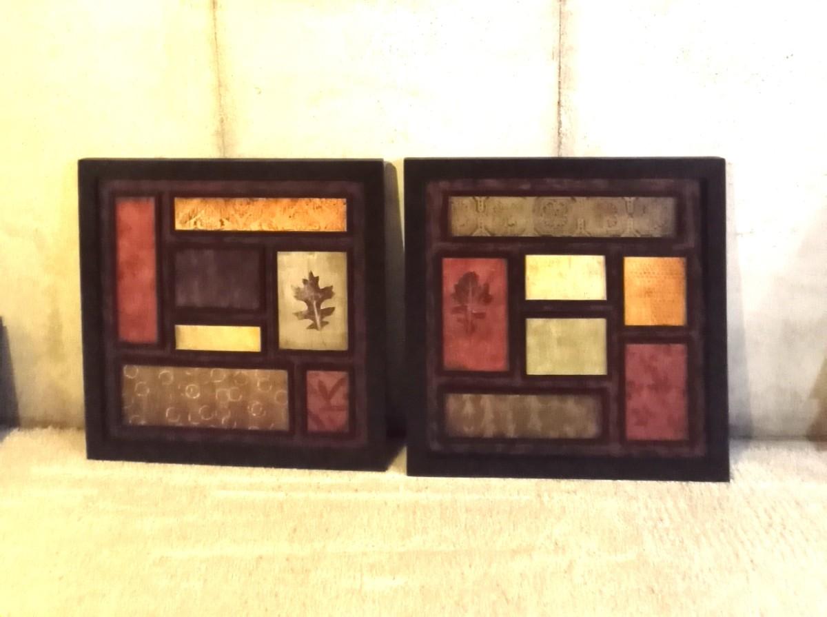 TWO FRAMED WALL HANGINGS APPROX. 42 SQUARE