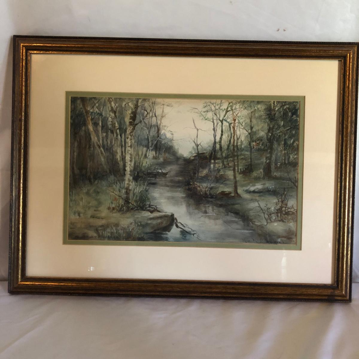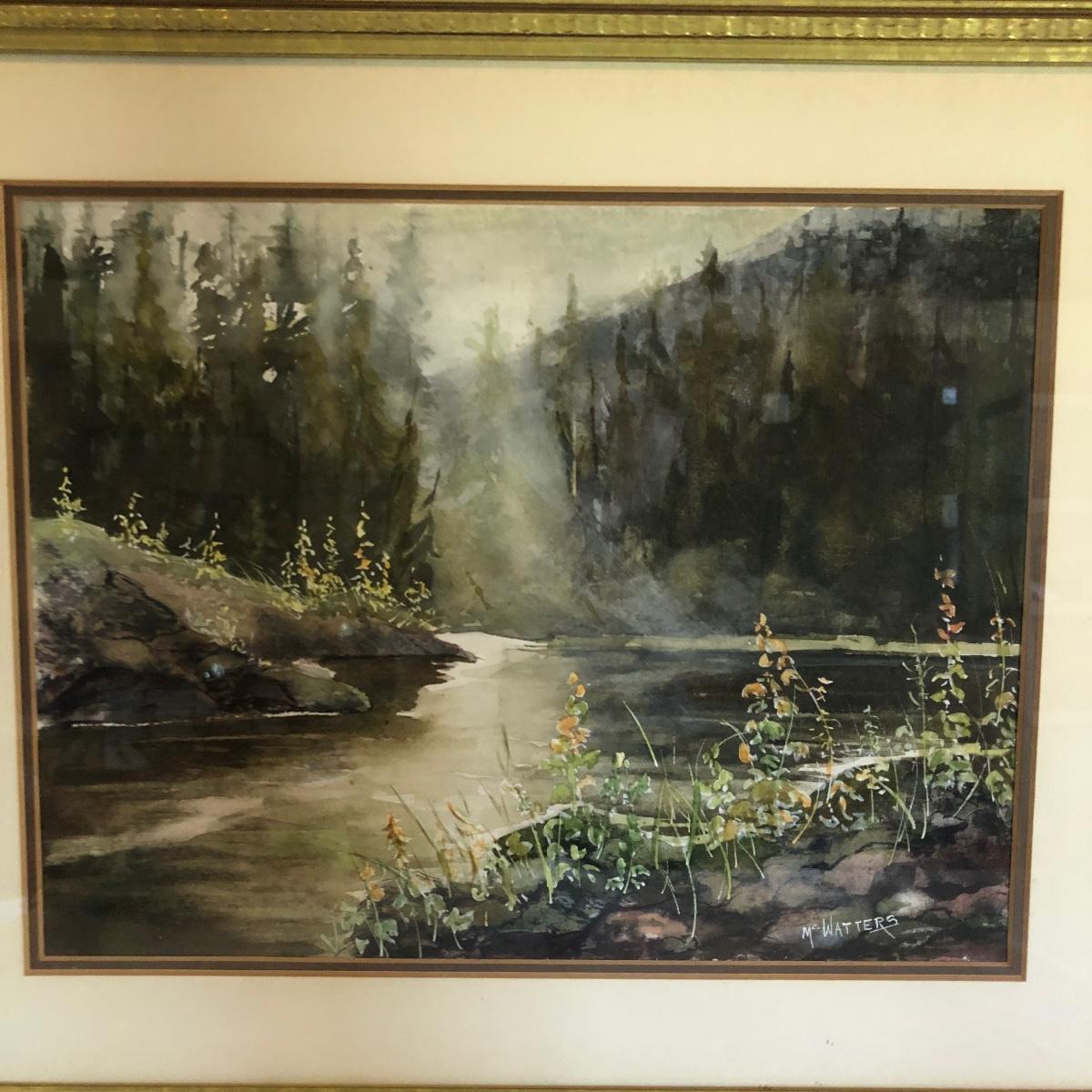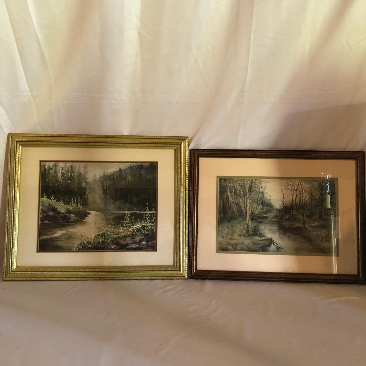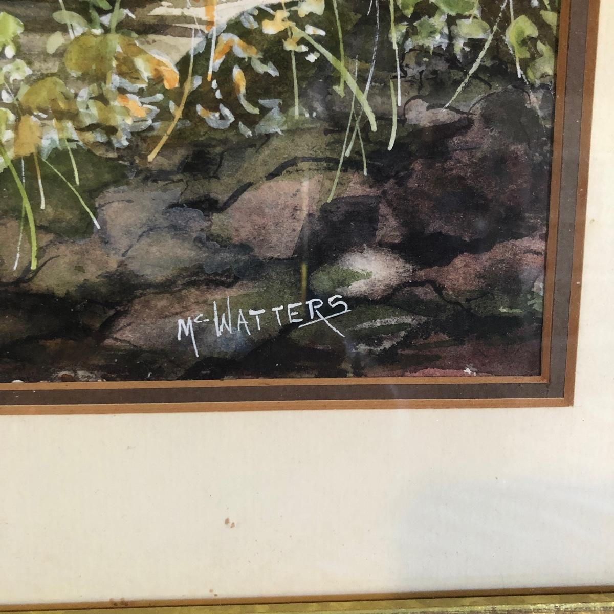 Lot includes a framed, matted watercolor by McWatters and a framed and matted watercolor by Mrs H.P. Marsh. Largest frame measures 17” x 21”.