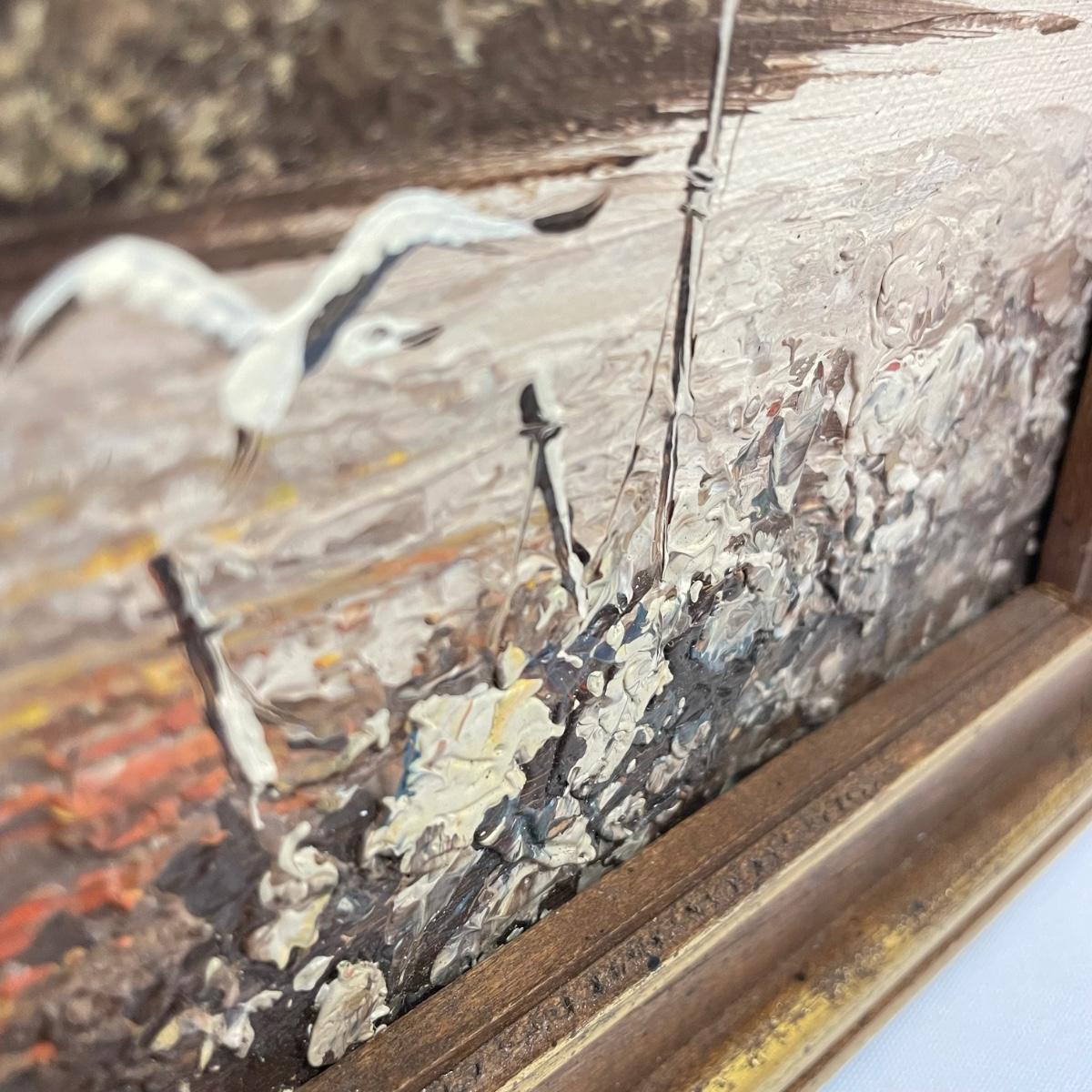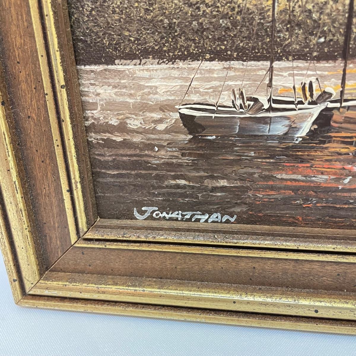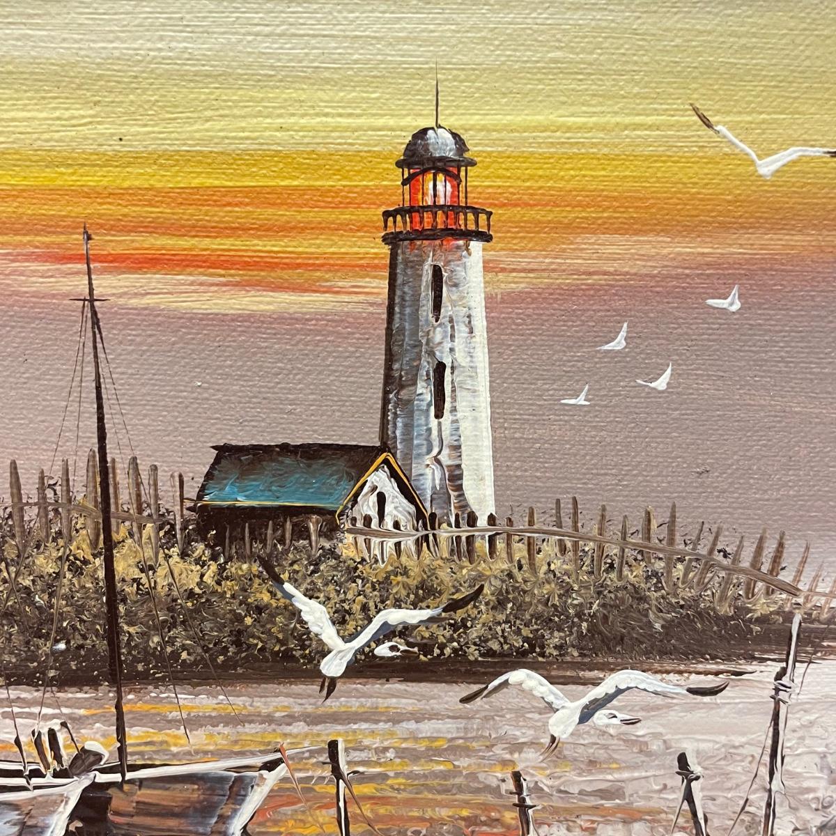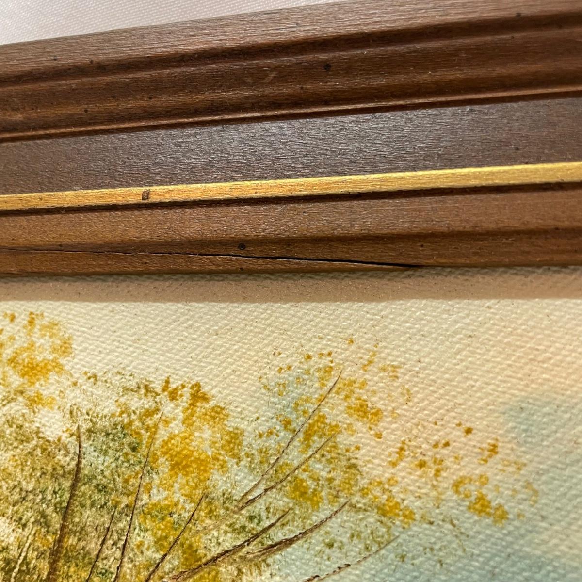 Two water scenes with wooden frames. The lighthouse art appears to be an oil painting with texture found throughout. The water mill cabin art is possibly signed by Wolfgang Zeller. This frame has some separation in the corners, but appears sturdy enough to hang. Both frames are 12.5” x 10.5”H. Shipping available.