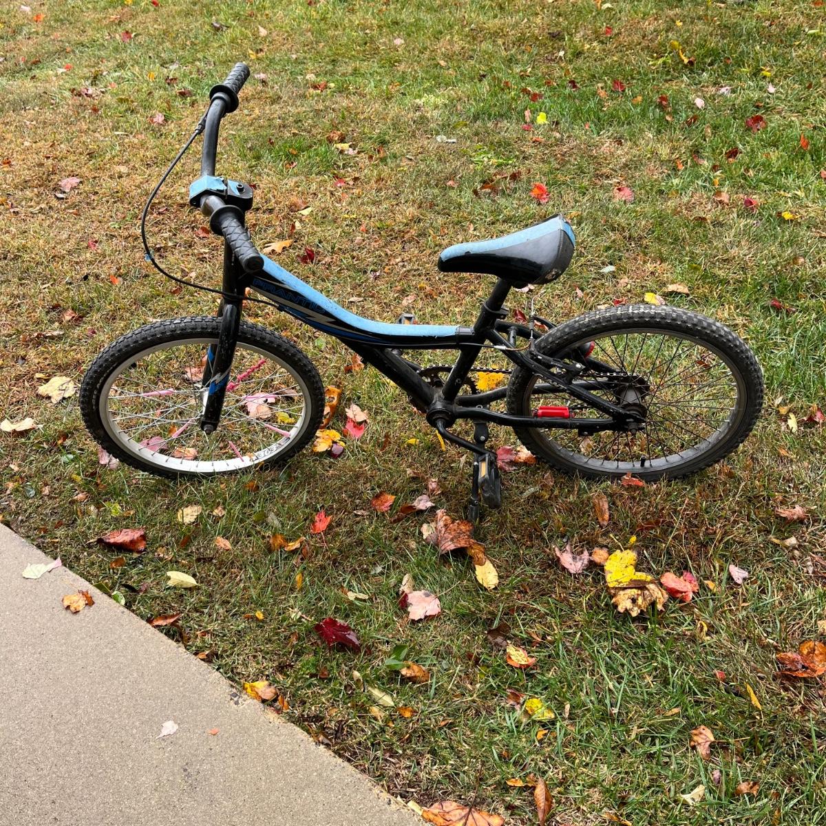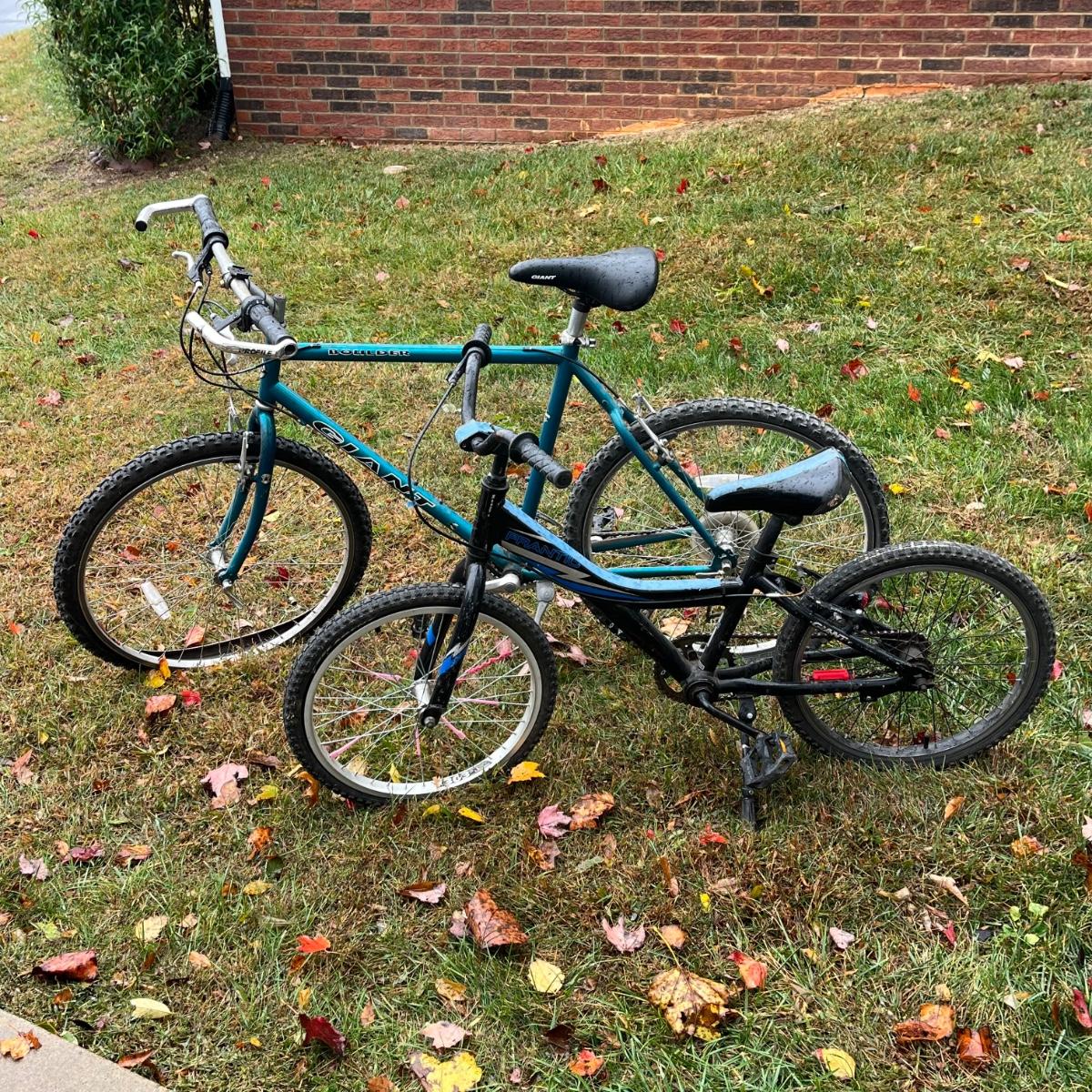 This includes one 21” adult bike and one 10” child’s bike. Both show signs of wear. The tires need attention.