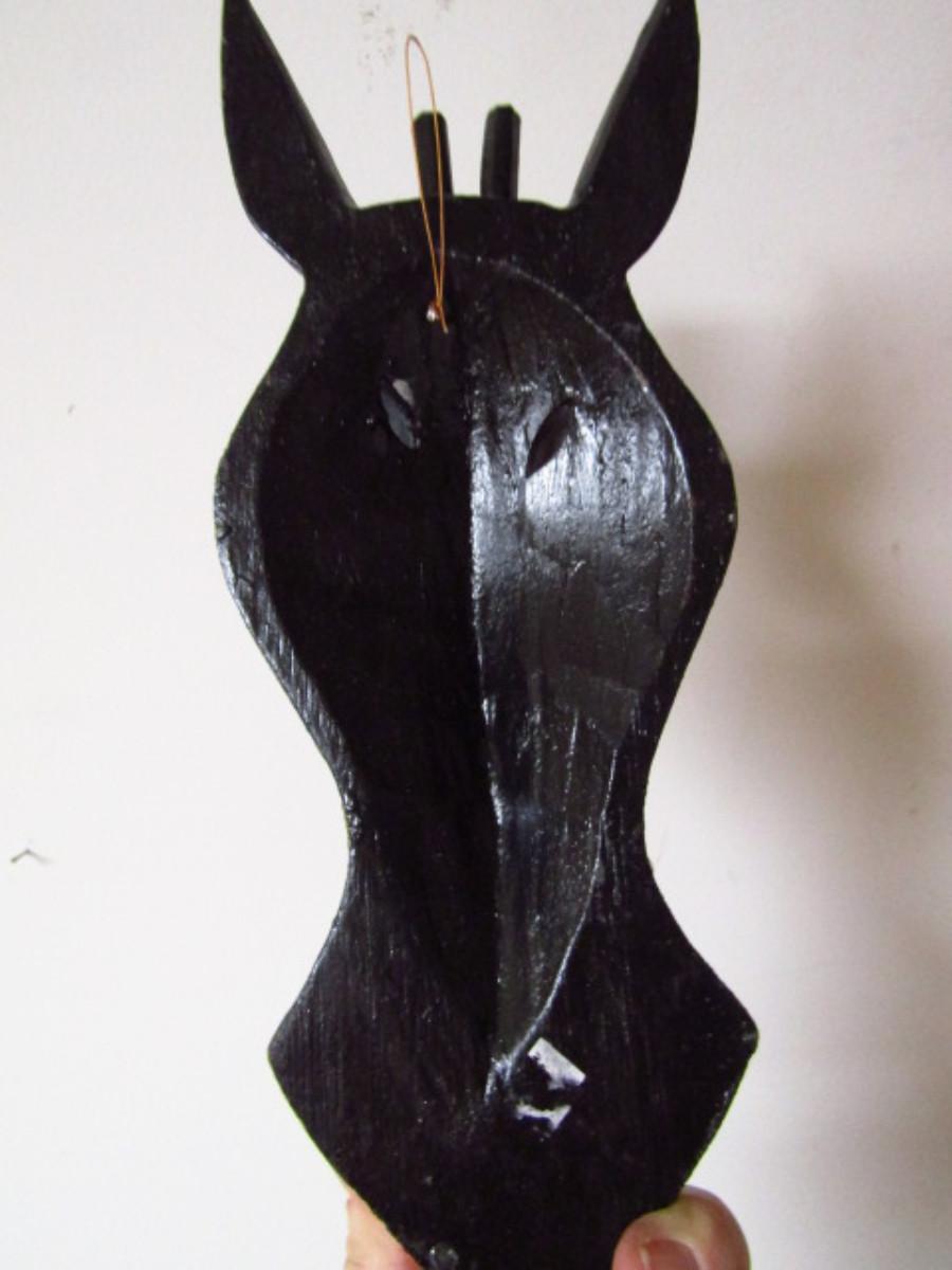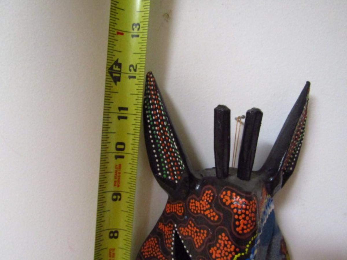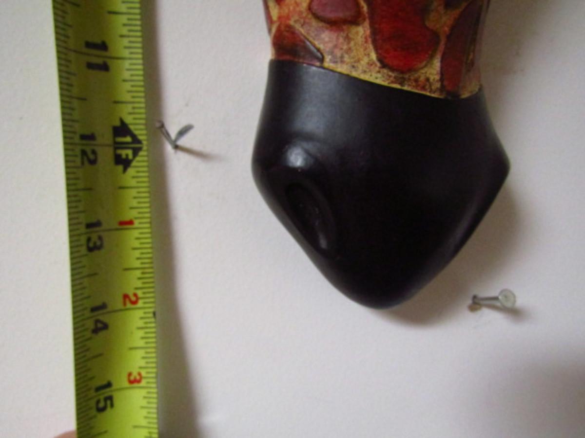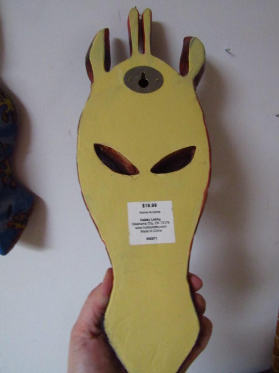 Two Giraffe Figural Masks for Wall Hanging. Blue one is wooden, the other is resin from Hobby Lobby.