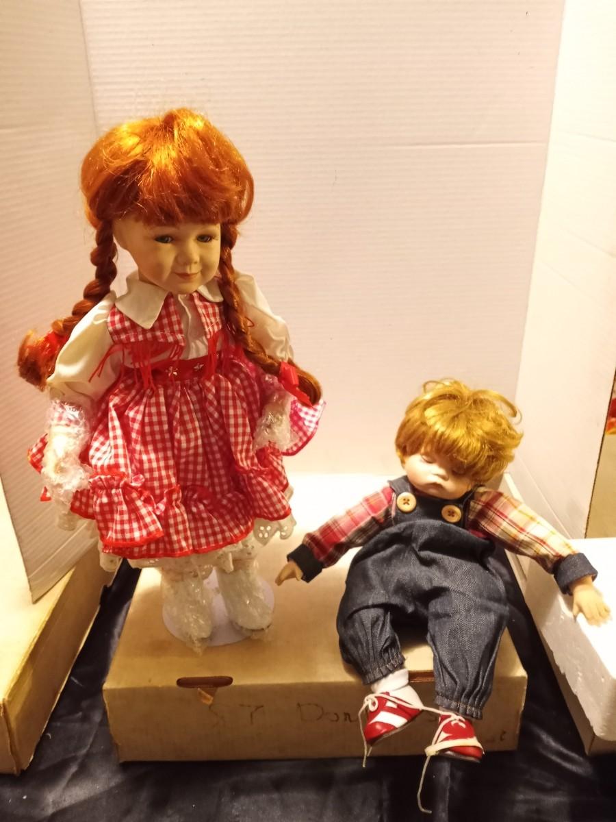 TWO GIRL AND BOY PORCELIAN DOLLS
