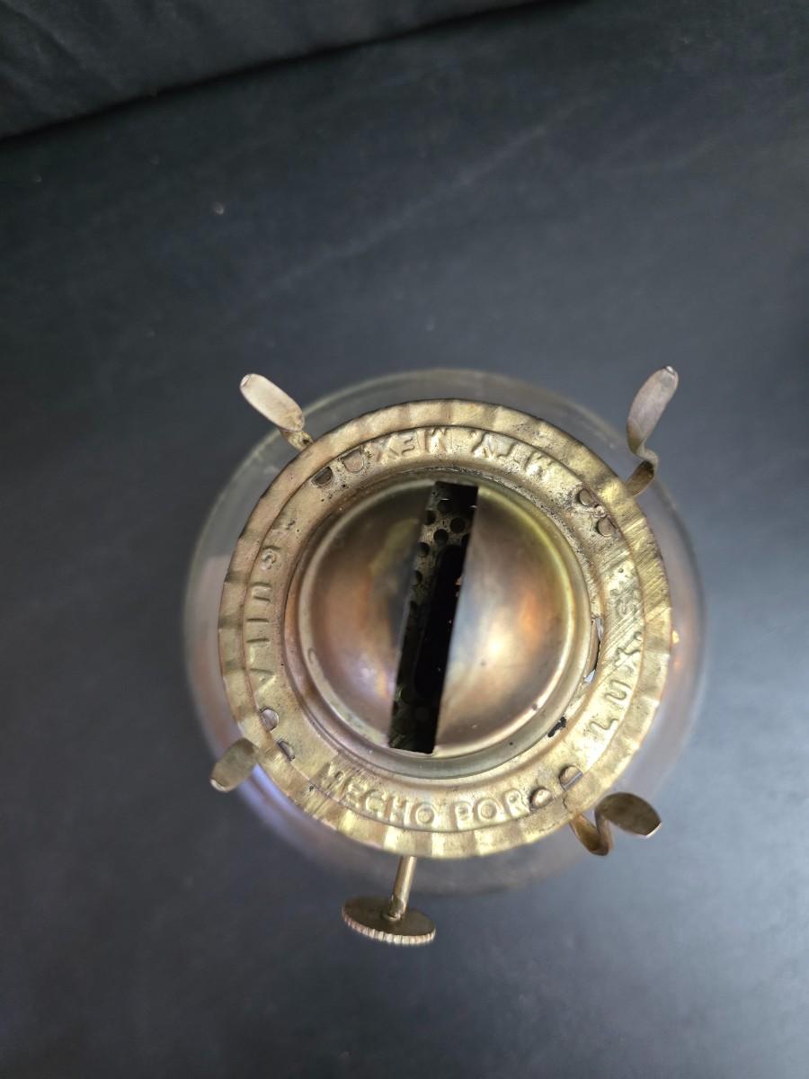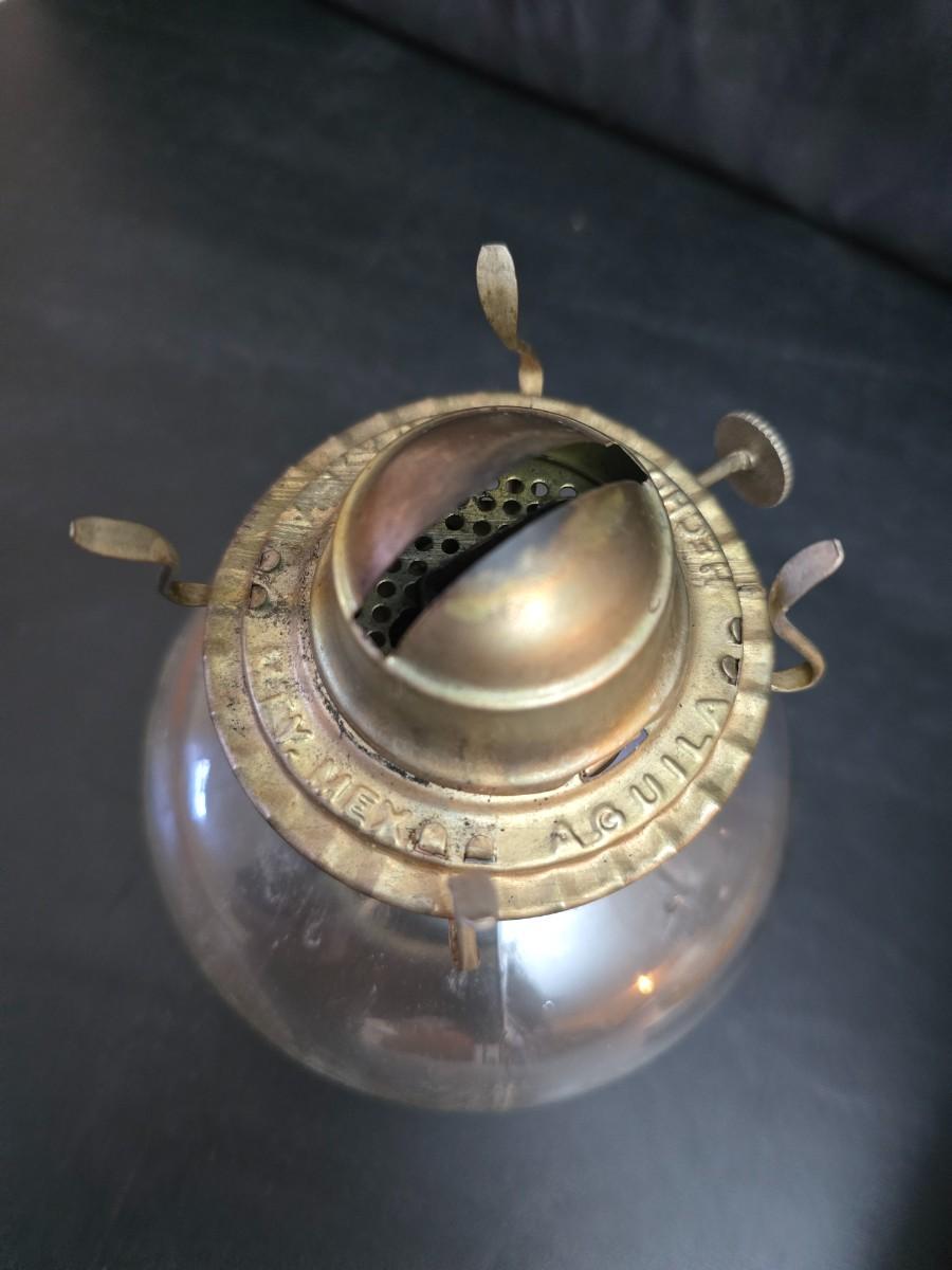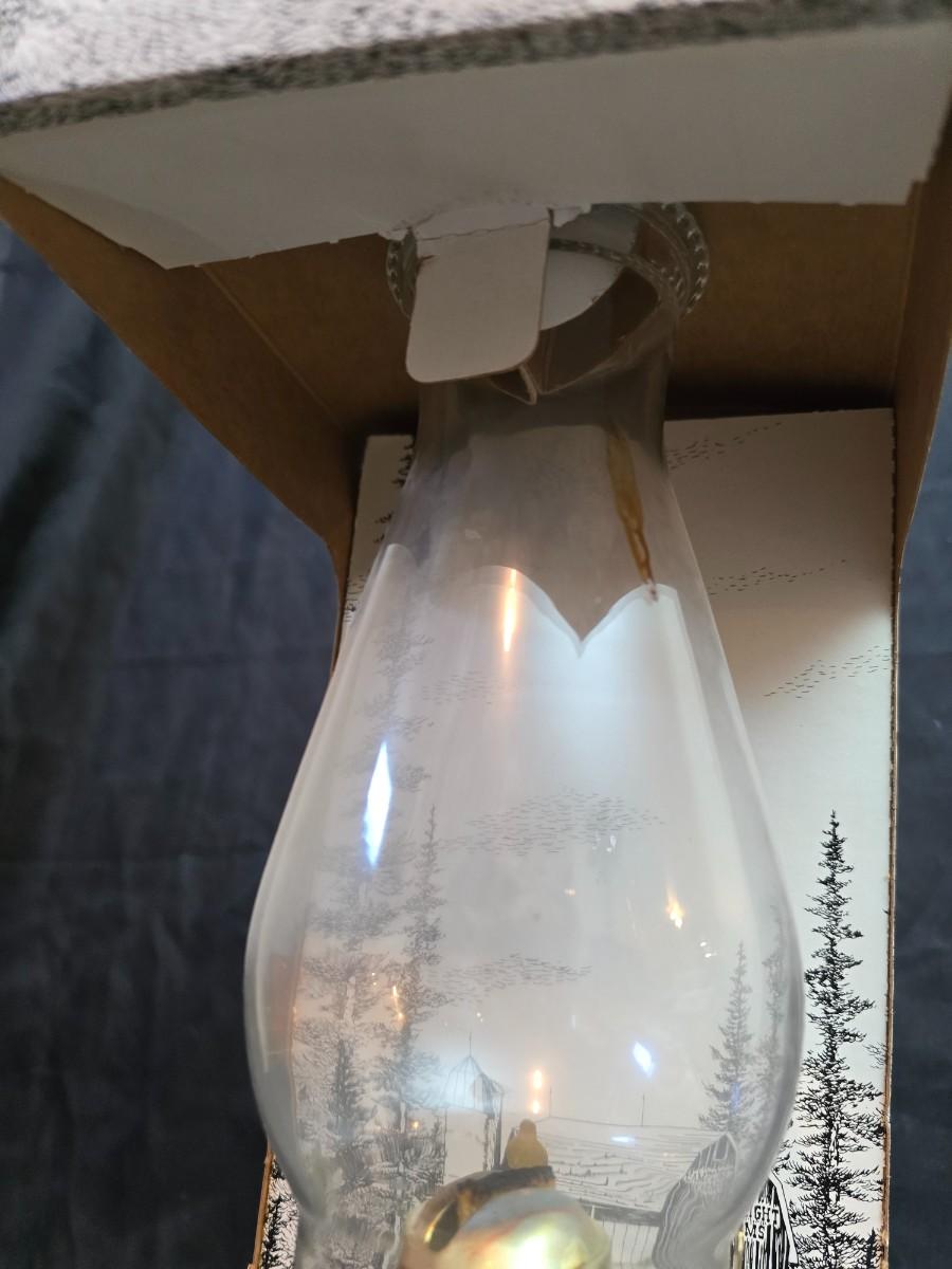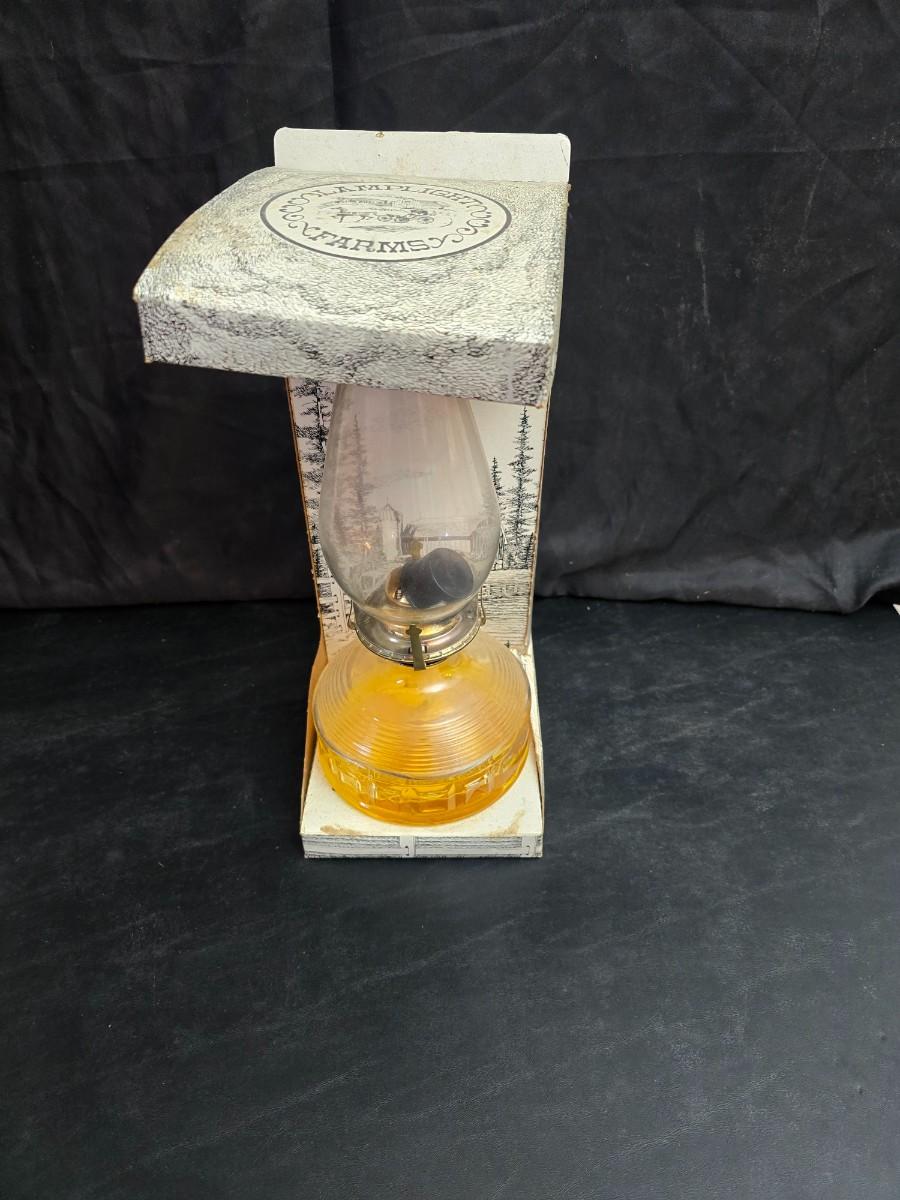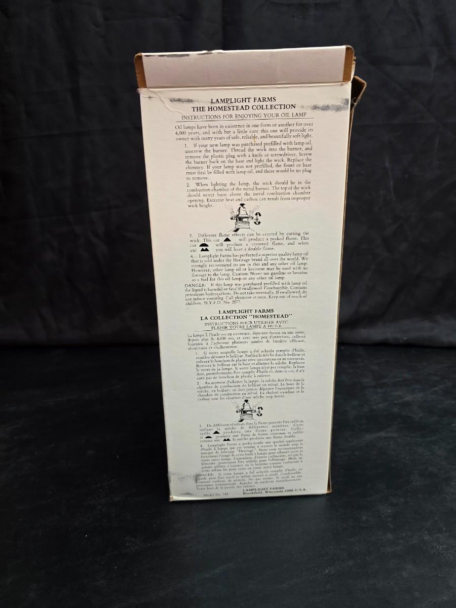 Two glass chamber-style oil lamps -Lamplight Farms.