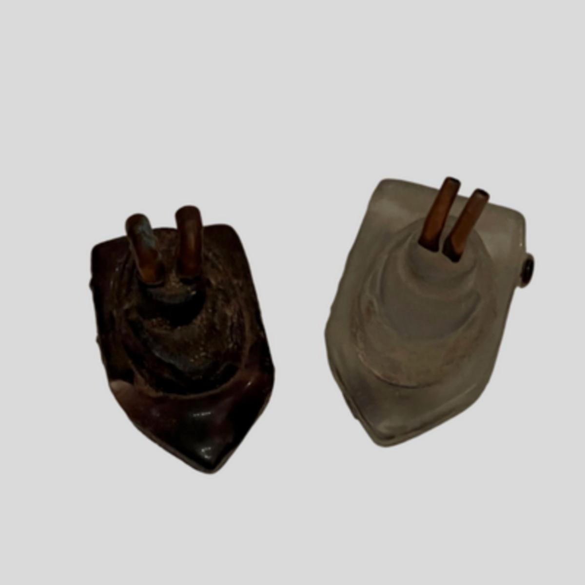 Althea was born and raised in Vermont and made ceramics. She soon strayed into hot glass and neon. She traveled with an exhibition that visited New Orleans. She fell in love with New Orleans and relocated there to get her MFA at Tulane. She continues to live and work in New Orleans today. These tug boats measure 7 x 4.