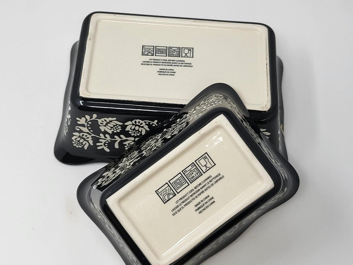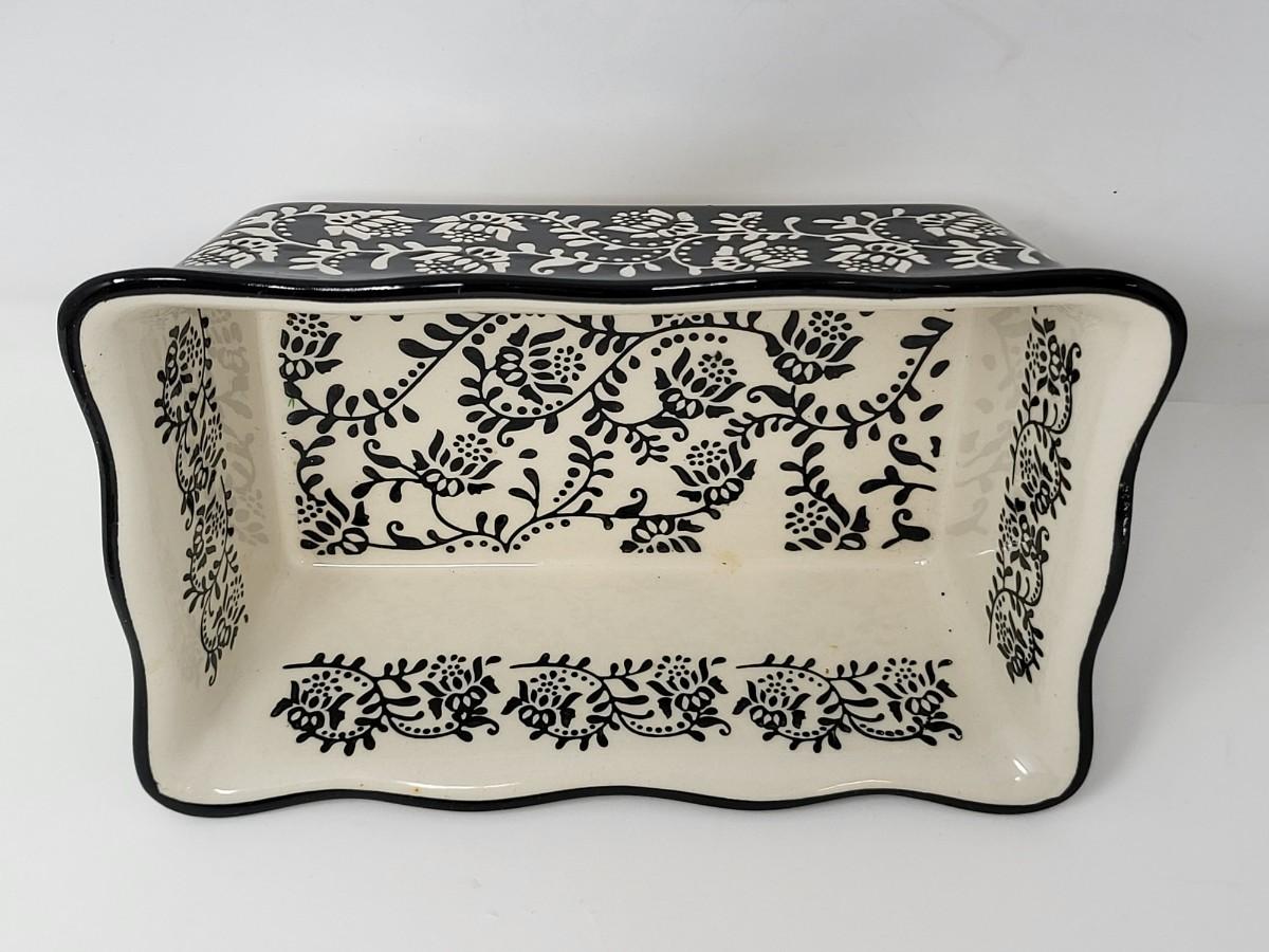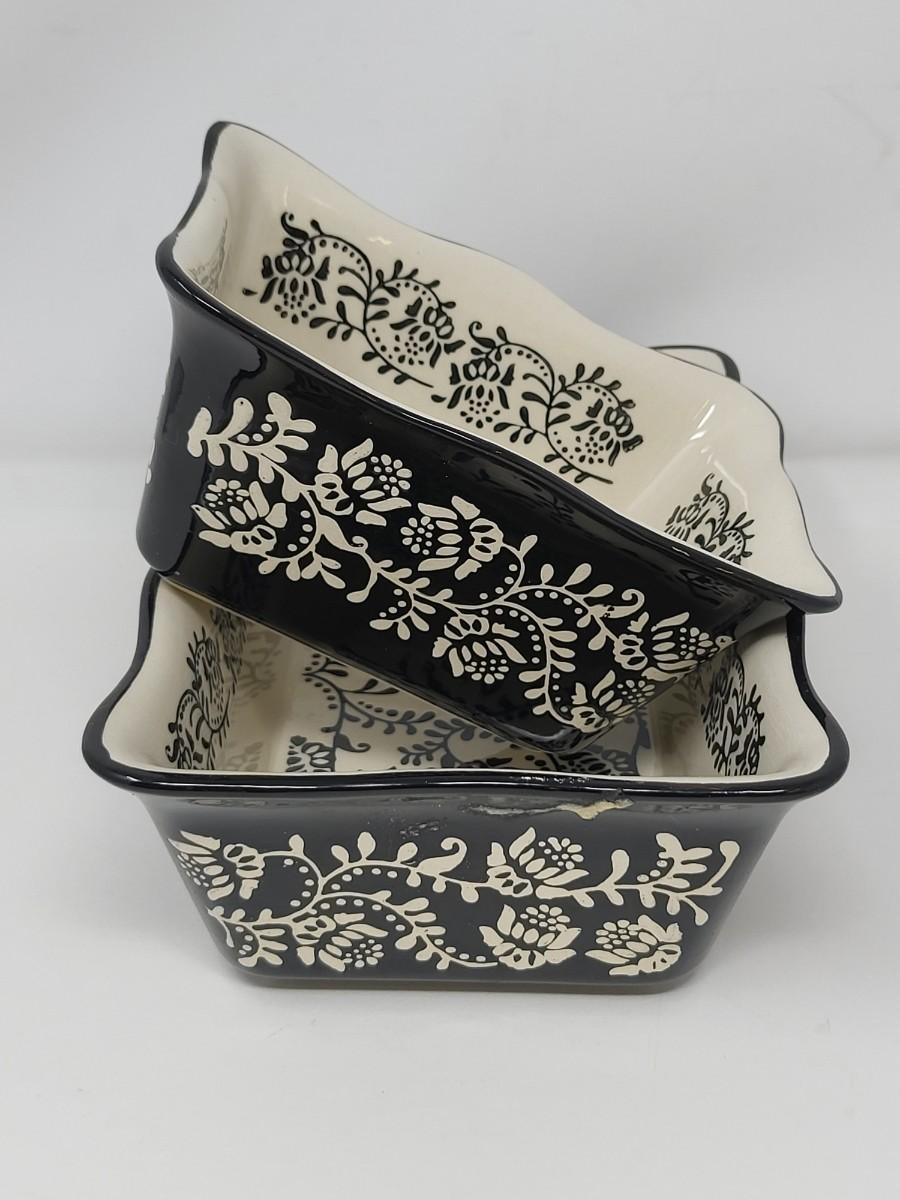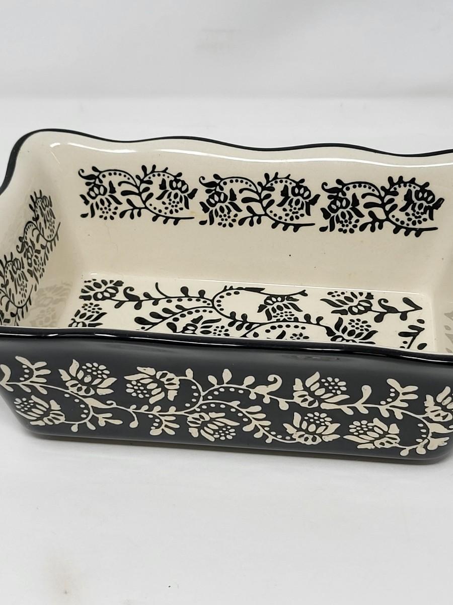 Cream & black paisley floral, scalloped edge, decorated baking/loaf pans, 6" and 9".