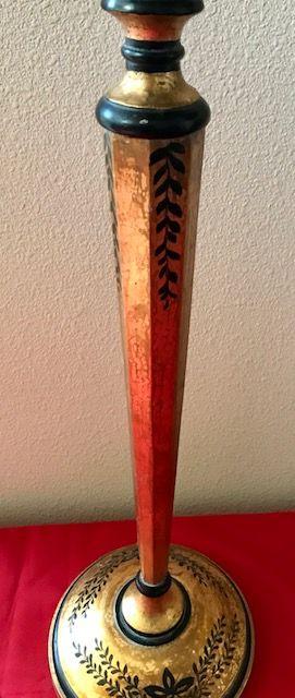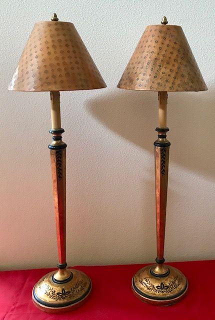 Measures 35 inches tall with shade, bases measures 8 inches in diameter.