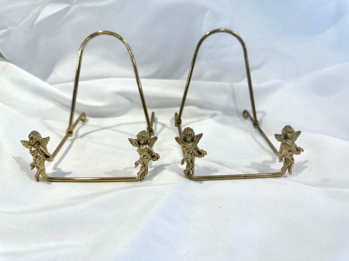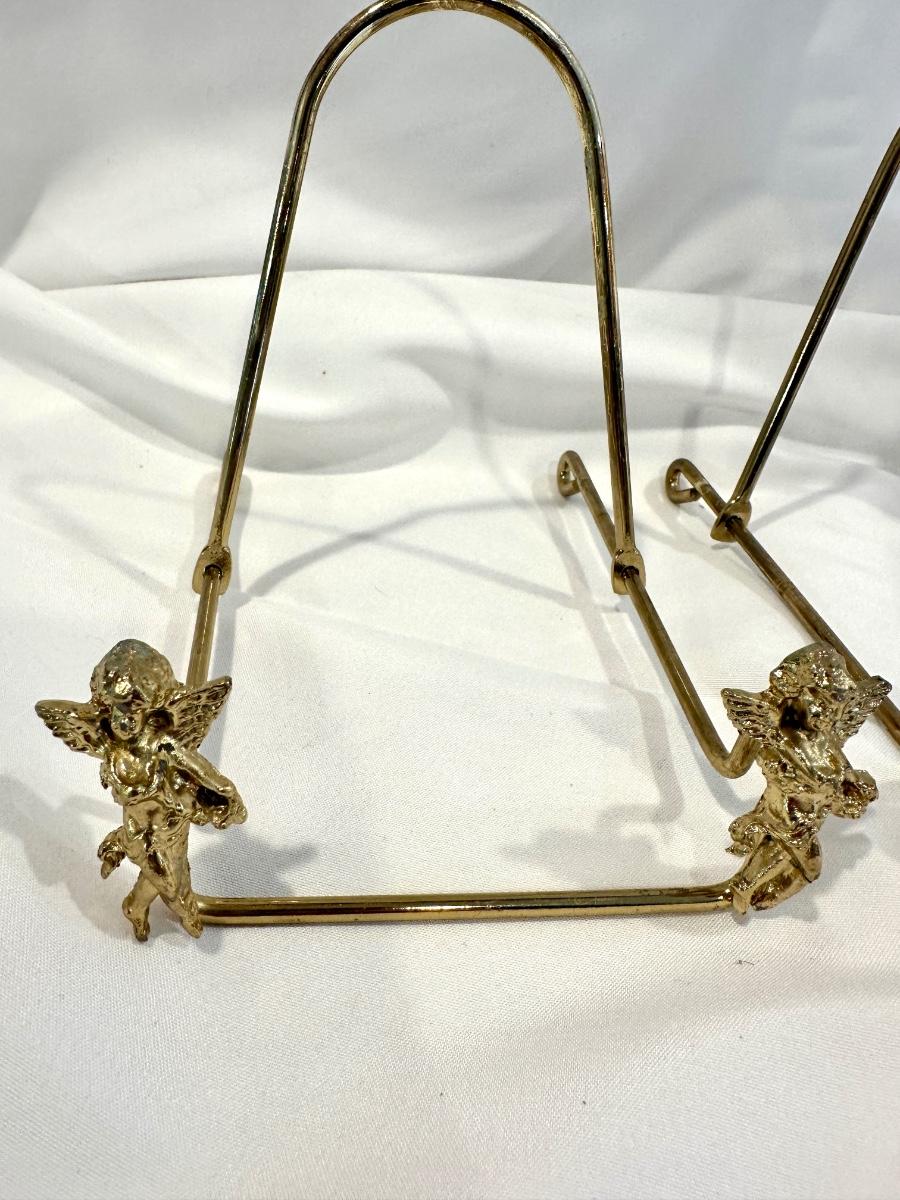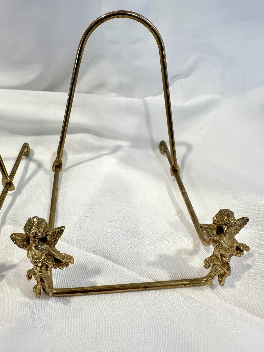 Two Gold Tone Cherub Adjustable Easle / Plate Holder