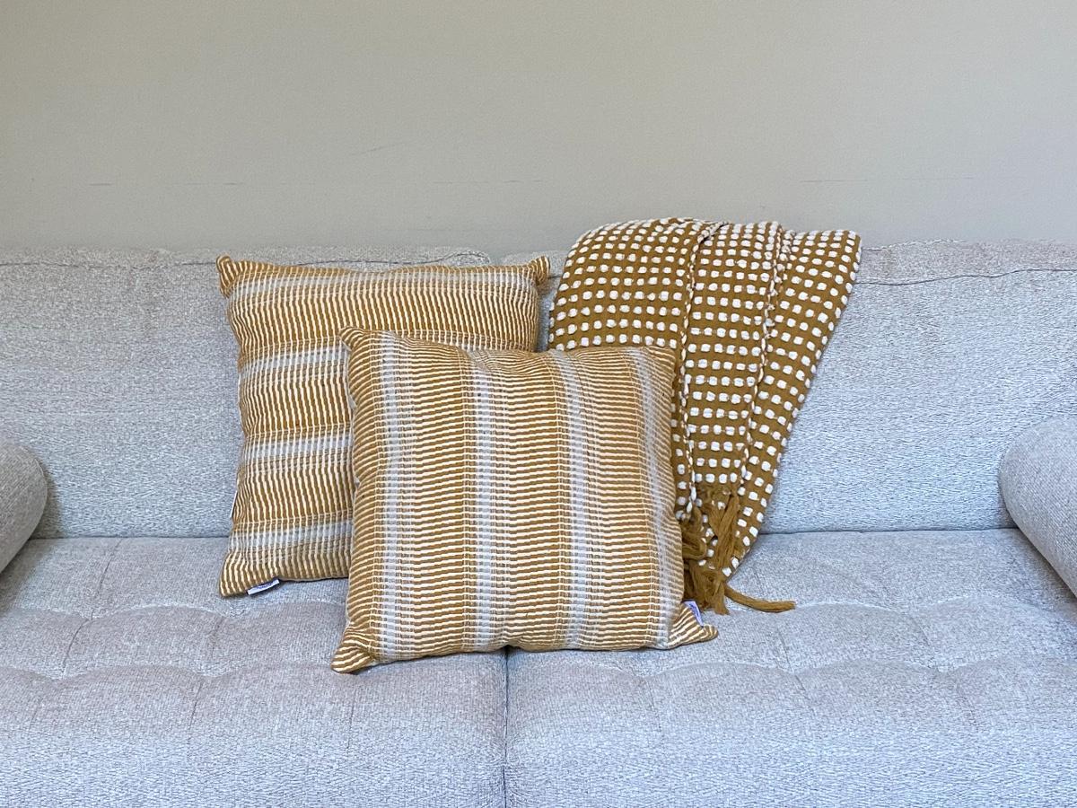 Pair of Gold & White Pillows With Coordinating Throw