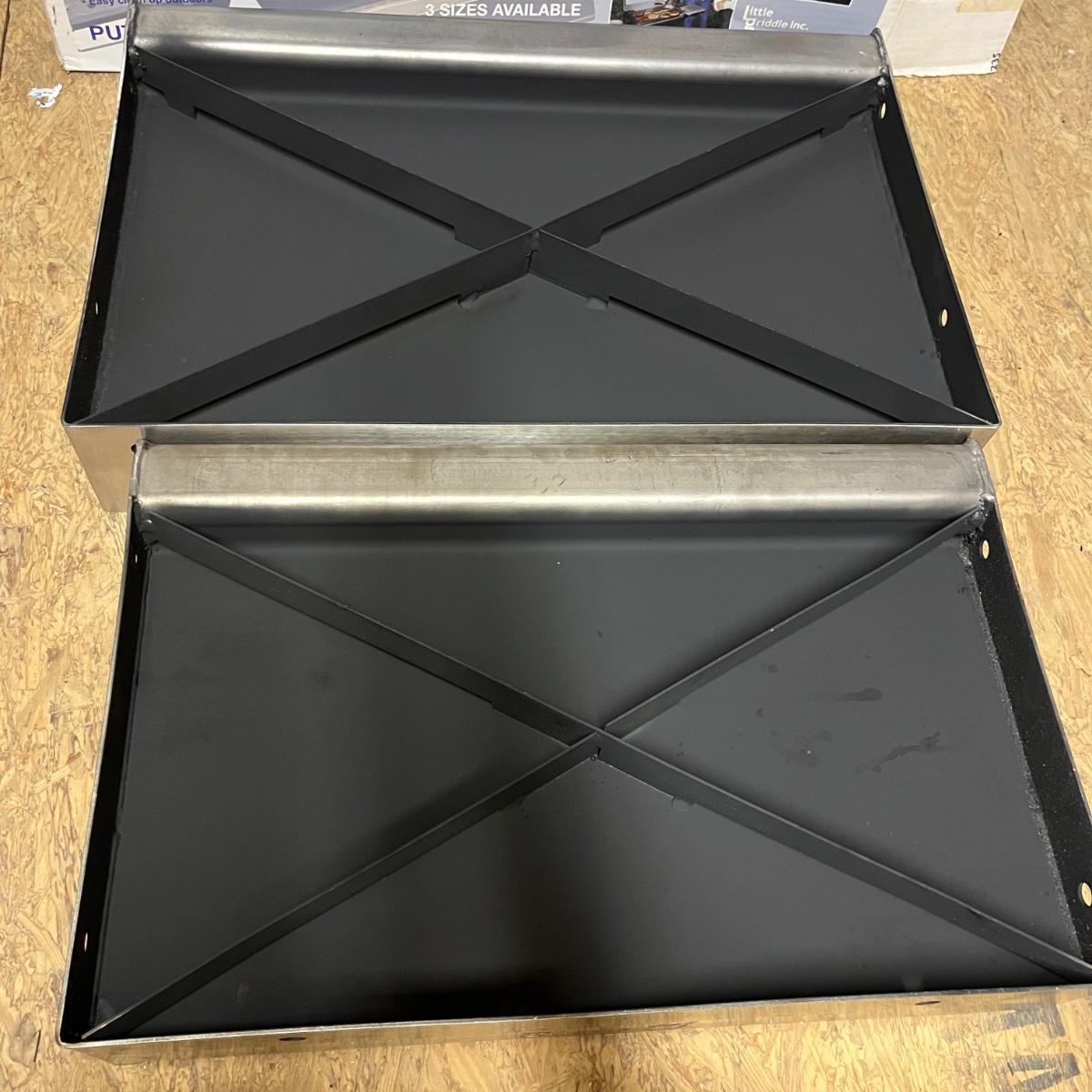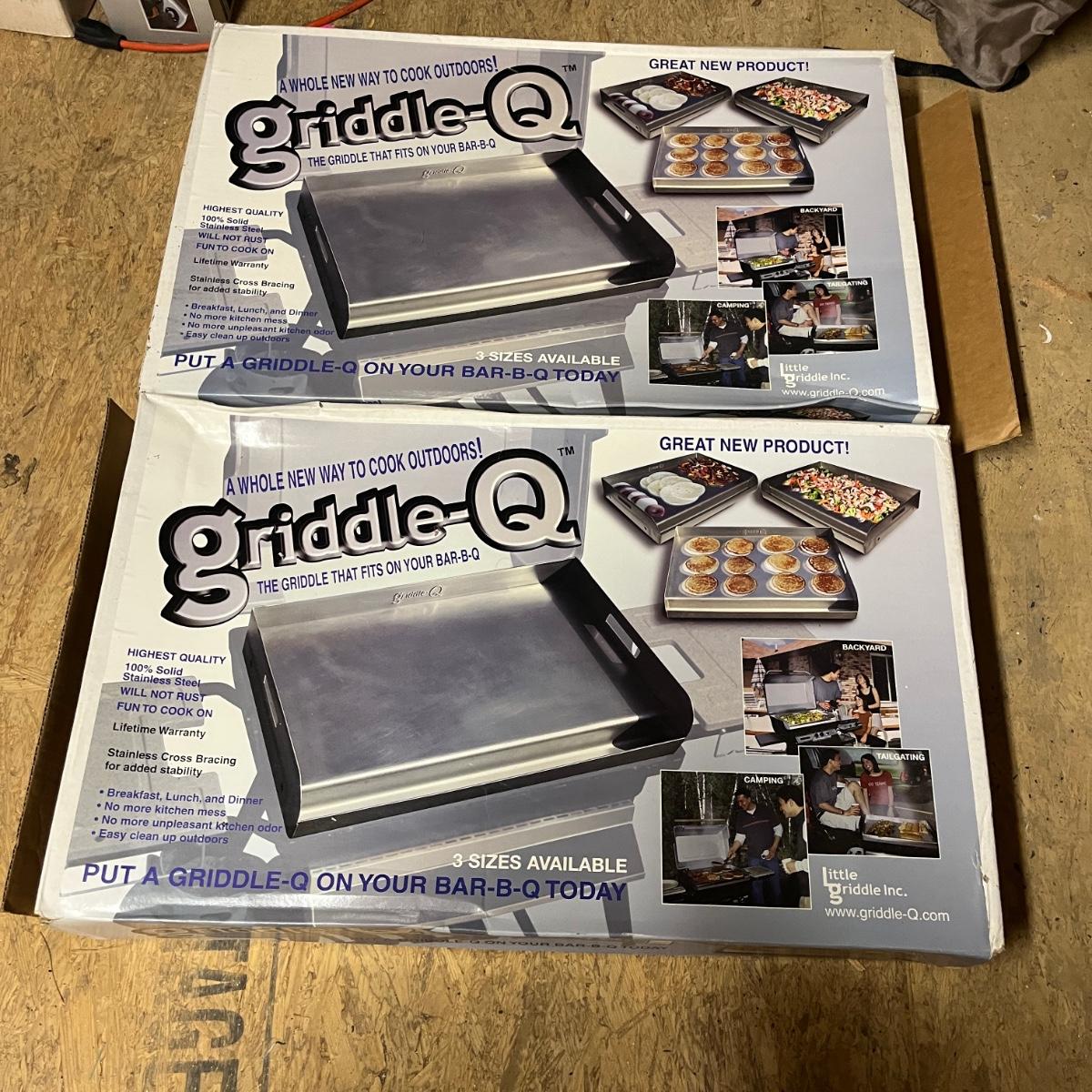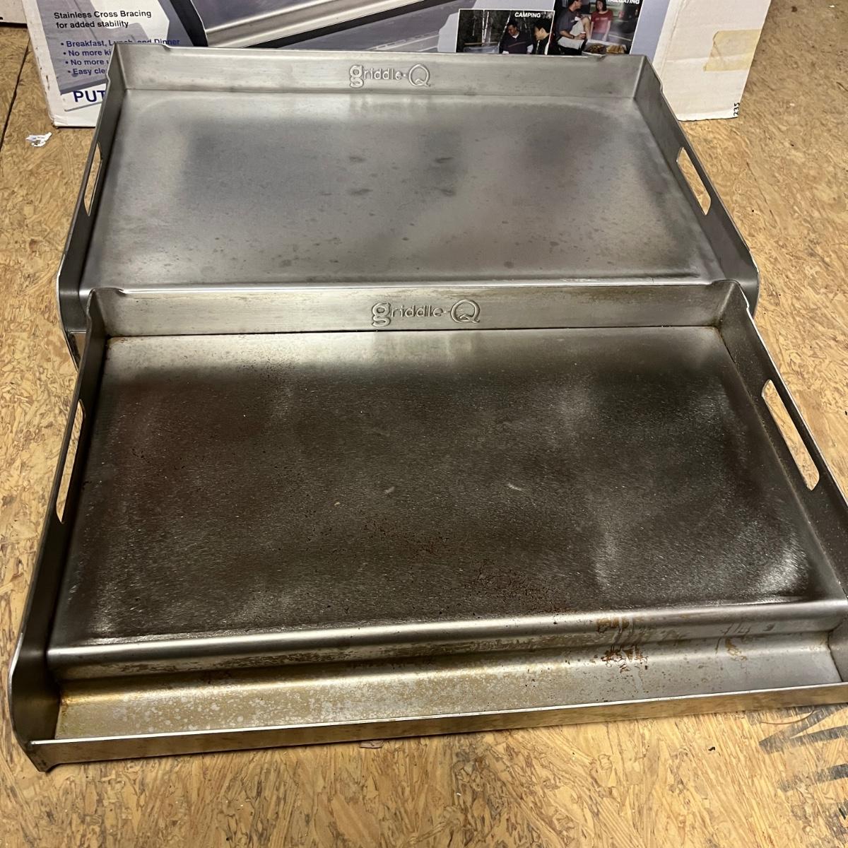 Lot includes two Griddle-Q stainless steel griddles that fit on your BBQ. Largest Griddle-Q measures 23” x 16” x 4”H.