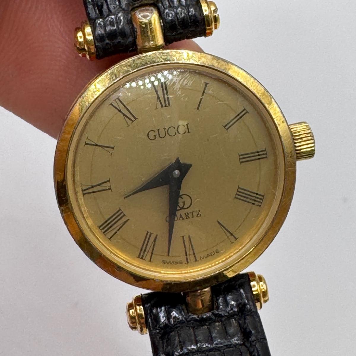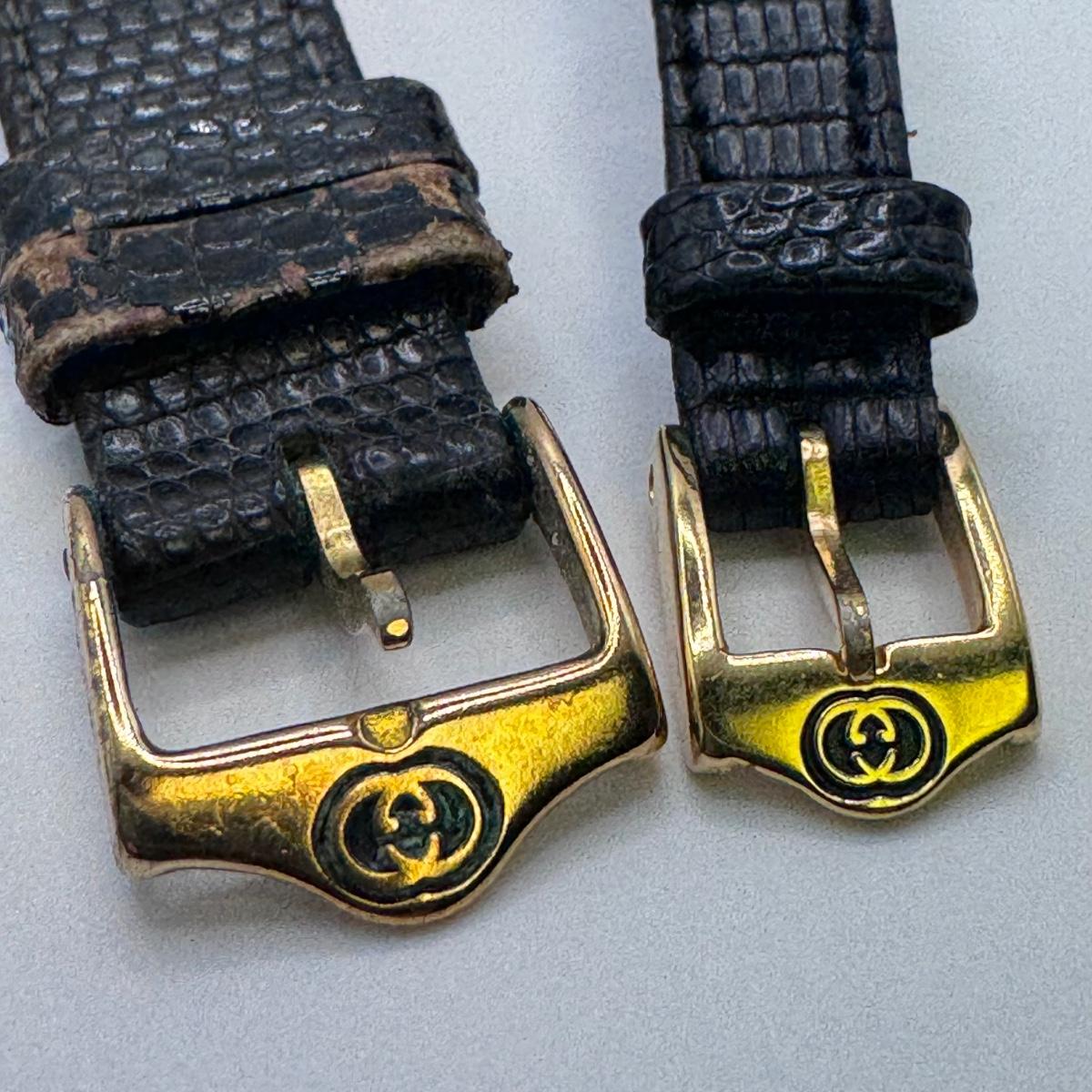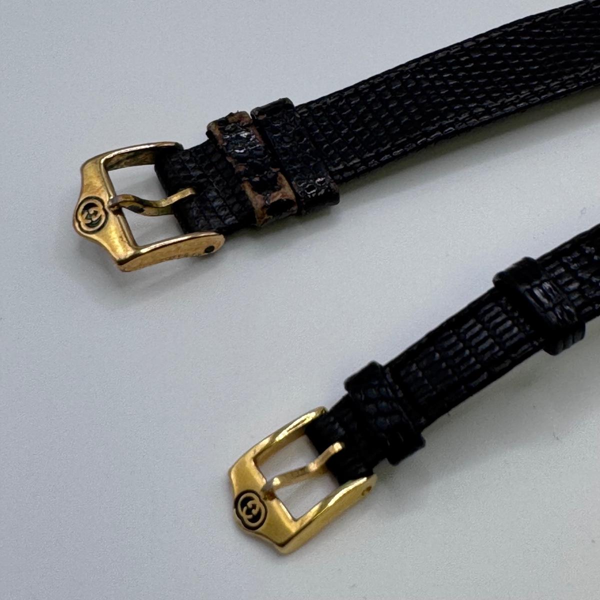 This lot includes two Gucci watches in two sizes. New batteries did not help to get them running. The larger Gucci watch is 9” long. It has a some signs of wear - see pictures included. The smaller watch is 8” long. Shipping available.