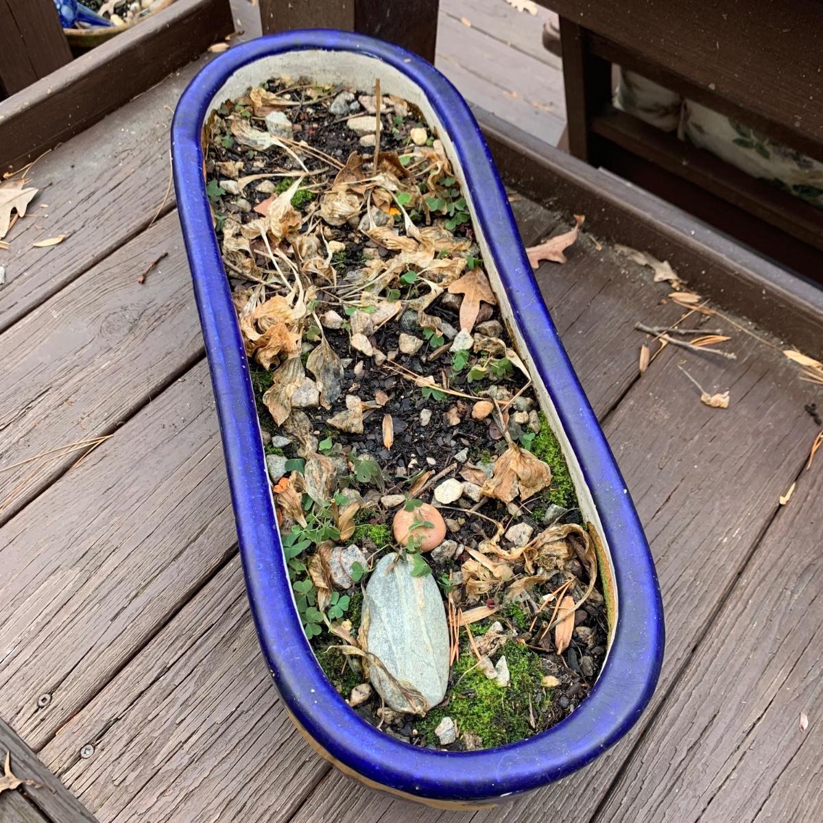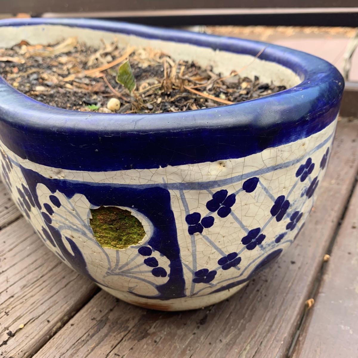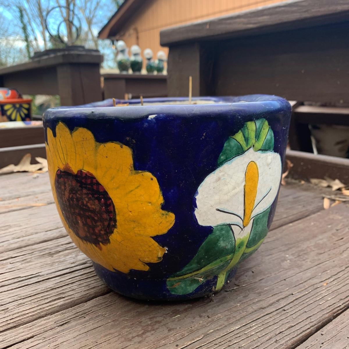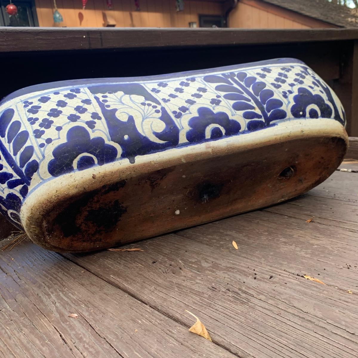 Two oblong planters that appear to be ceramic that have been hand painted. They each measure approximately 23” x 9” x 6.25”H. There is some paint chipping and crackling from use. Planters are full of soil and quite heavy; winning bidder may dump soil if desired.